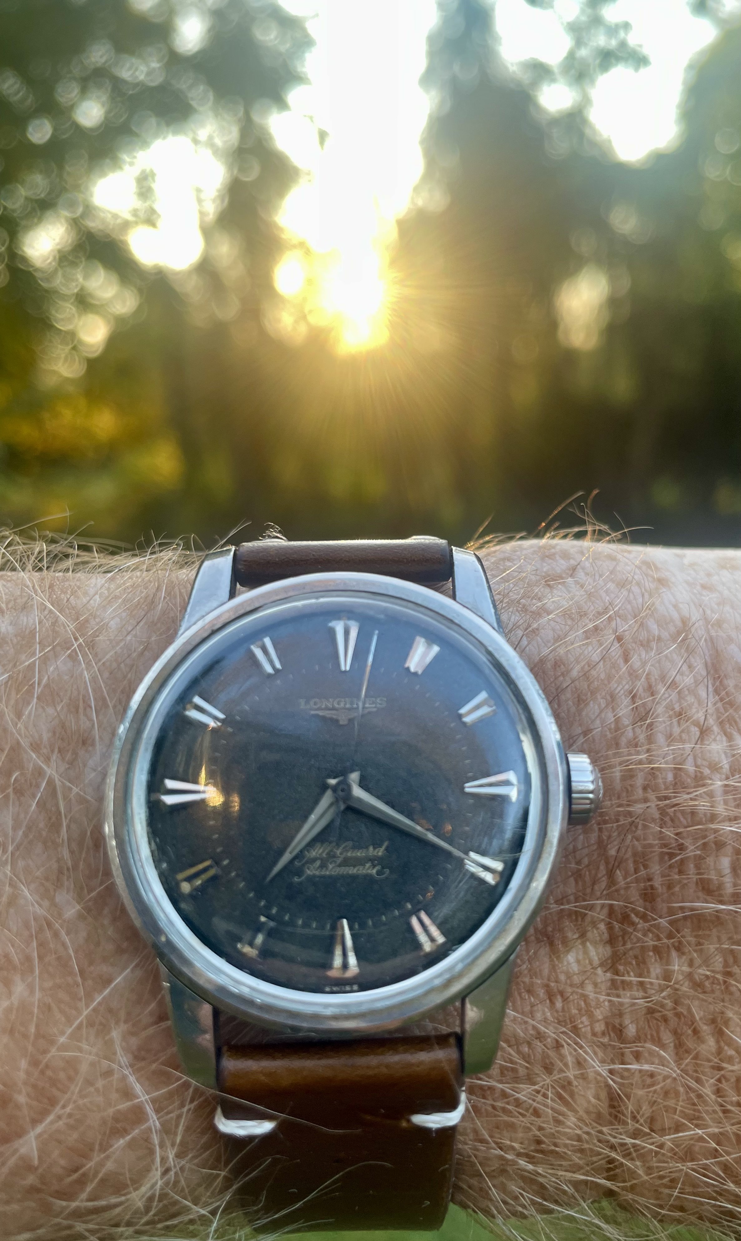 The first example I have seen of that same style of dial and I have kept an eye out for one for years. Hands and case are different and mine has the minute dots, but that’s the same basic style.