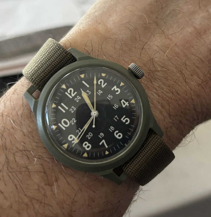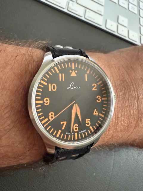 I've been geeking out way too much on the new Laco, and this past week got the single piece pilot strap which is more fun than any NATO I've worn. Really appreciate the leather covering the buckle so it doesn't rap on the desk. $60 on the Laco site, can't beat it.