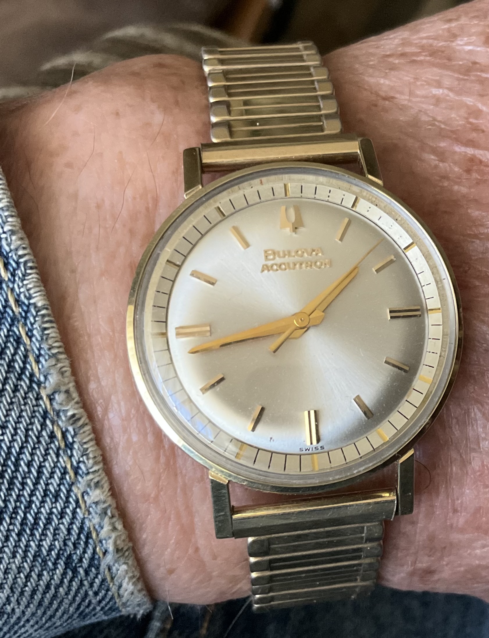 Well, after doing the necessary, here is the watch. It is unusual in this regard that the case is gold shell over stainless steel, and it shows very little wear. Love it! Thanks to Laneside!