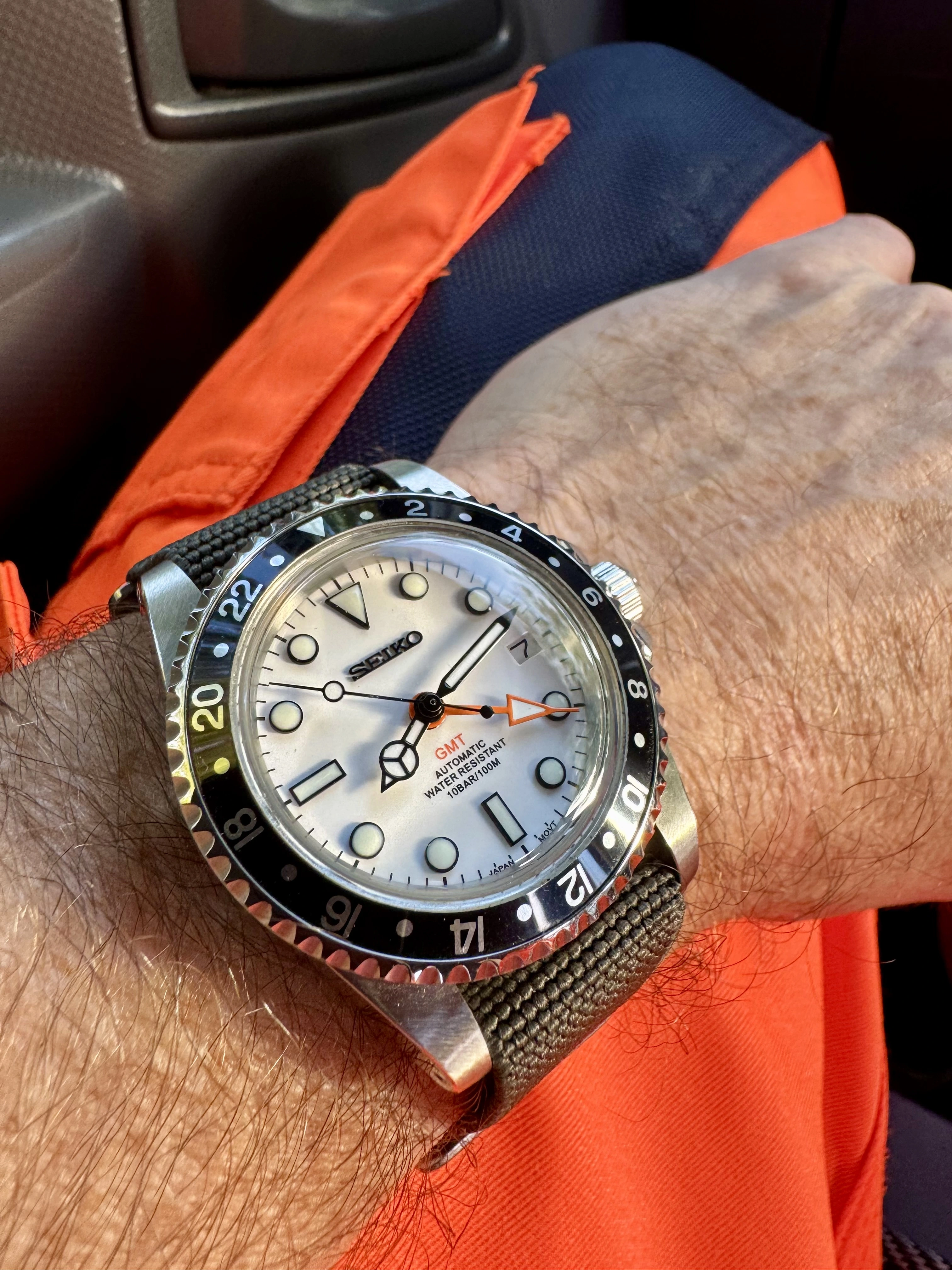 One of the main attractions was also the beautiful aging of the bezel which in certain lights has a very definite blue hue. I didn’t think the bracelet did the bezel justice which meant swapping the band with the 14060 and a different strap on the 14060.