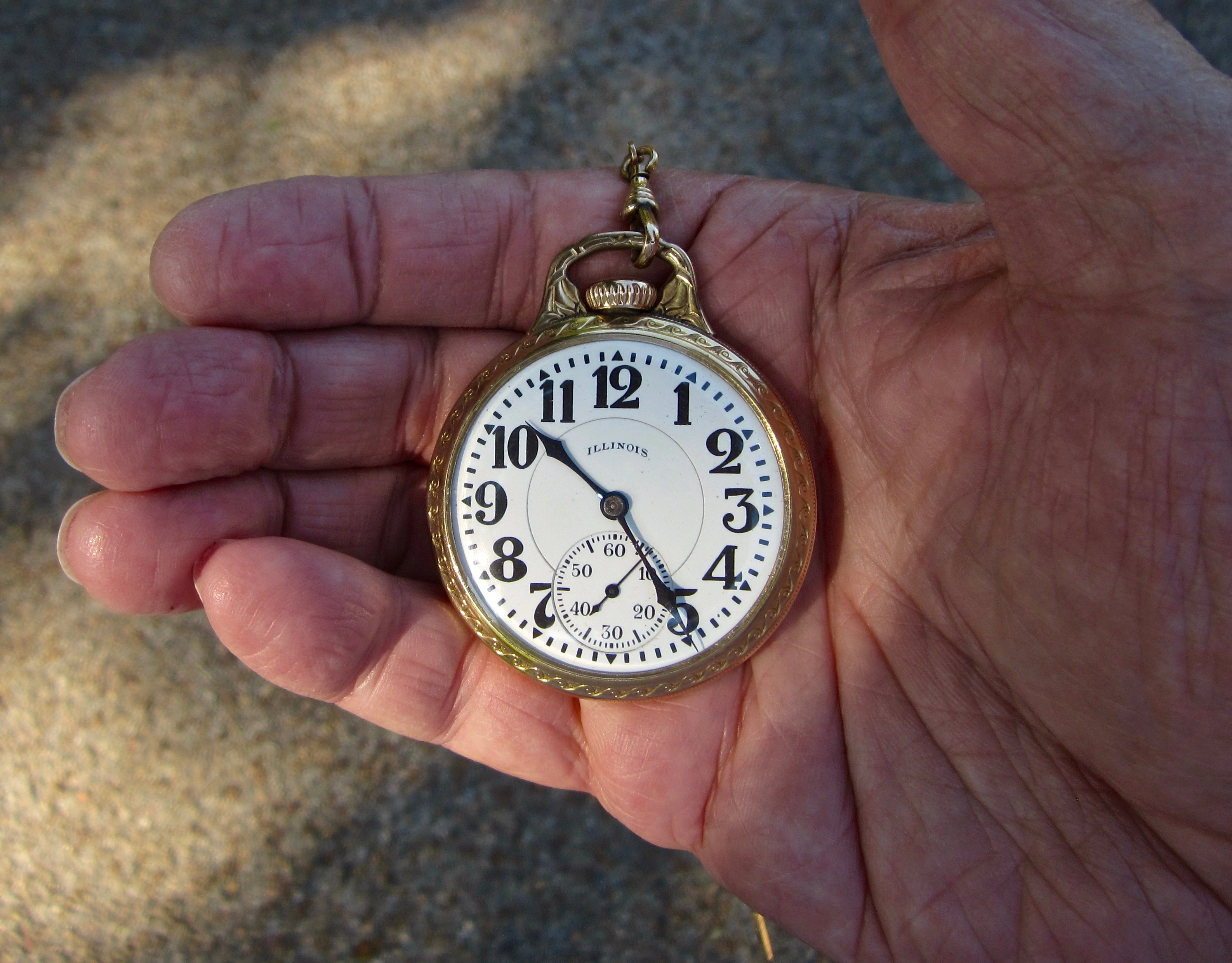 Using this 1926 vintage 23 jewel "railroad grade" Illinois Sangamo Special to check the time. I'm waiting on a train this afternoon.