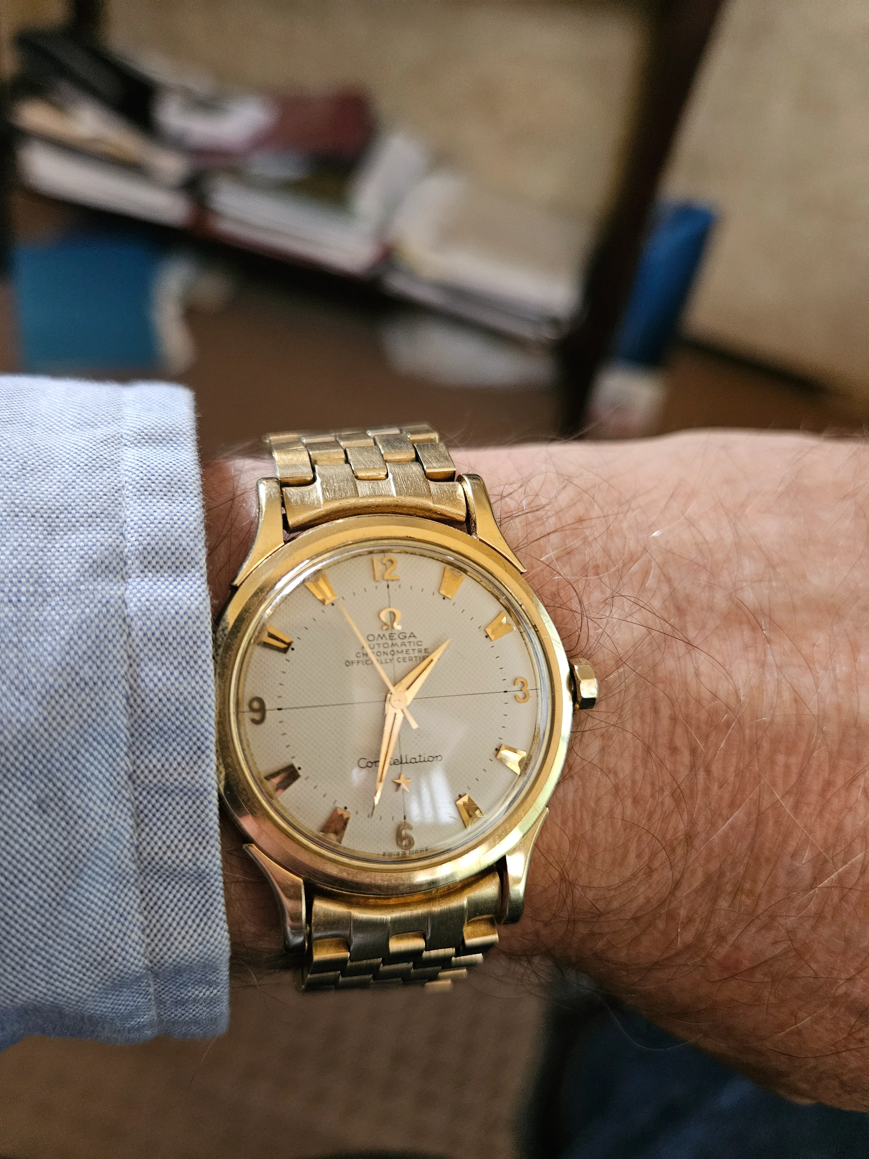 I never tire of wearing this one. My newly acquired, 60-year old Bulova Accutron 214. Thanks to member @Laneside in Scotland. This one is so well preserved, it is rather a challenge to photograph, being so bright. Gold shell over steel case, dial features applied index markers. One of three watches I’ll wear today.