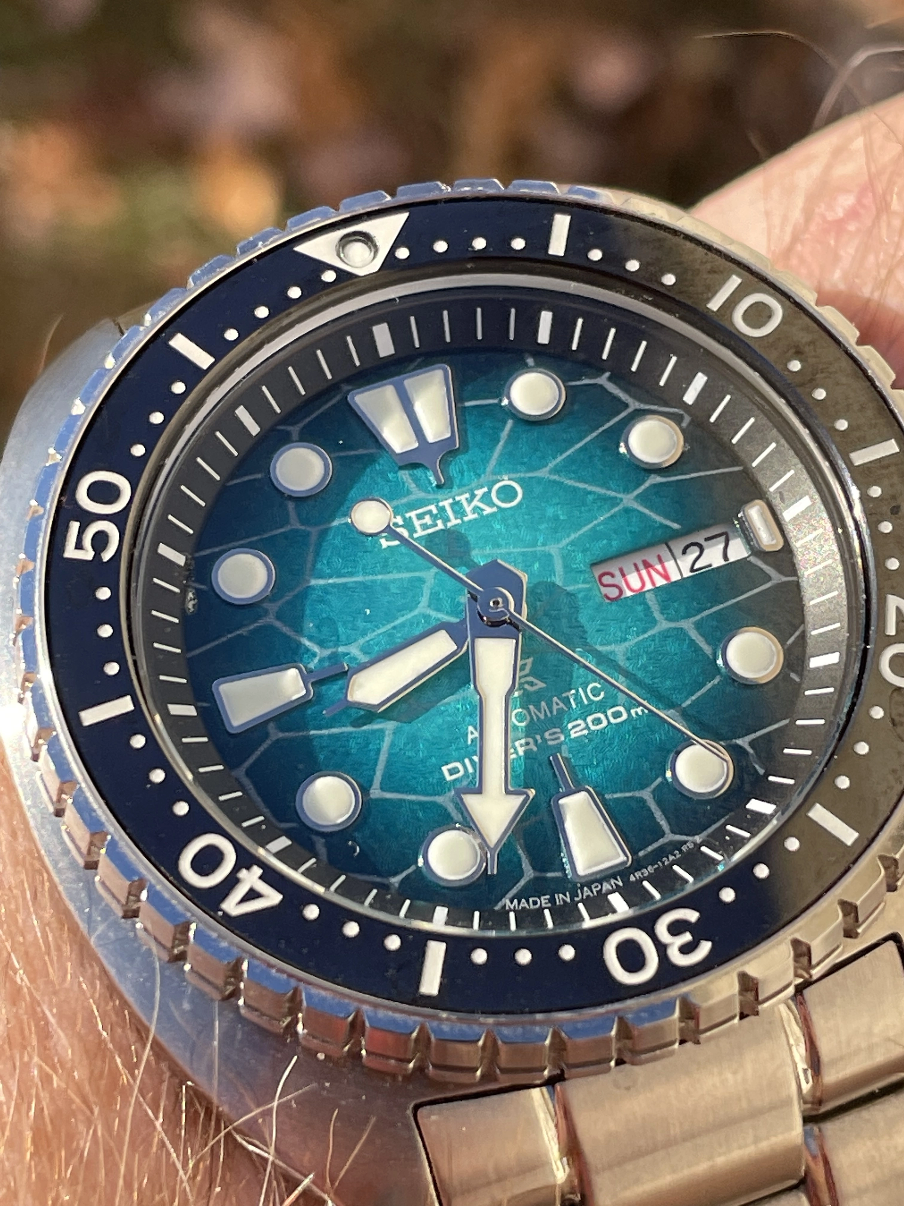 Posts 1,362 Likes 16,330 Fish70 ·Oct 27, 2024 The dial on this one shows the most variation in different lighting conditions than any other watch I own. Have a happy Sunday.