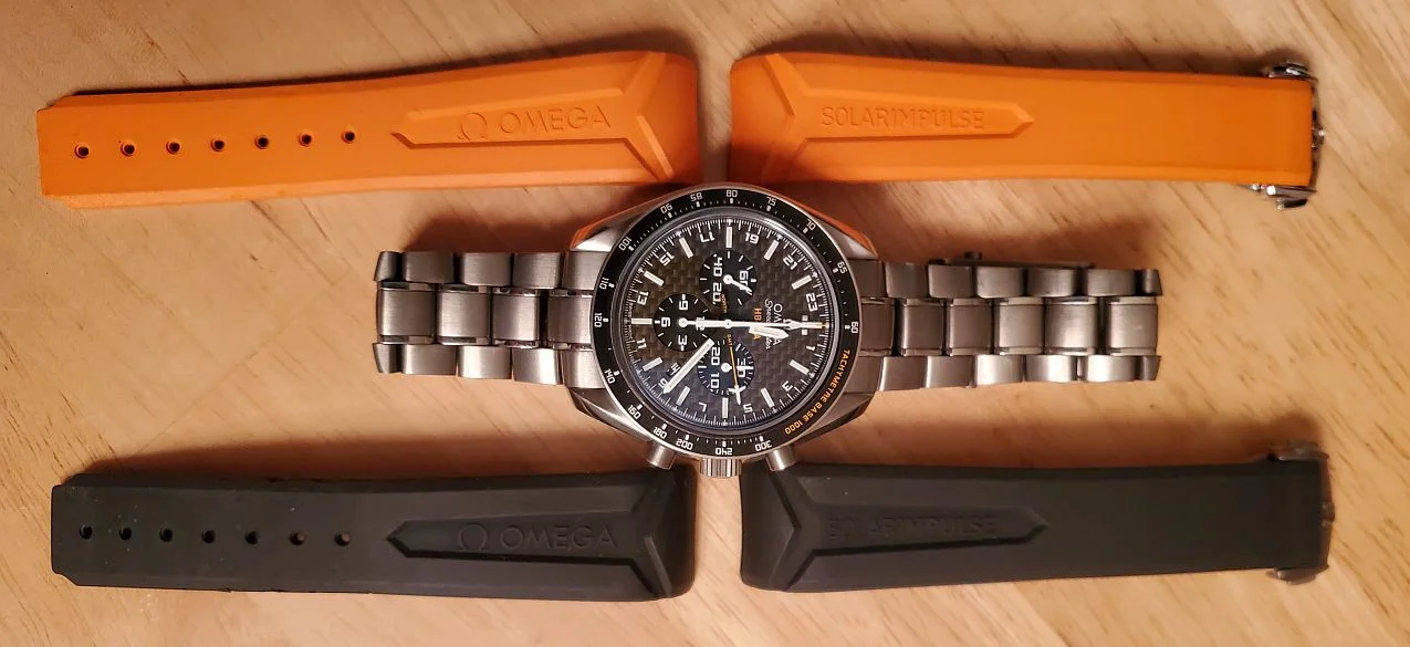 Posts 1,483 Likes 3,057 Ron_W ·Oct 29, 2024 Lou P Solar Impulse 1 on its Ti bracelet which I like very much, but getting ready for the annual strap change for Halloween...YaY. Awesome watch, one of the best all round do it all watches out there 👍