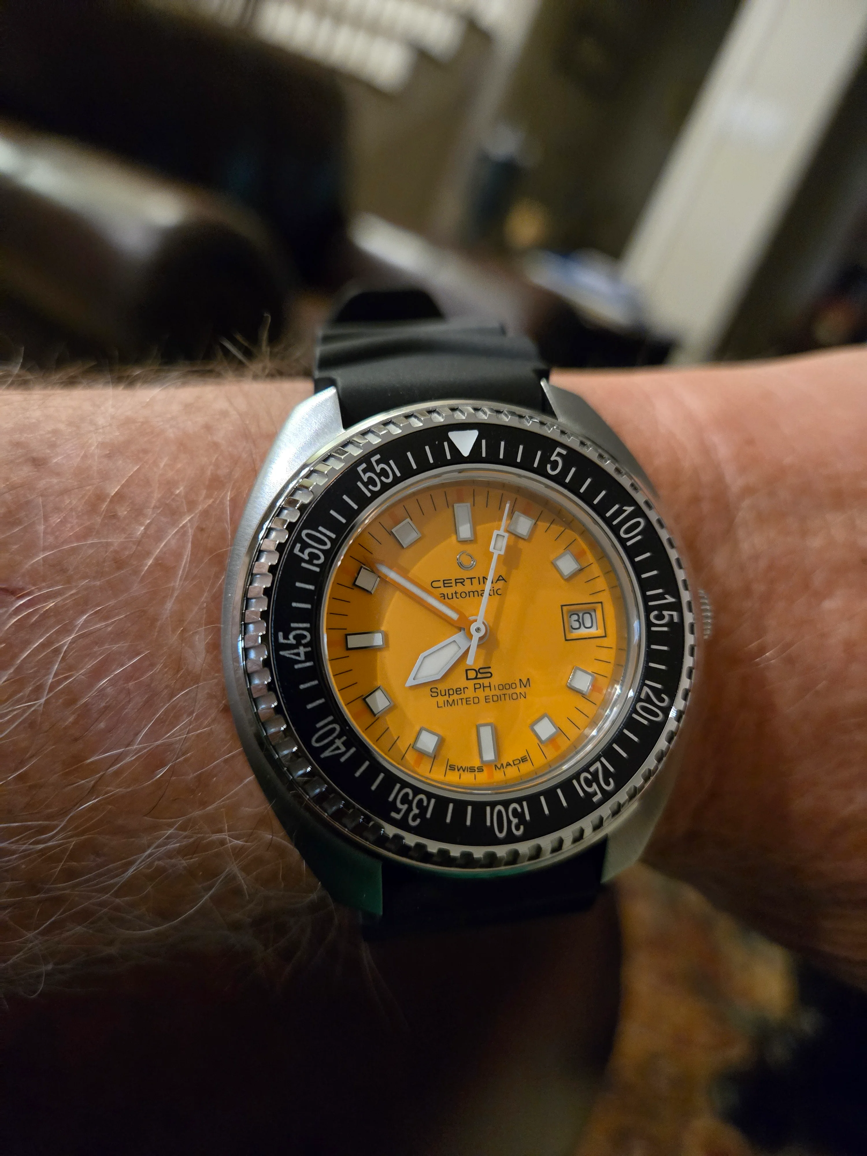 I love it too, but I would have to put it on a battered and tattered orange canvas "nato" strap. Those would really work together......just sayin'. Great beater though, even without my unasked for input, no offense intended. McK