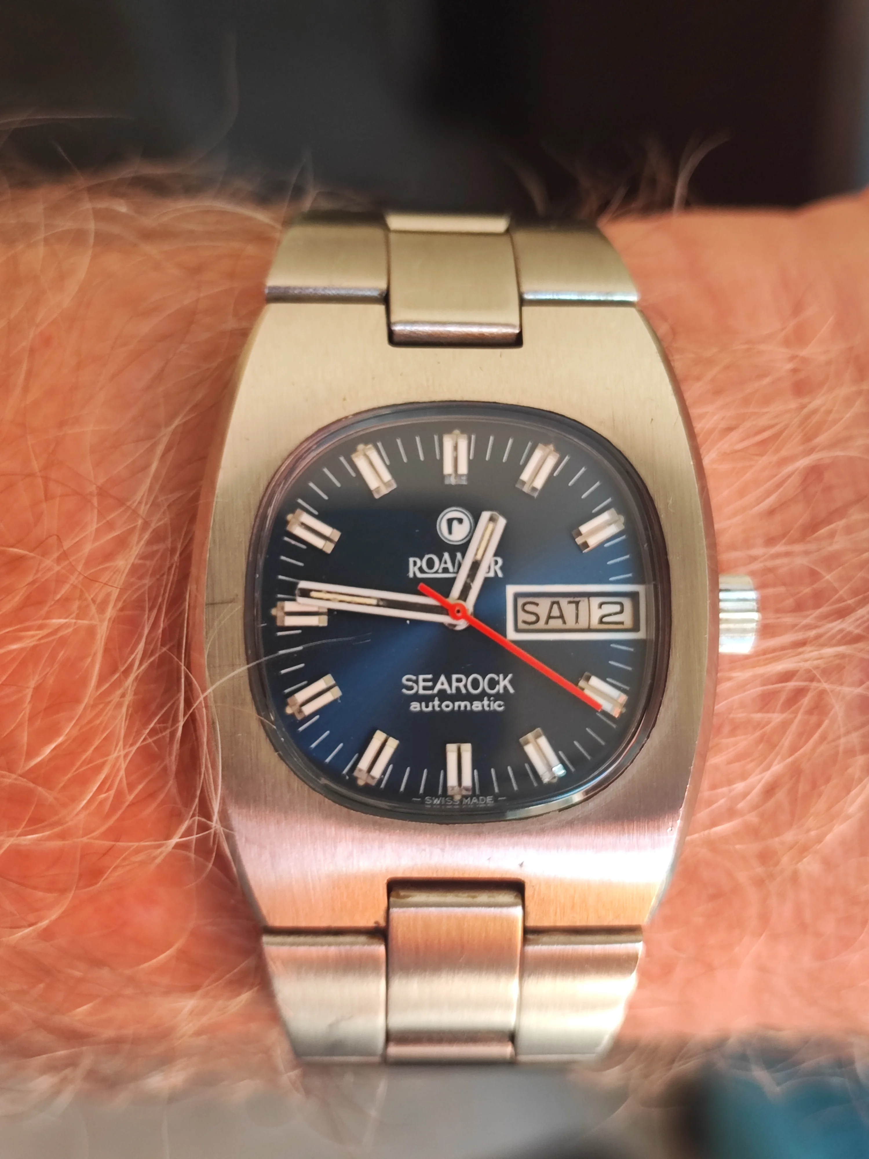 I never appreciated the MST523 MST52x calibres until I got a few of the various 520, 521, 522 and 523's with me generally believing lower jeweled movements were somewhat inferior, that and the fact that I tend to prefer watches from the early 60's and these are from the mid 70's however these have proved me wrong with a host of features including hacking and micro regulators, individual day and date quick sets and good movement finishing, the last of the Roamer exceptional in house movements.