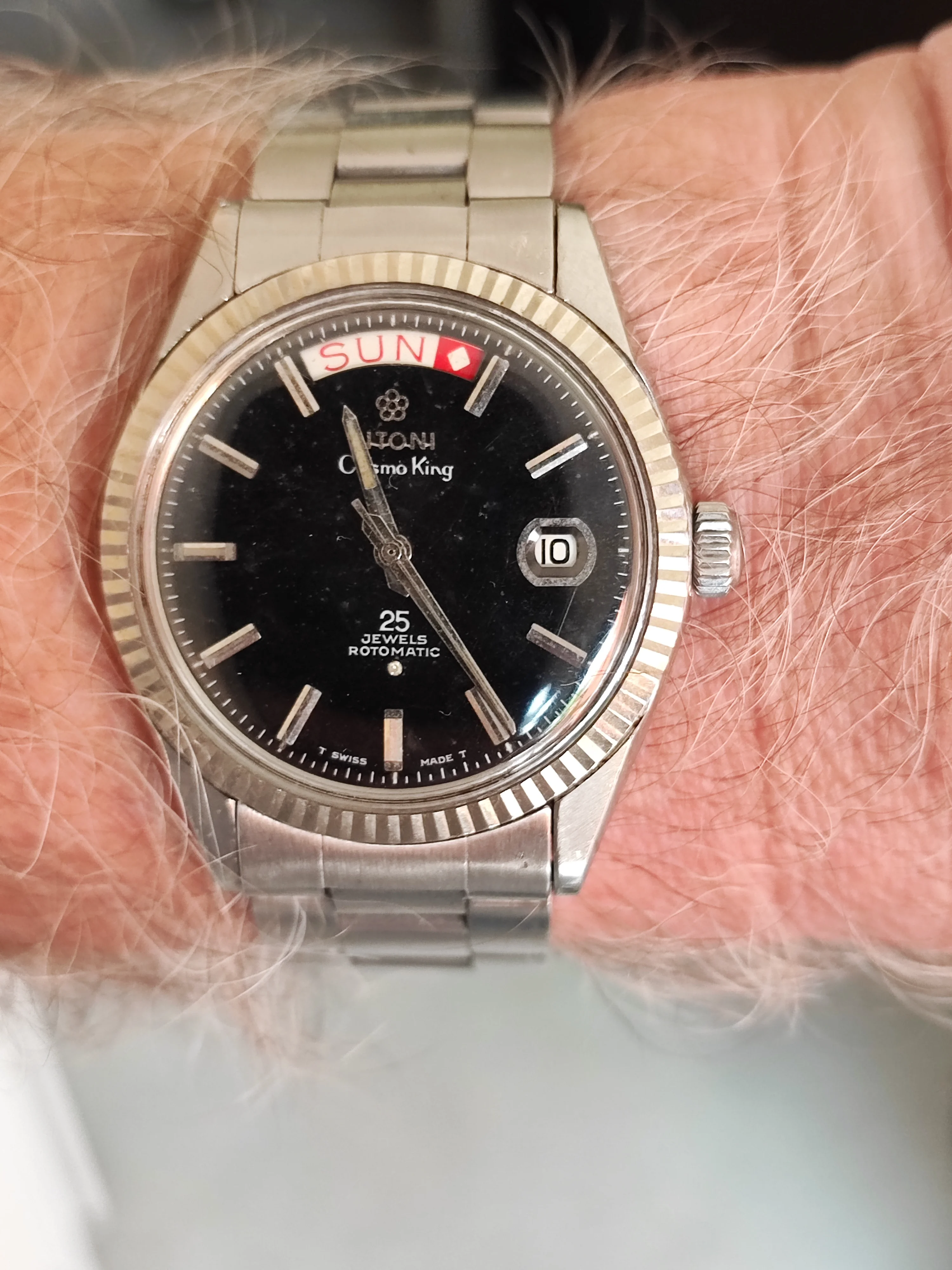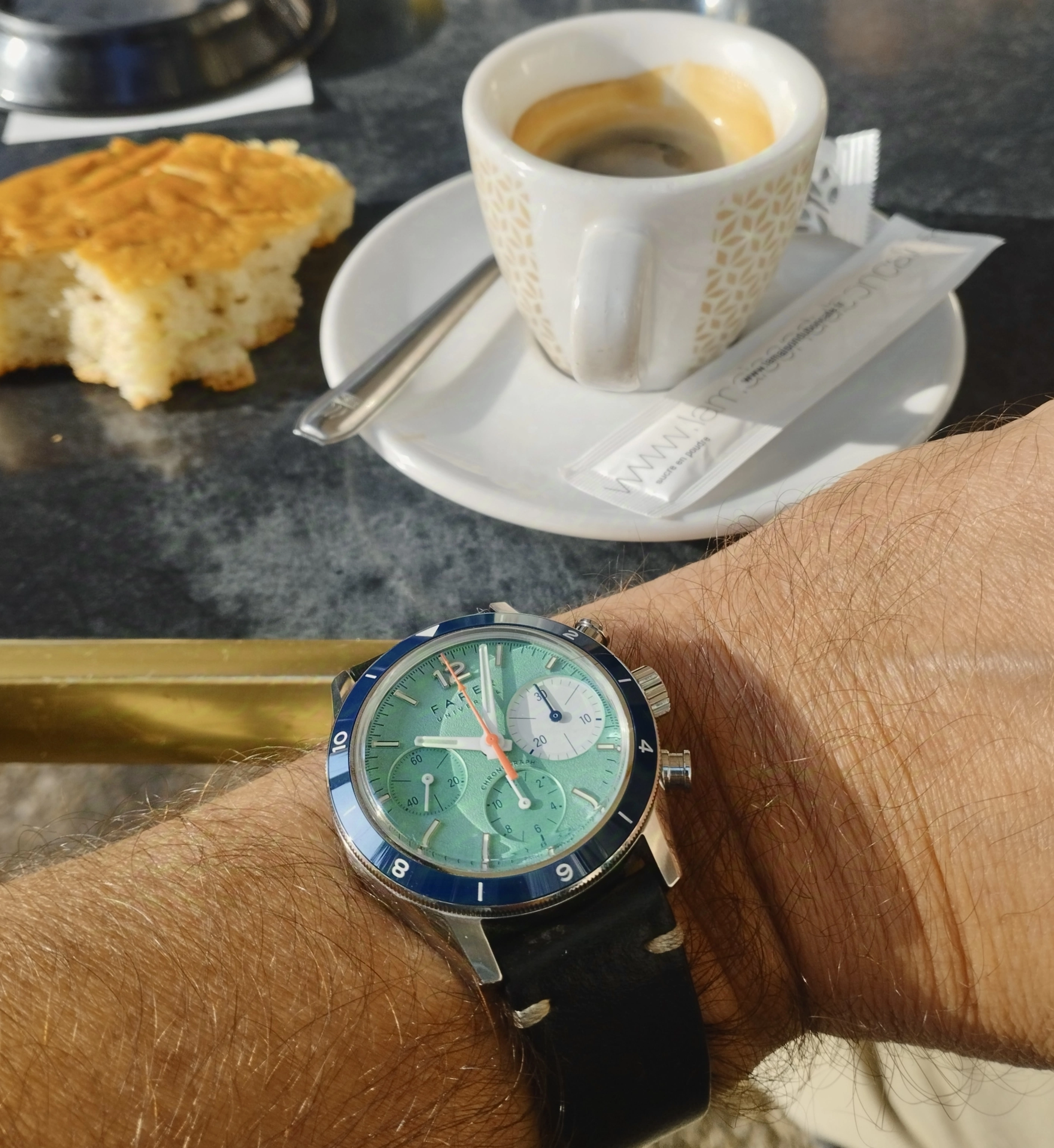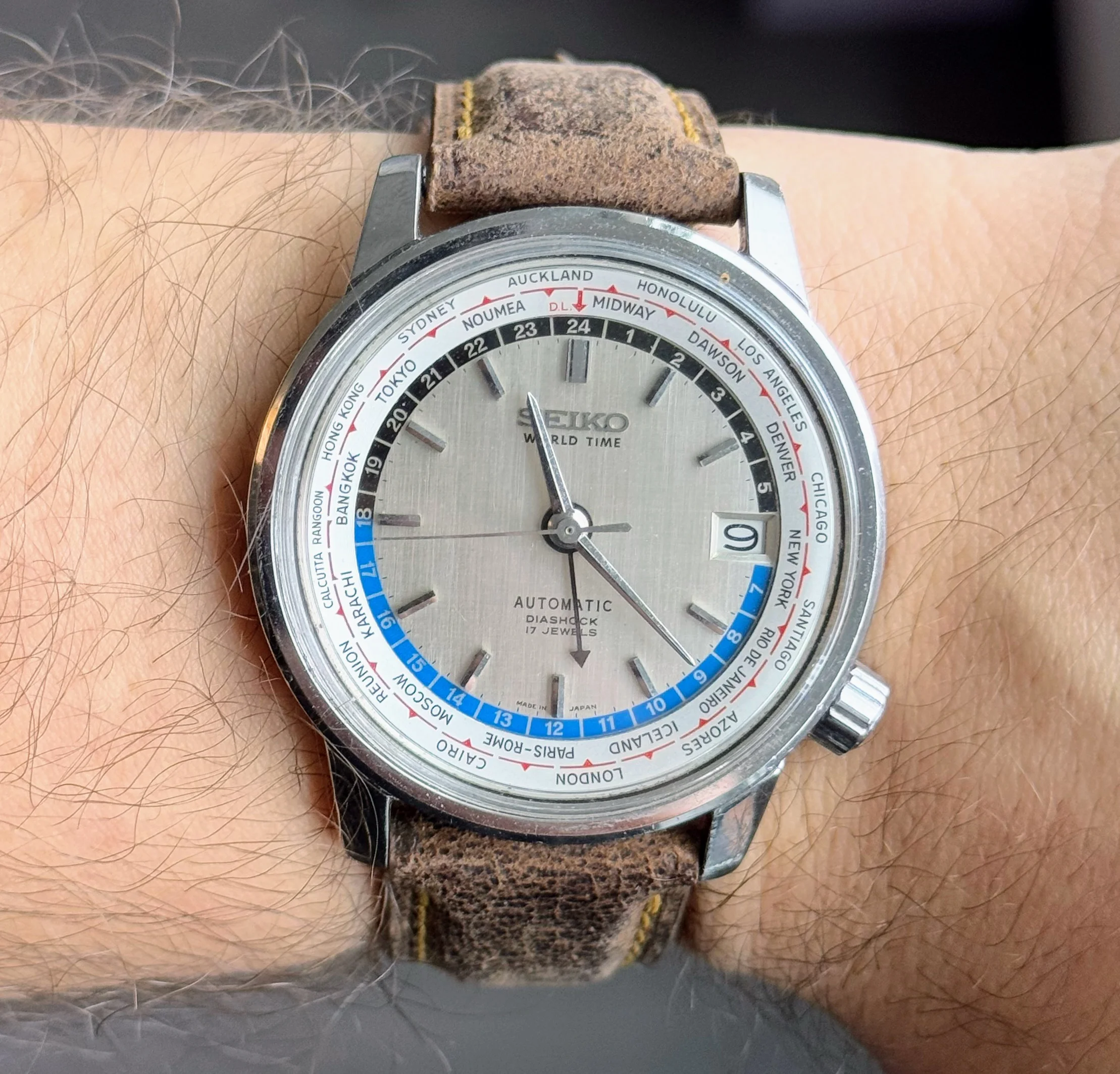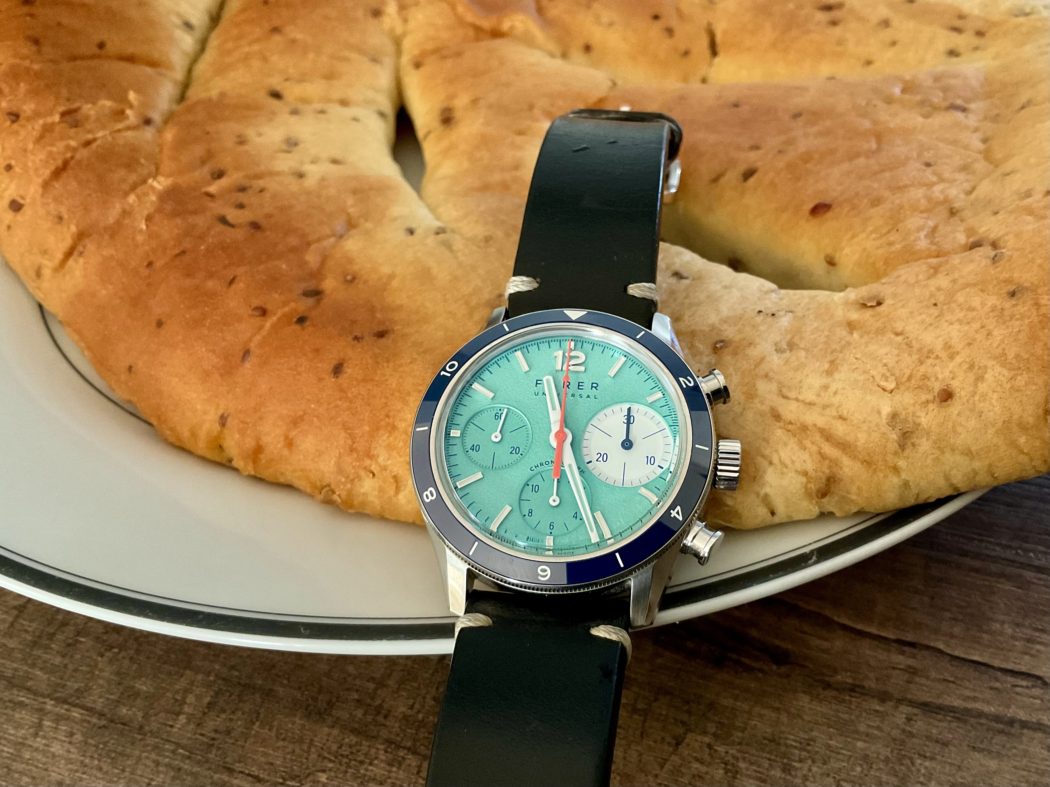 It’s a nice soft brown leather that matches the dial if memory serves correct. It’s buried in storage at the moment hope to dig it out in the