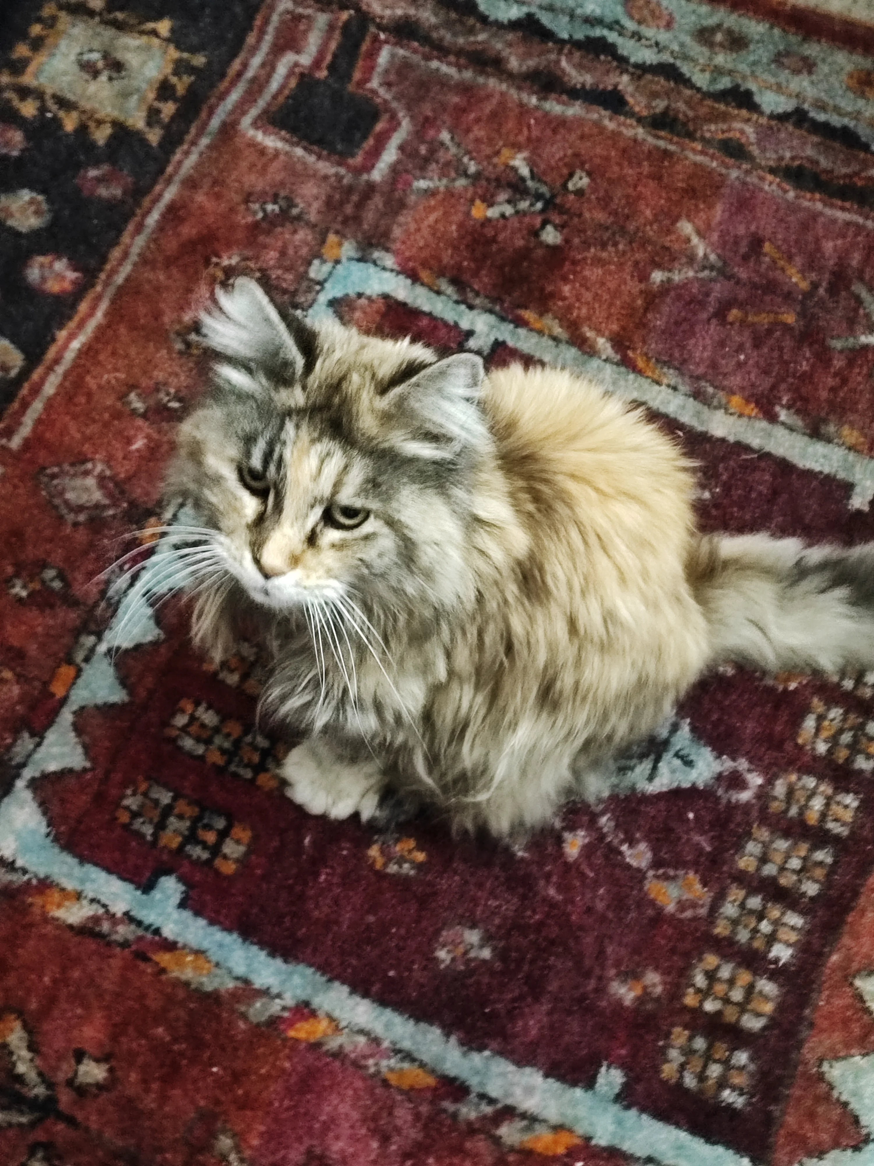 Our aged Maine Coon, purring like a train and probably wondering where her next meal is at. In recent weeks she is demonstrating an insatiable appetite, like now at 3.35 in the morning.
