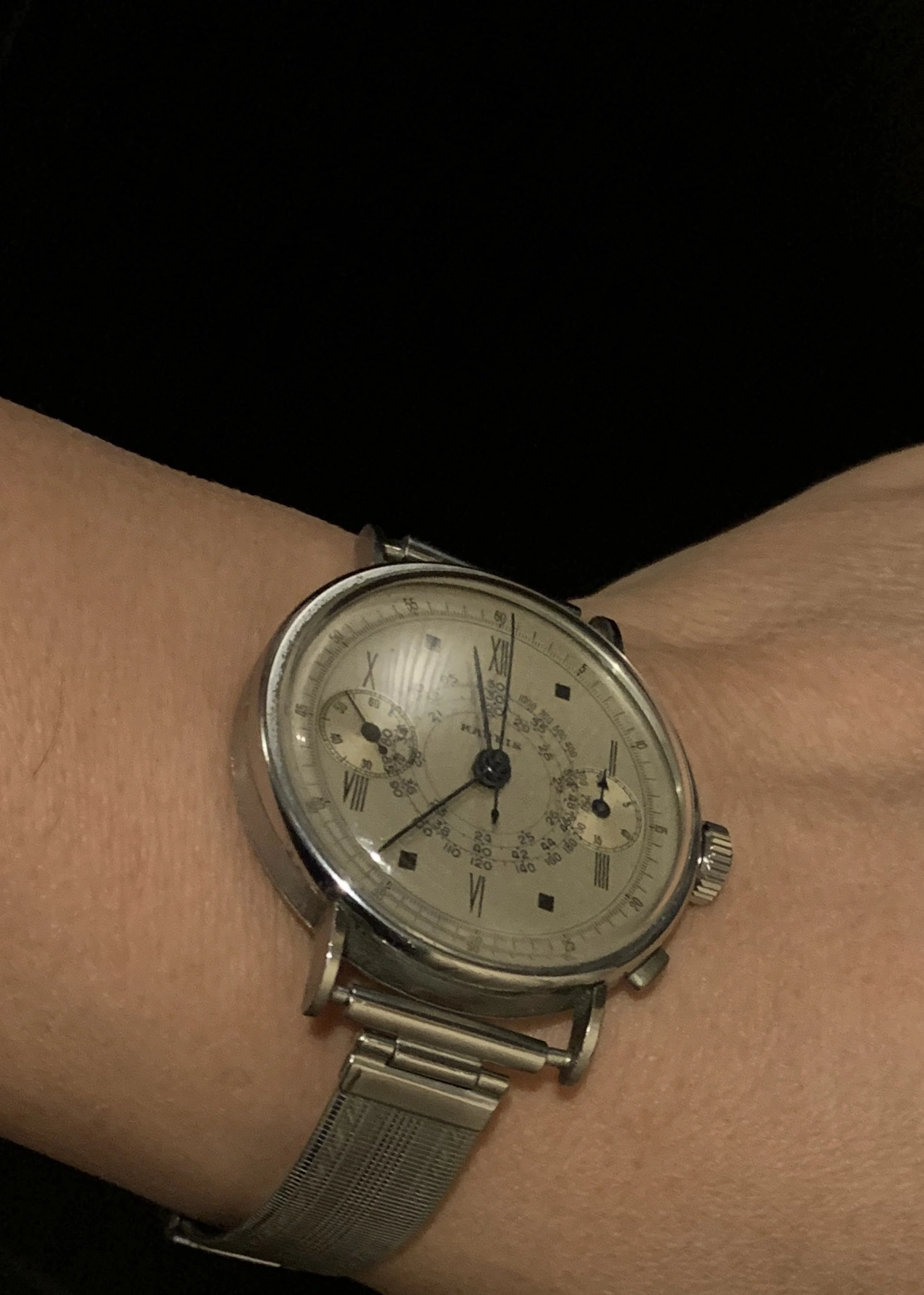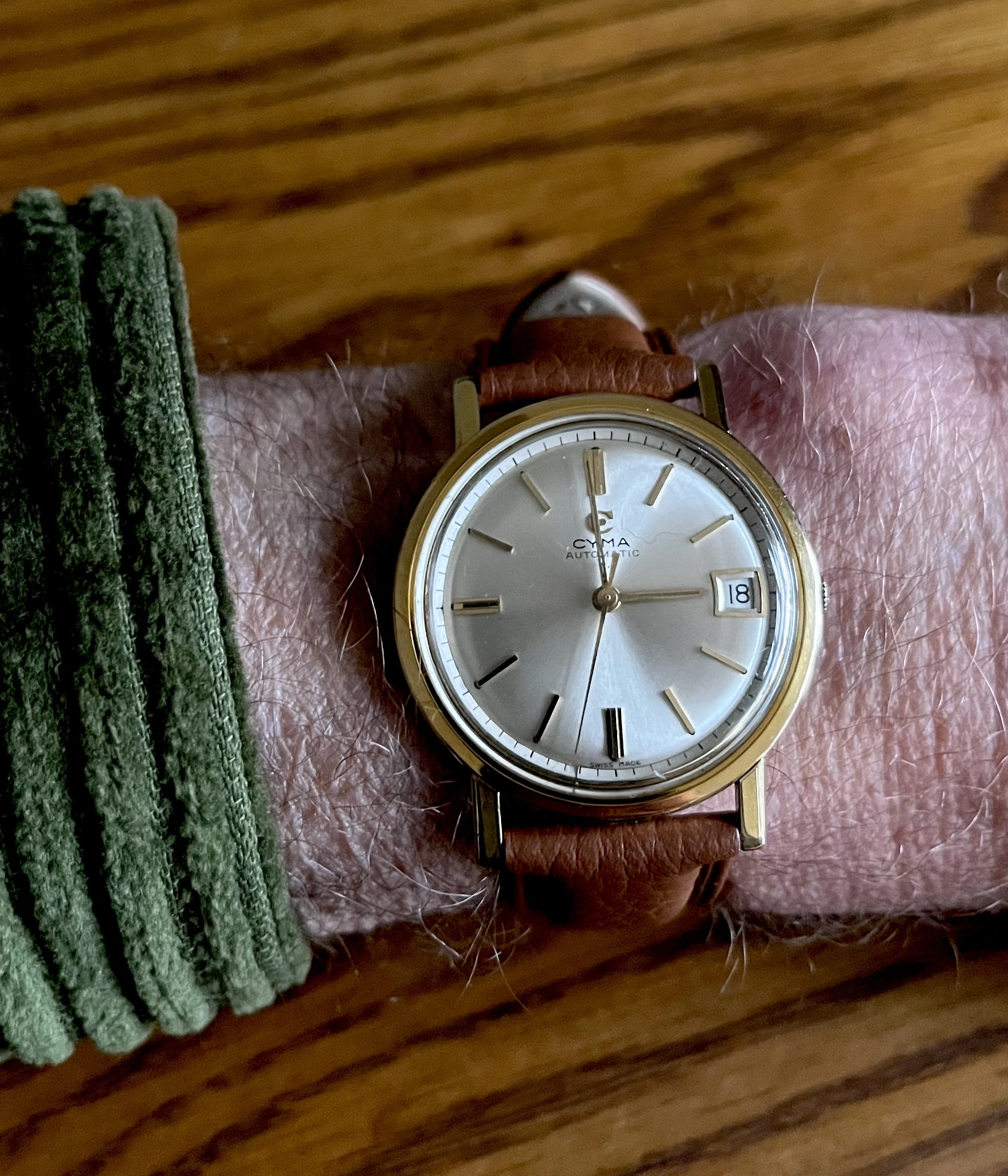 I rarely wear this Cyma which I bought in 2018 in a contested auction on eBay the day after my previous terrier died. I sometimes consider it a memorial watch.
