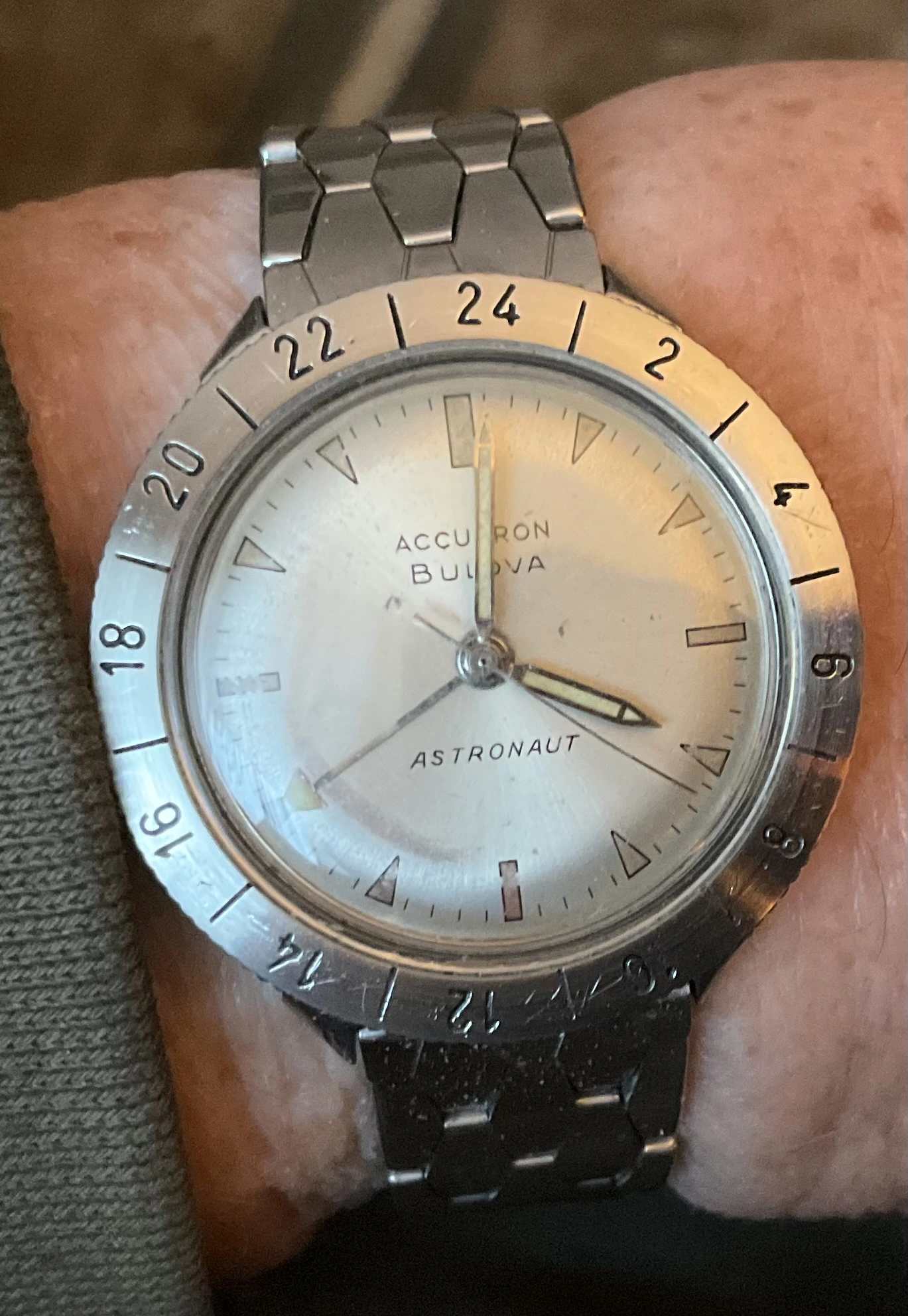 Still wearing my newly resuscitated 1967 Bulova Accutron Astronaut. I have worn it more the past week than I have in the previousI 35 years I’ve owned this watch. It isn’t perfect, but it will do until an affordable more pristine example comes along.