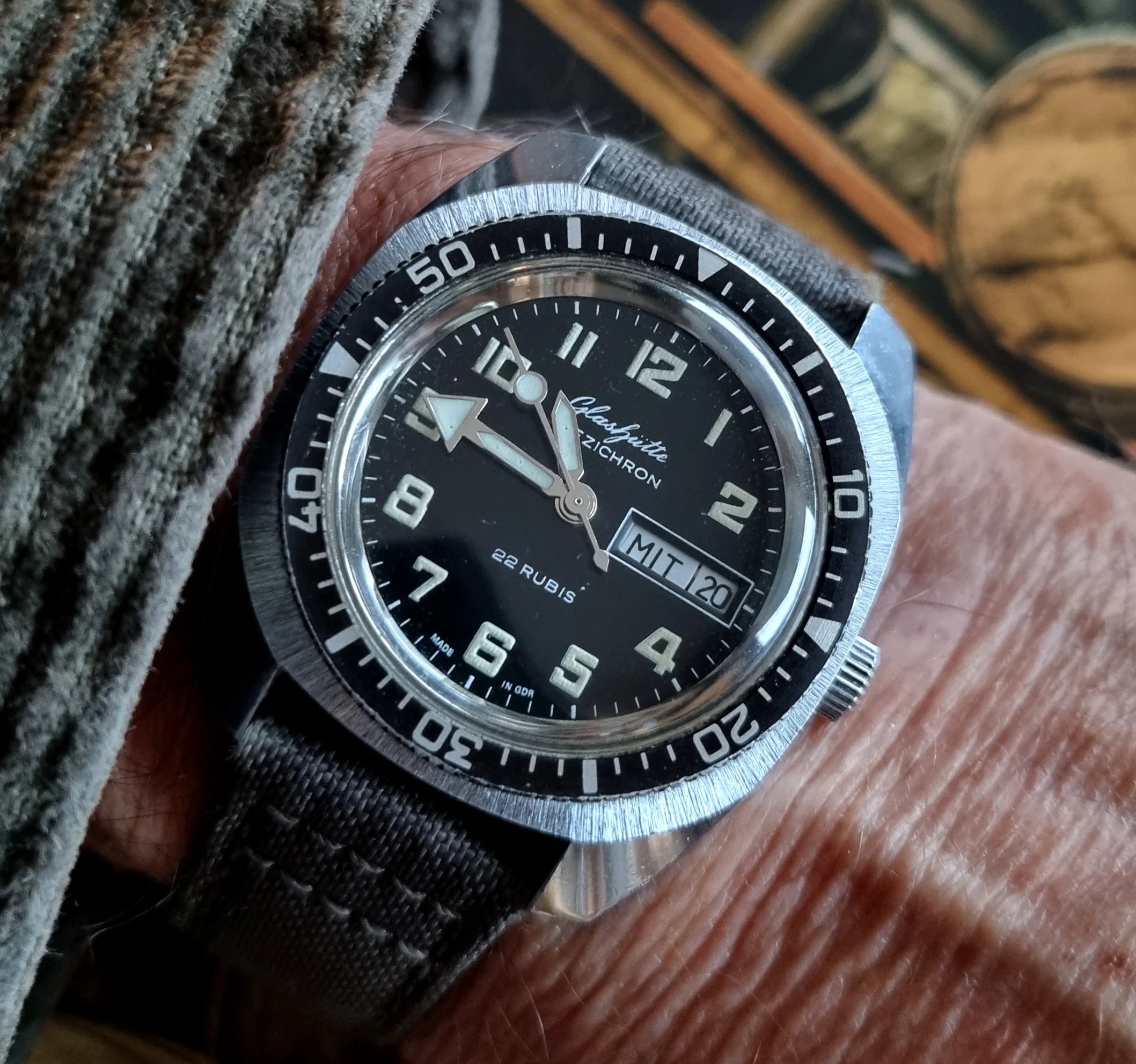 I got some kind of skin condition on my left wrist, so I change over to the right. This feels so weird, I keep looking at my empty left wrist all the time.
