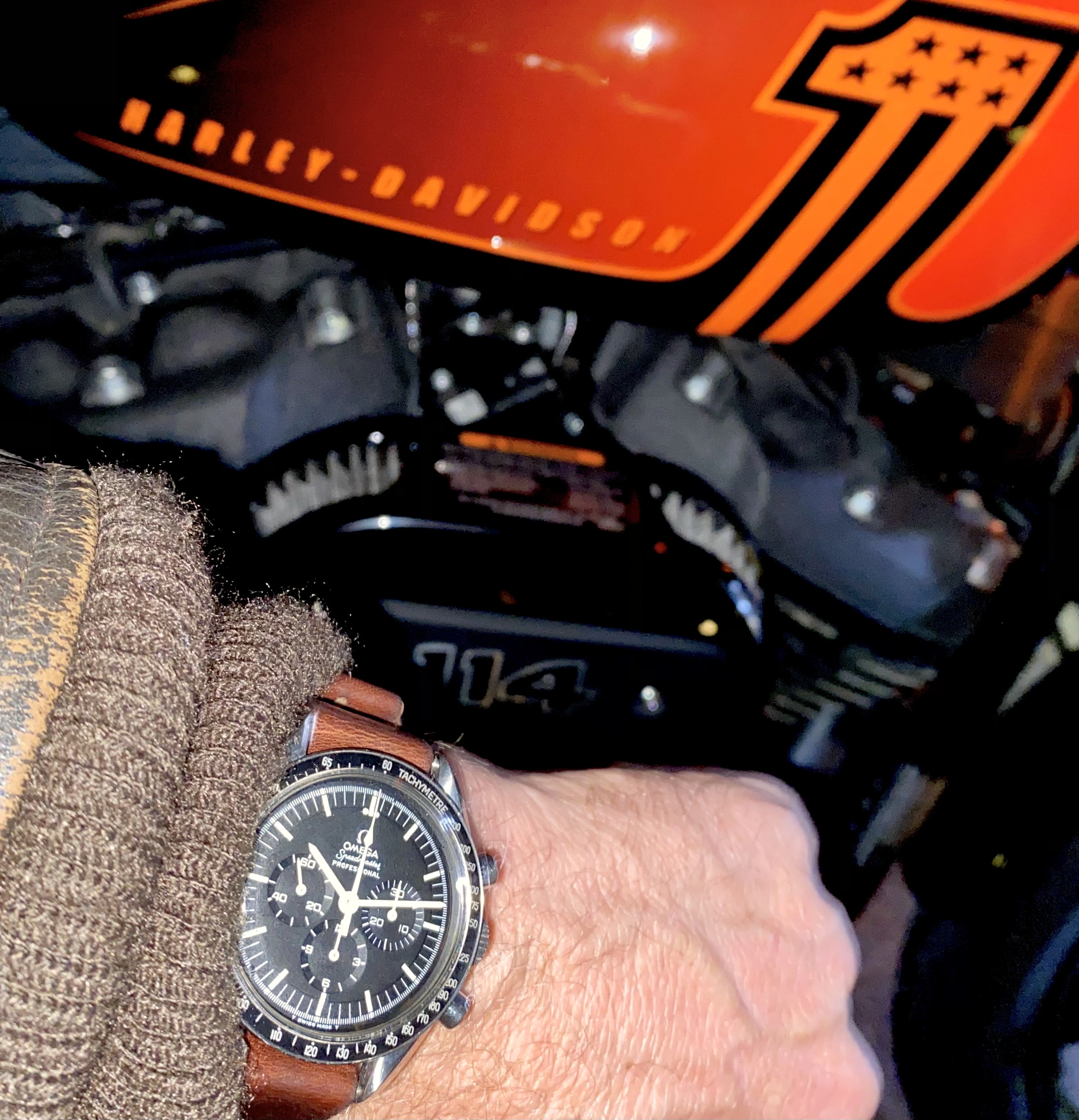 It’s still Speedy Tuesday! Just got back from two days of glorious fun in the B737 simulator at Delta HQ in ATL for annual training…now it’s time to ride the H-D…-71 on an Omega barenia leather NATO…