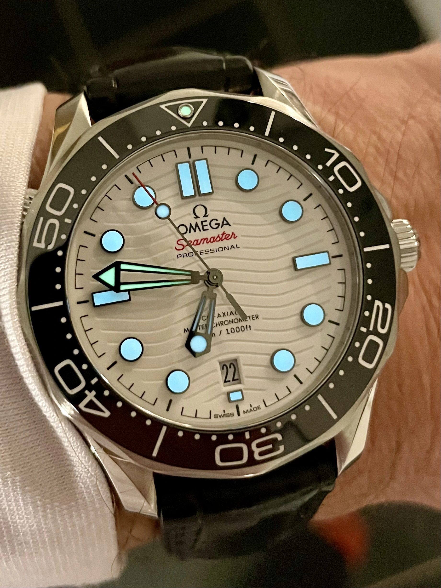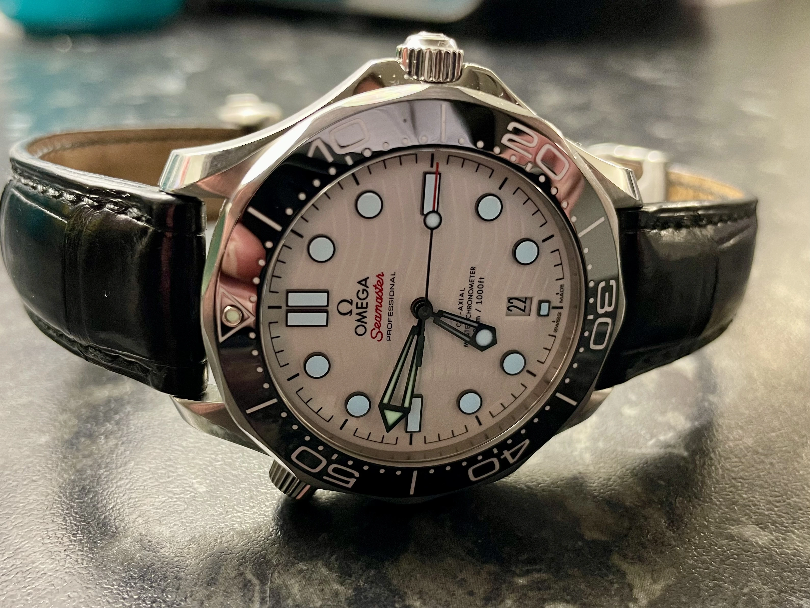 Long time no post but after being shocked how cold my Seamaster was on the bracelet when putting it on at 5-25am Tuesday I decided to swap this to the Omega Alligator with deployment.