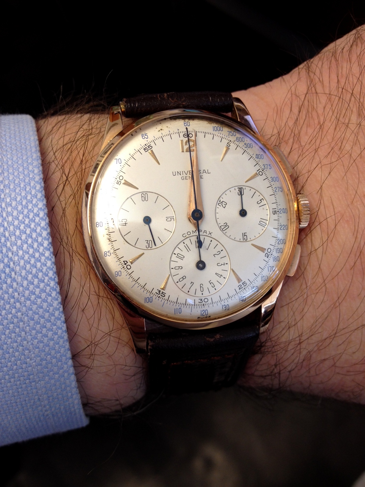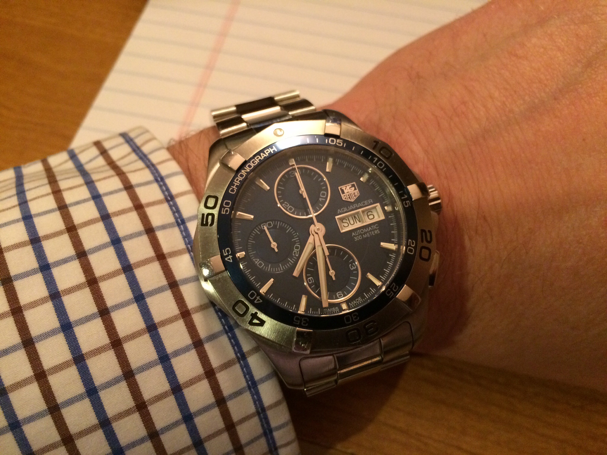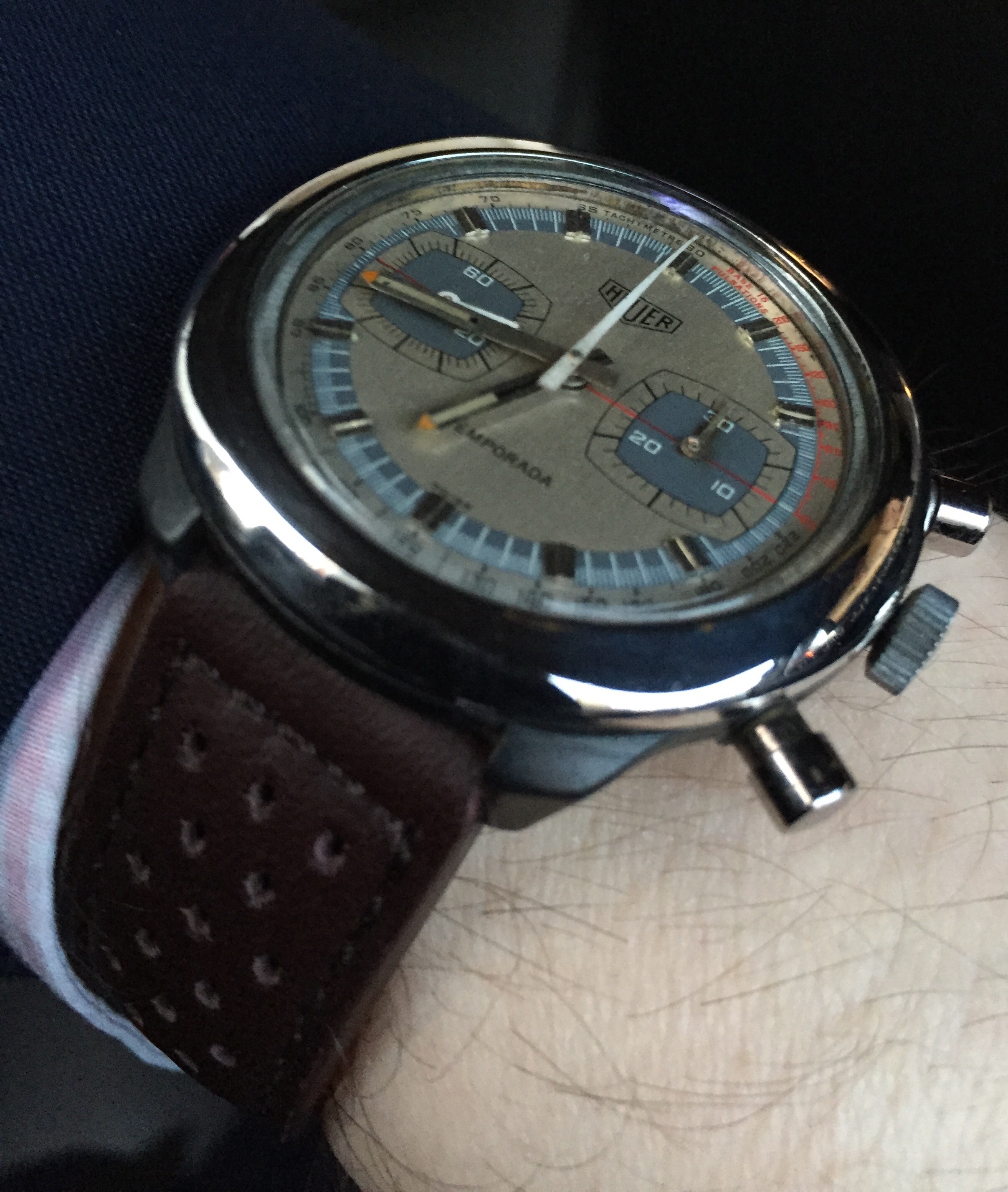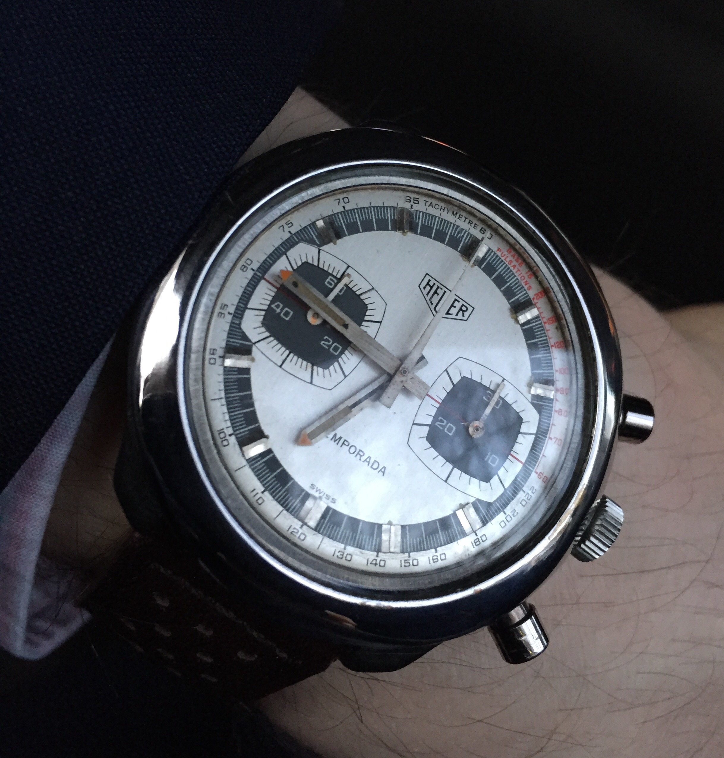 Received while I was away - totally does not go with the suit I am wearing but I couldn't wait to wear it! Strap change correctly predicted by Hexicon...