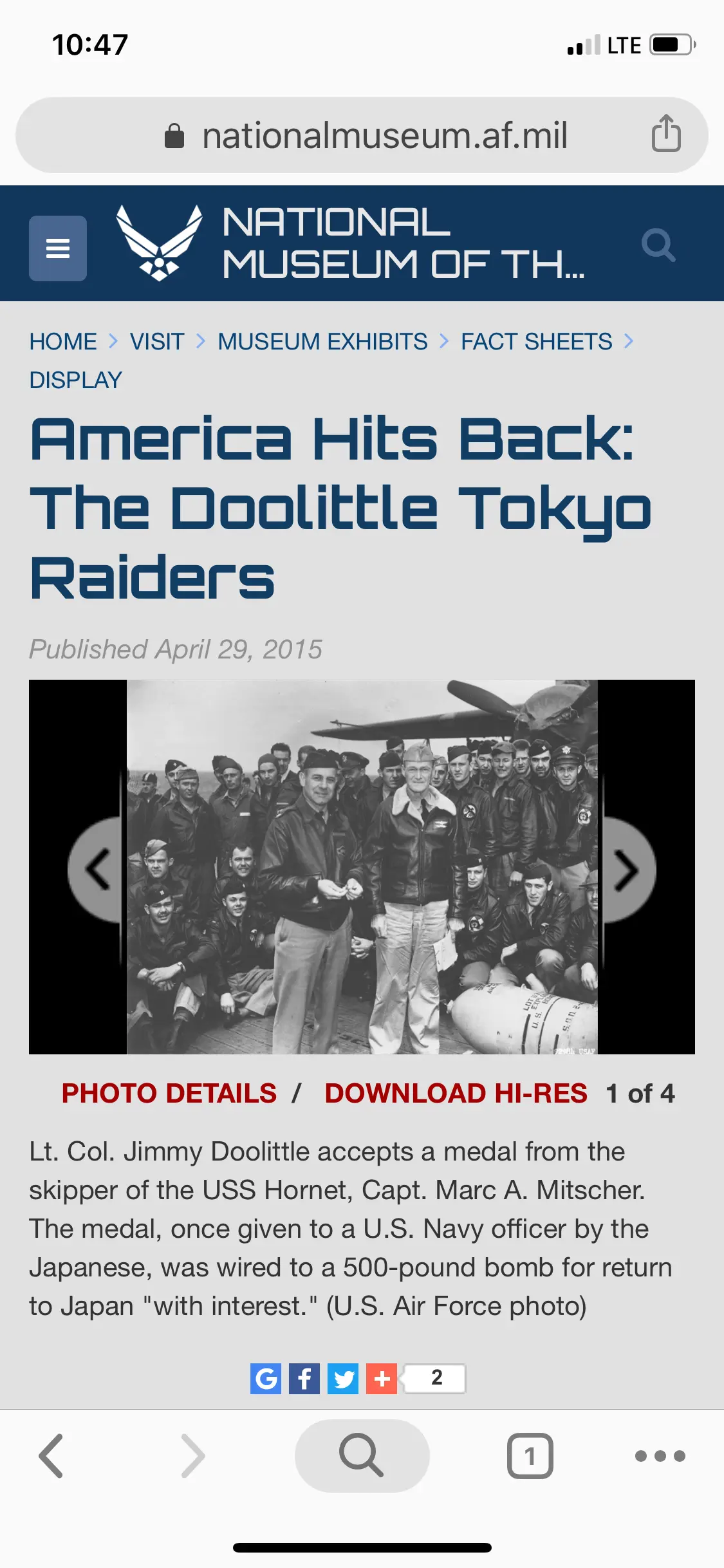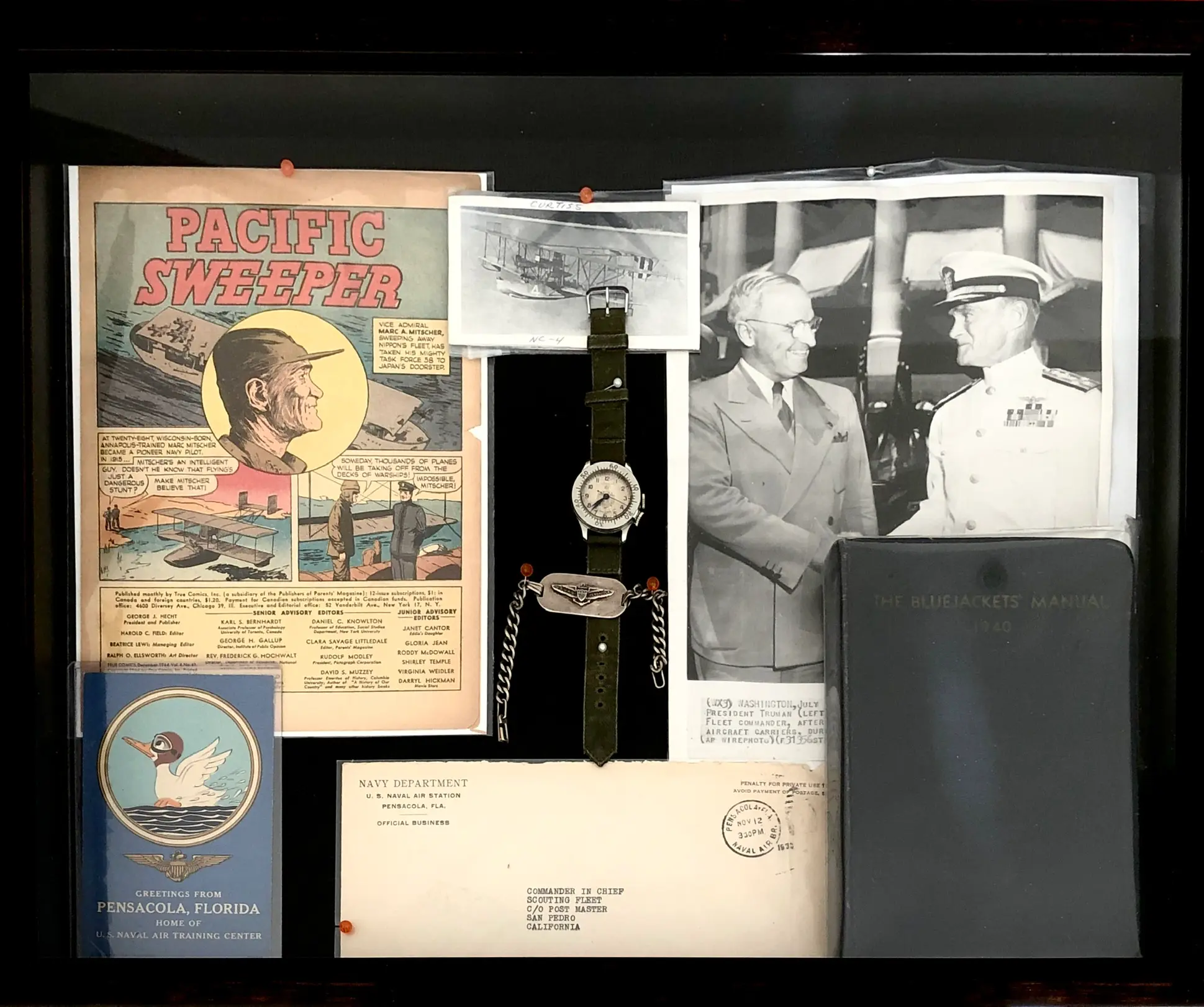 What is more remarkable is the 1937 Longines Weems Annapolis that was in the same map case. Could this be Mitscher's watch? Yes it could be. Who was Mitscher? There are books about how he was one of the great Admirals in the Pacific. And he was as Captain most famously known for being Captain of the USS Hornet CV-8 that sent James Dolittle and the Tokyo Raiders to bomb Japan as payback for Pearl Harbor. Later he would go on to loose many flagships but ultimately he beat Admiral Yamamoto. His most lasting contribution to naval tactics is to change sea battle from battleships to aircraft carrier task forces. Well he and Yamamoto.
