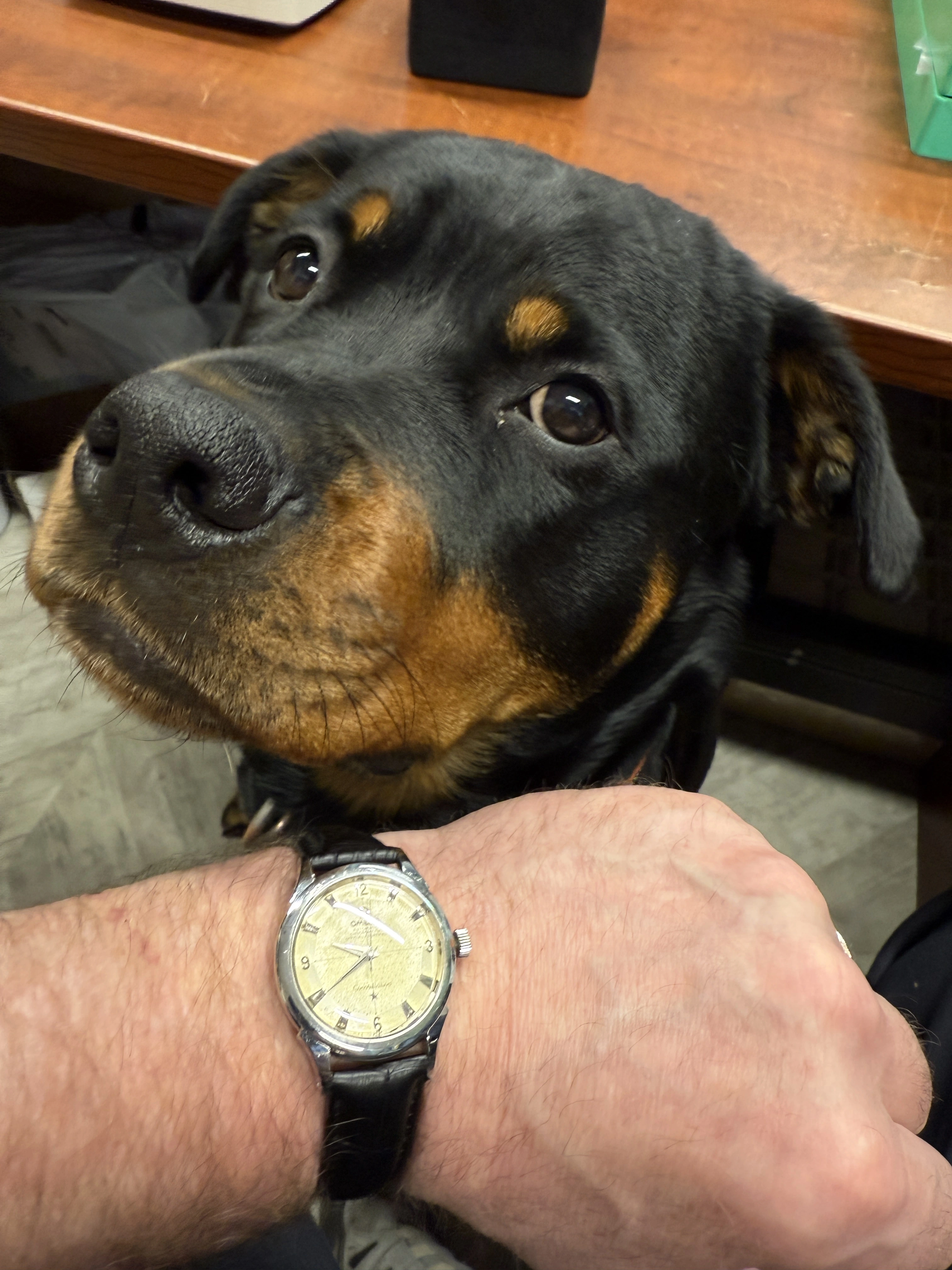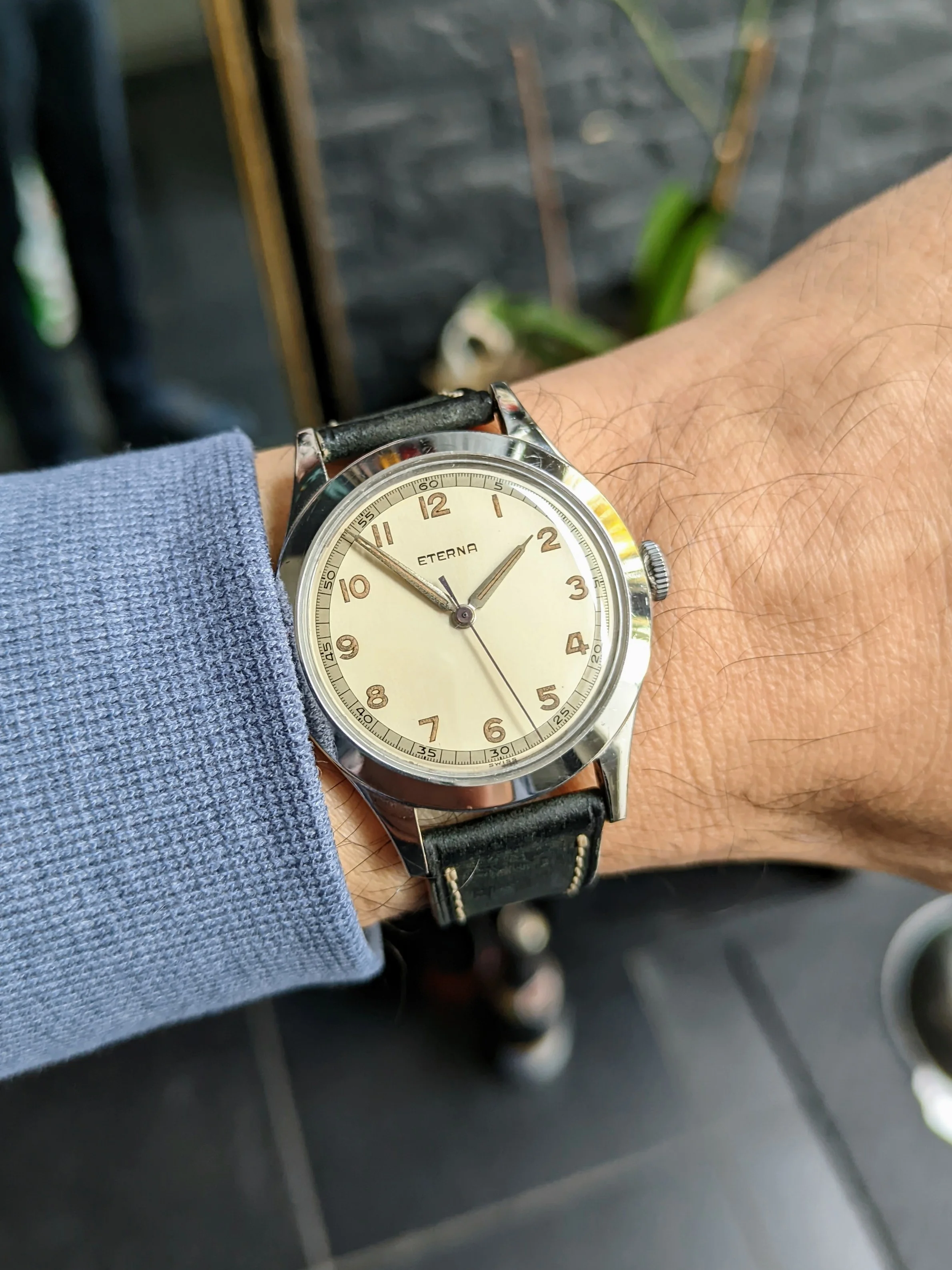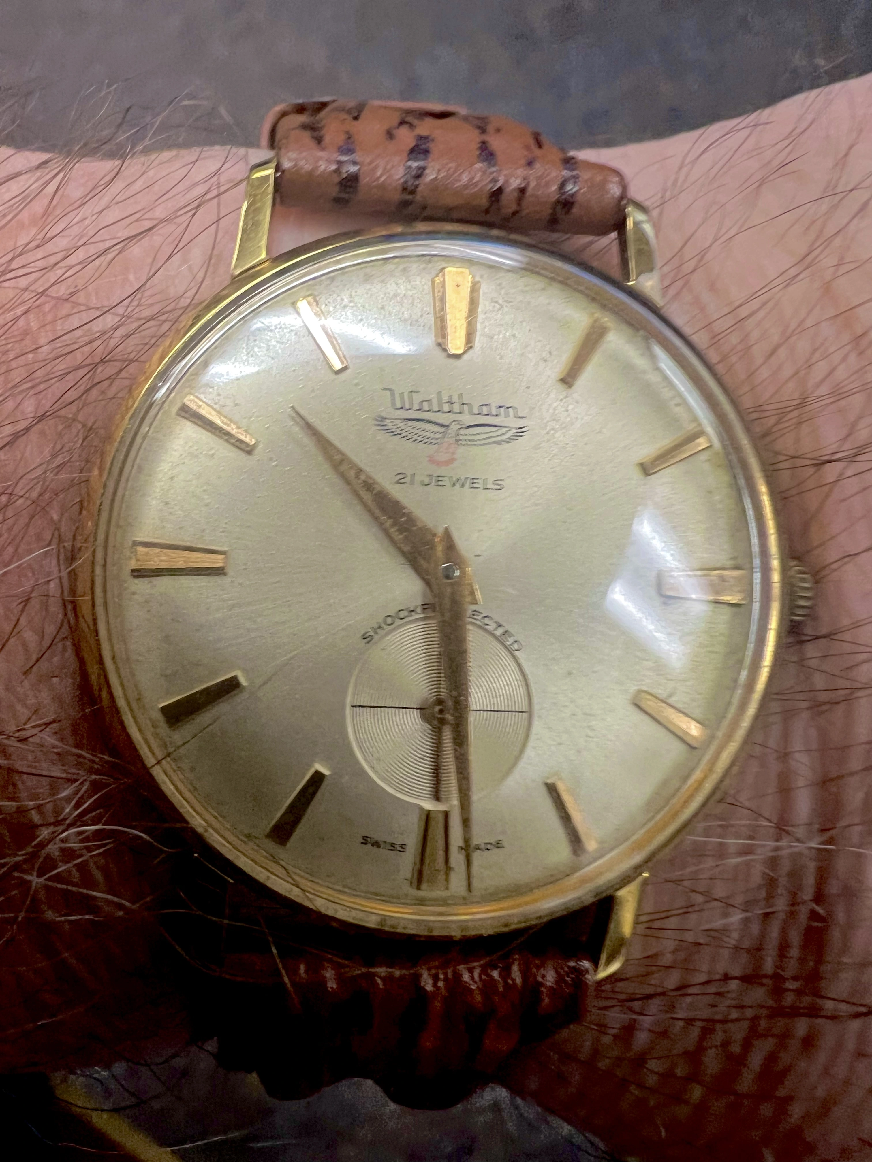 This watch is pretty special to me. A 1955 Waltham, that I found in Israel on eBay. Perfect dial, but the GP case has seen better days. I got it serviced and replated. This is a reminder of what I learned during my early collecting period.