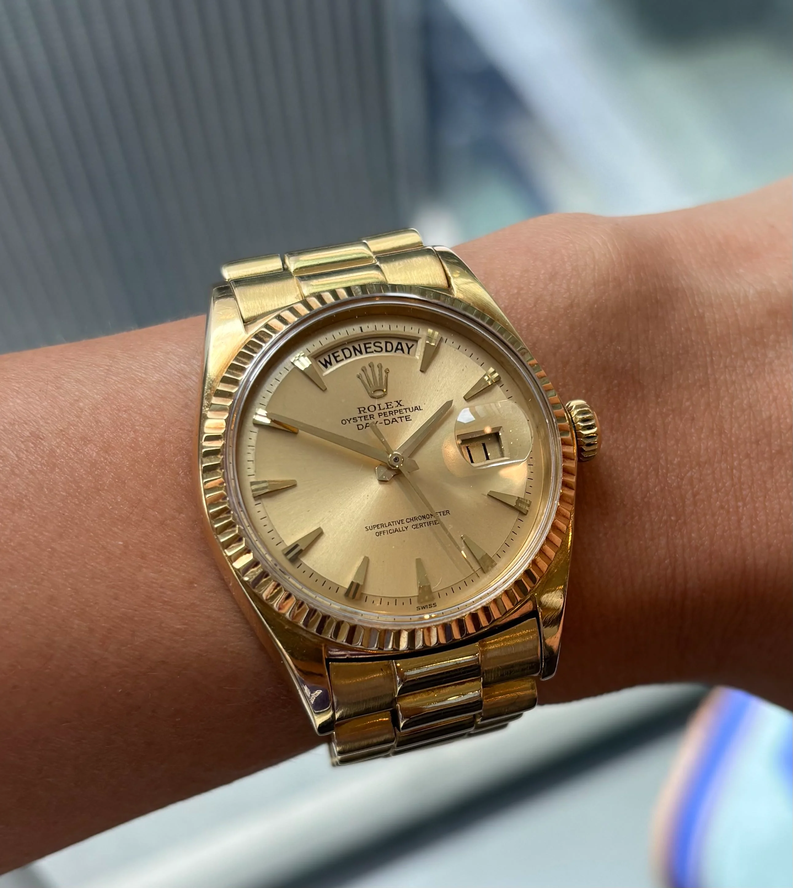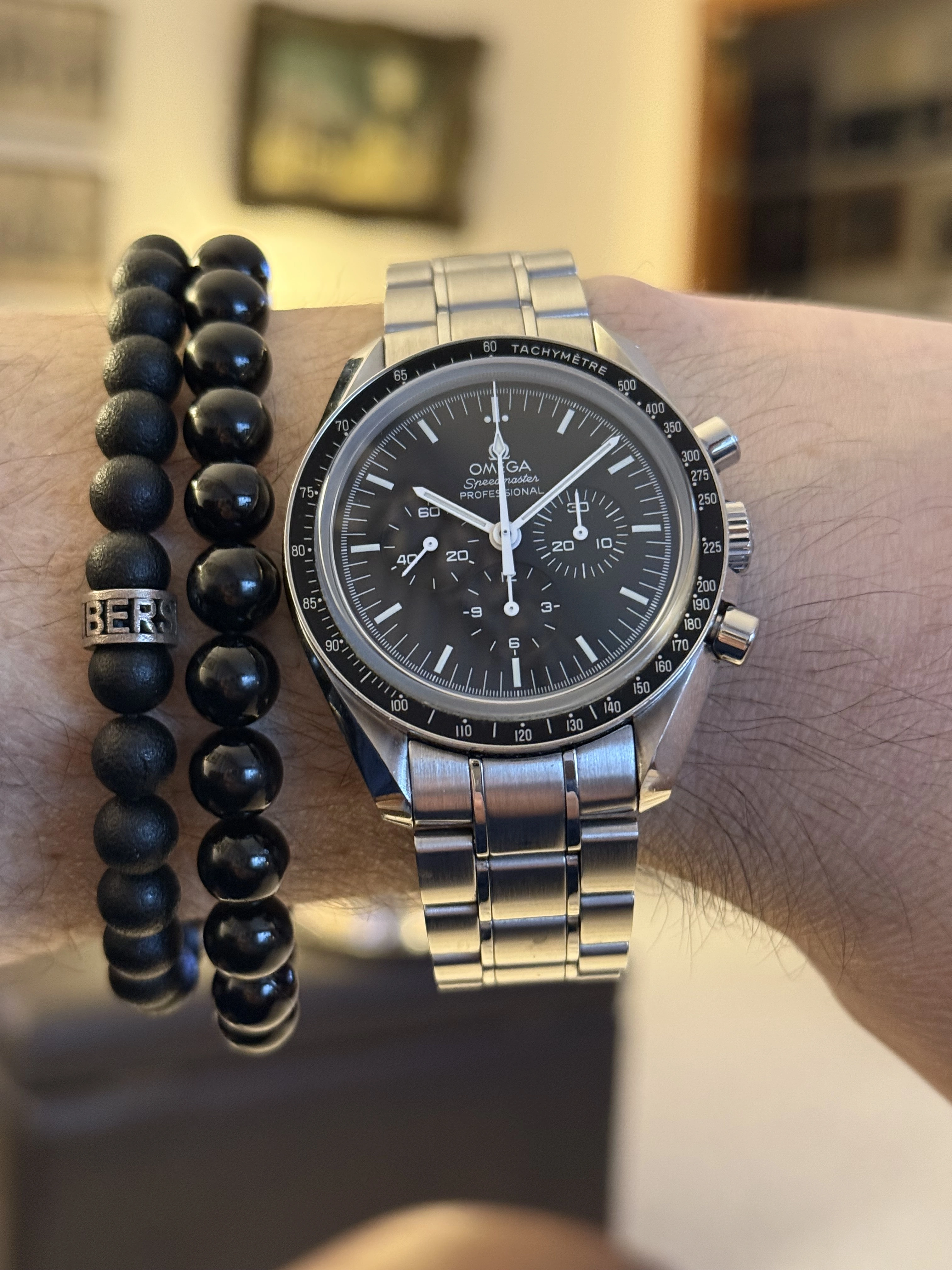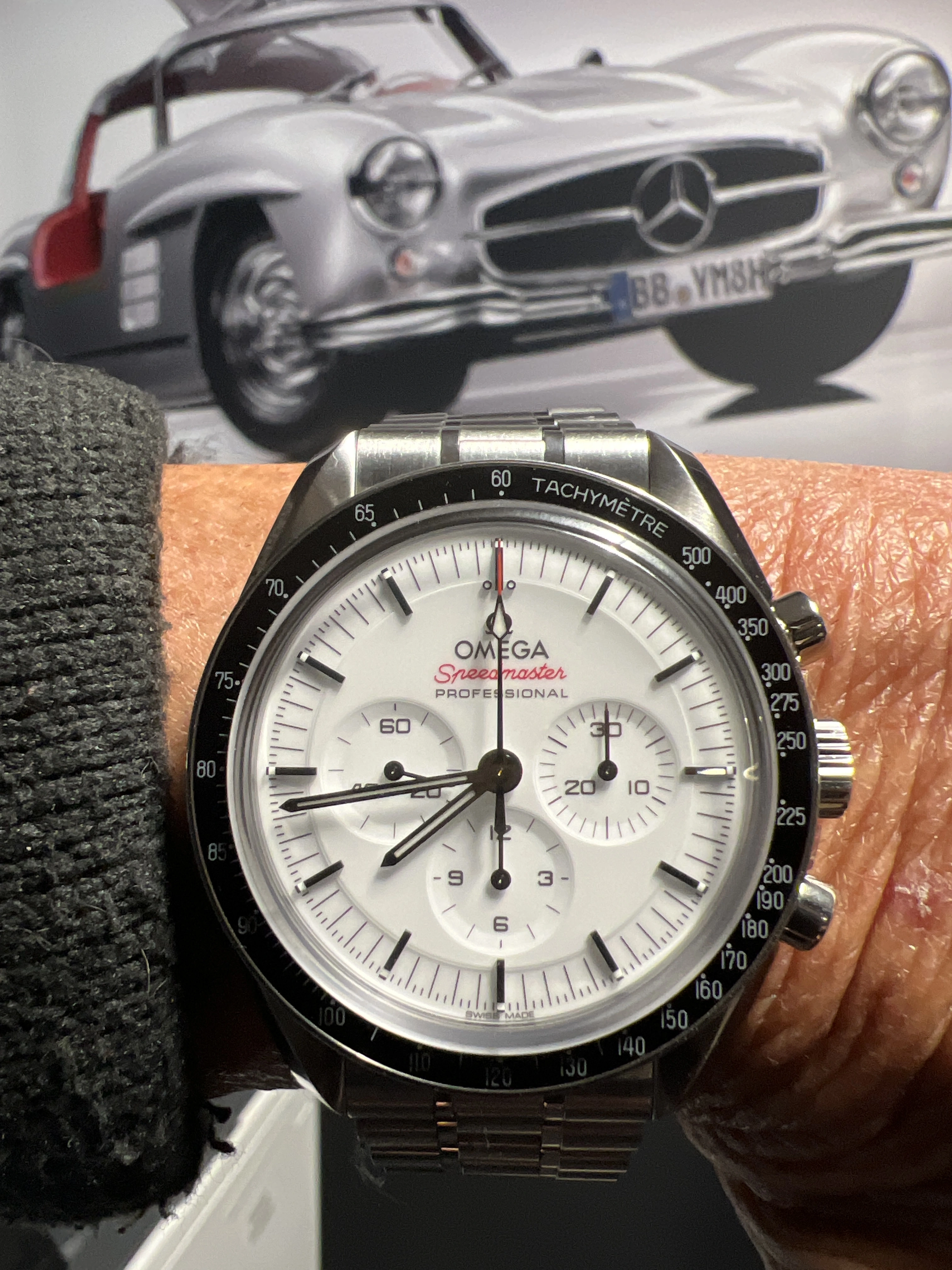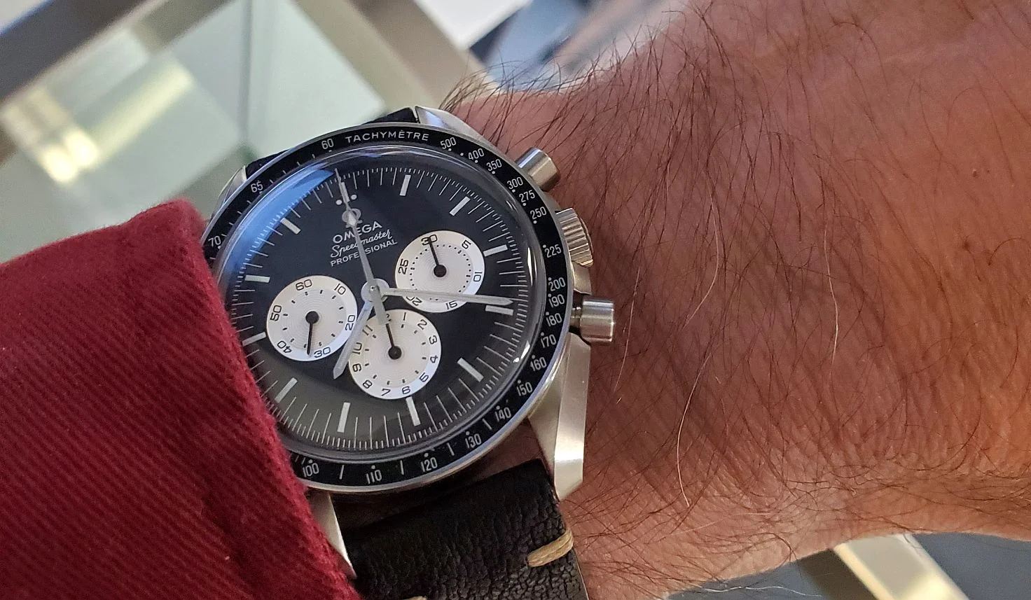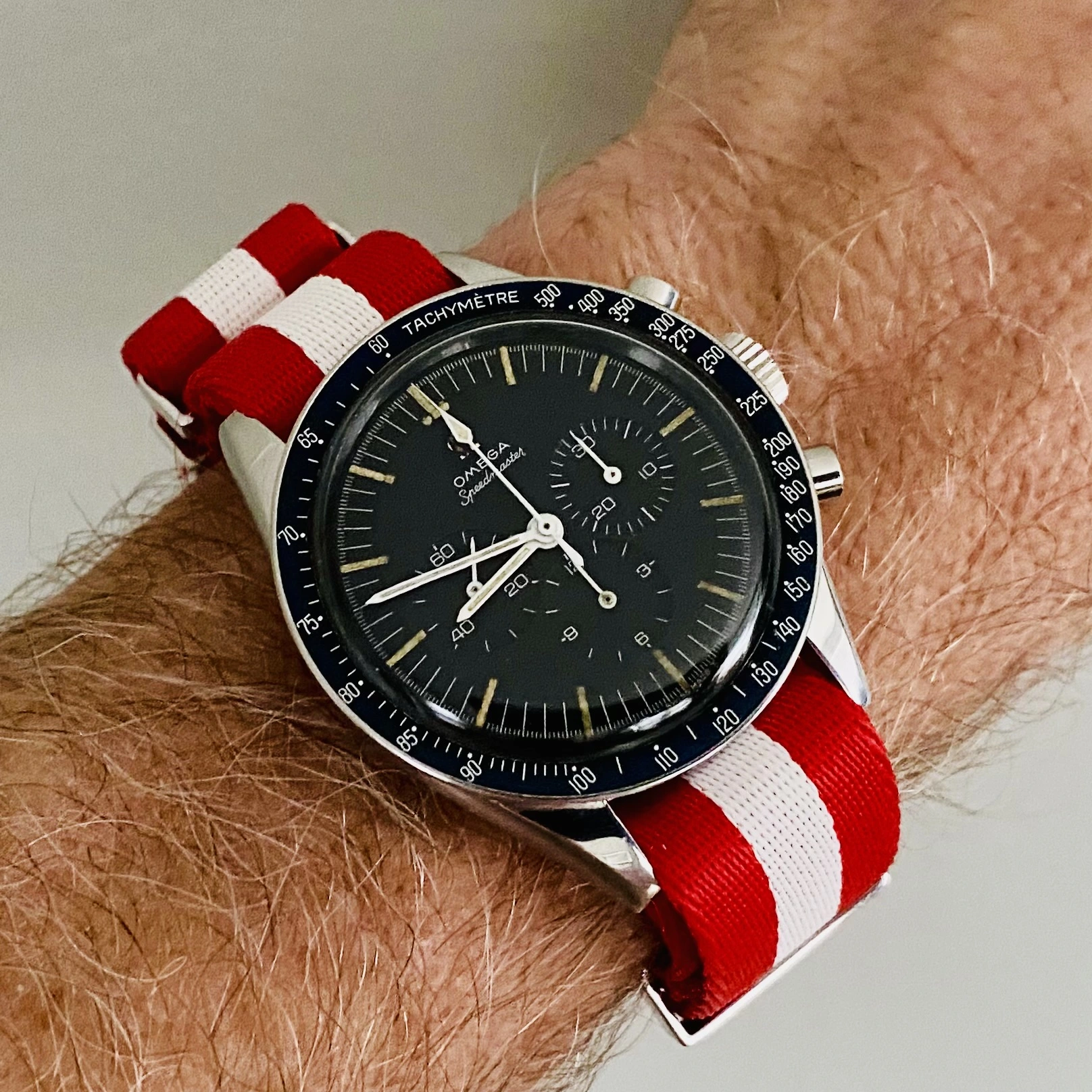 A rare Tuesday. A day on which I just happen to be wearing a Speedmaster (reduced). 175.0033, introduced December 1989, 18-karat rose gold bezel, rose gold sub dials, steel case. Europe only, and for a short time only. I am the second owner, bought pre-owned, in 1991.