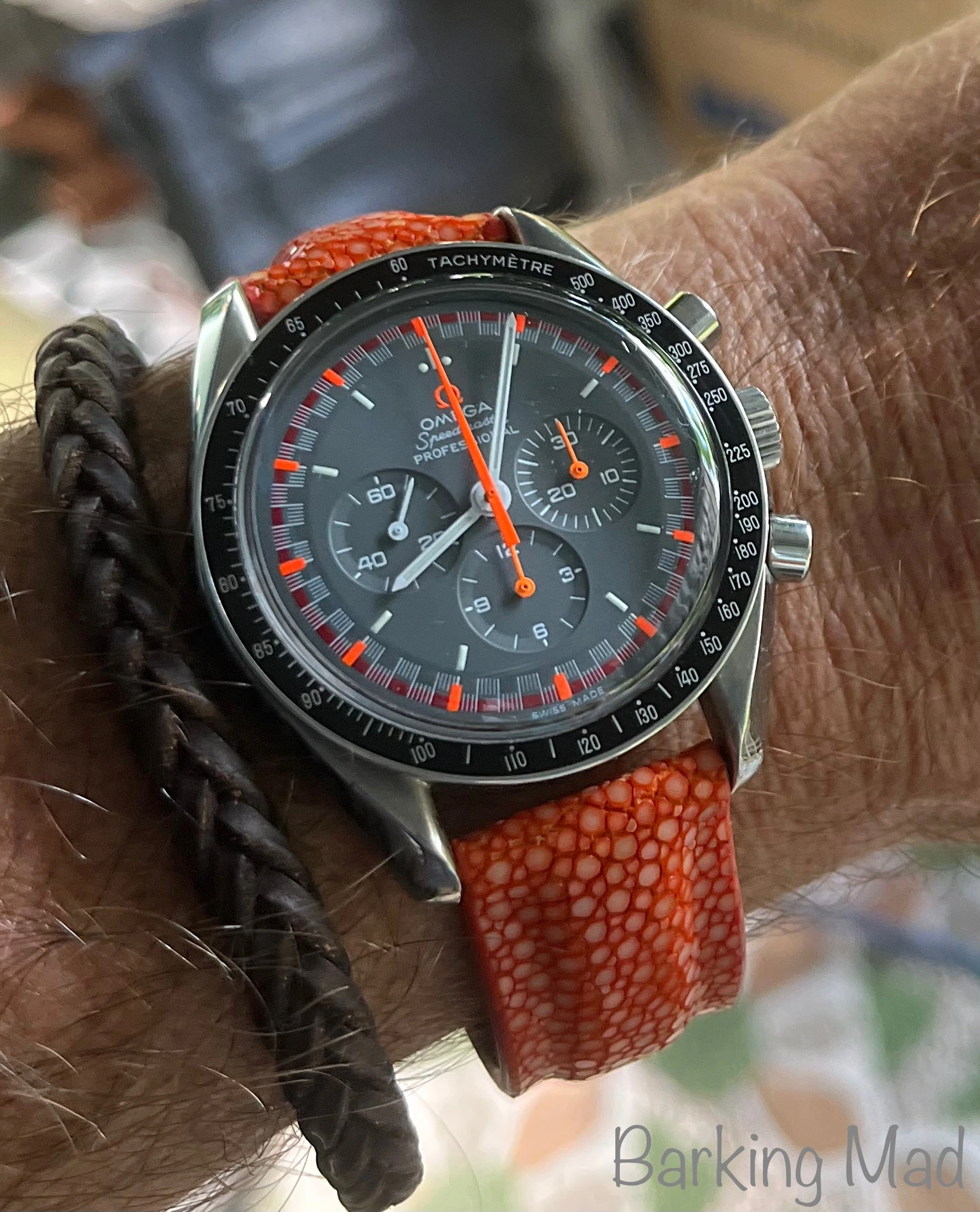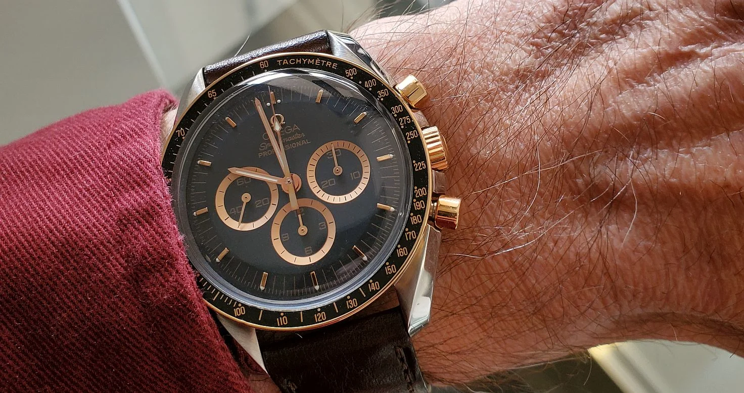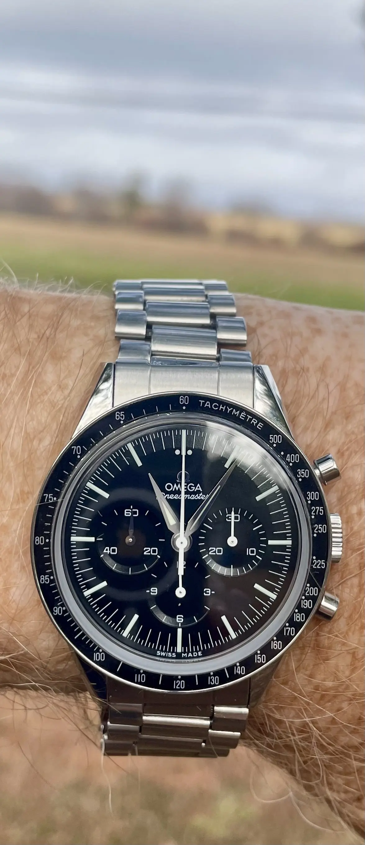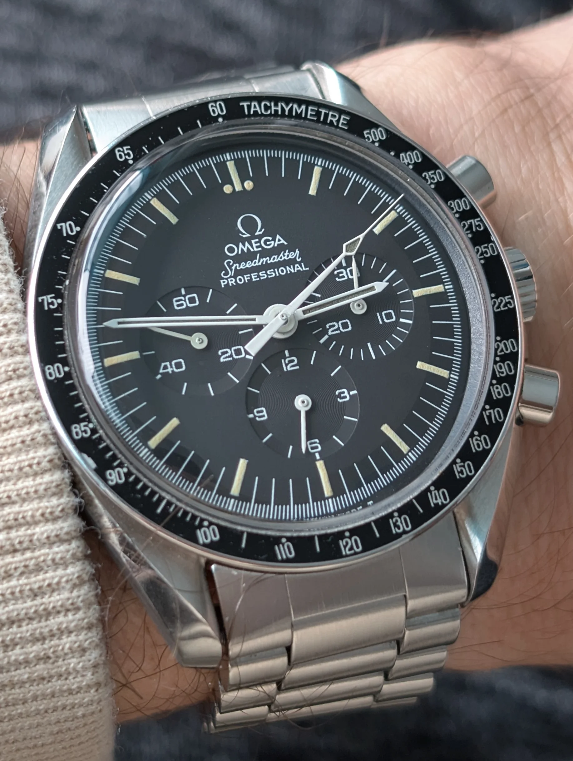 Been waiting for another Speedy Tuesday to post my 105.002-62 after getting some service done. Definitely needed the original crystal with the silver retention ring for that pop and the alpha hand adds to the look. But my A1 crown is still stuck at a Belgium airport! One of the harder wrist shots due to so many reflections.