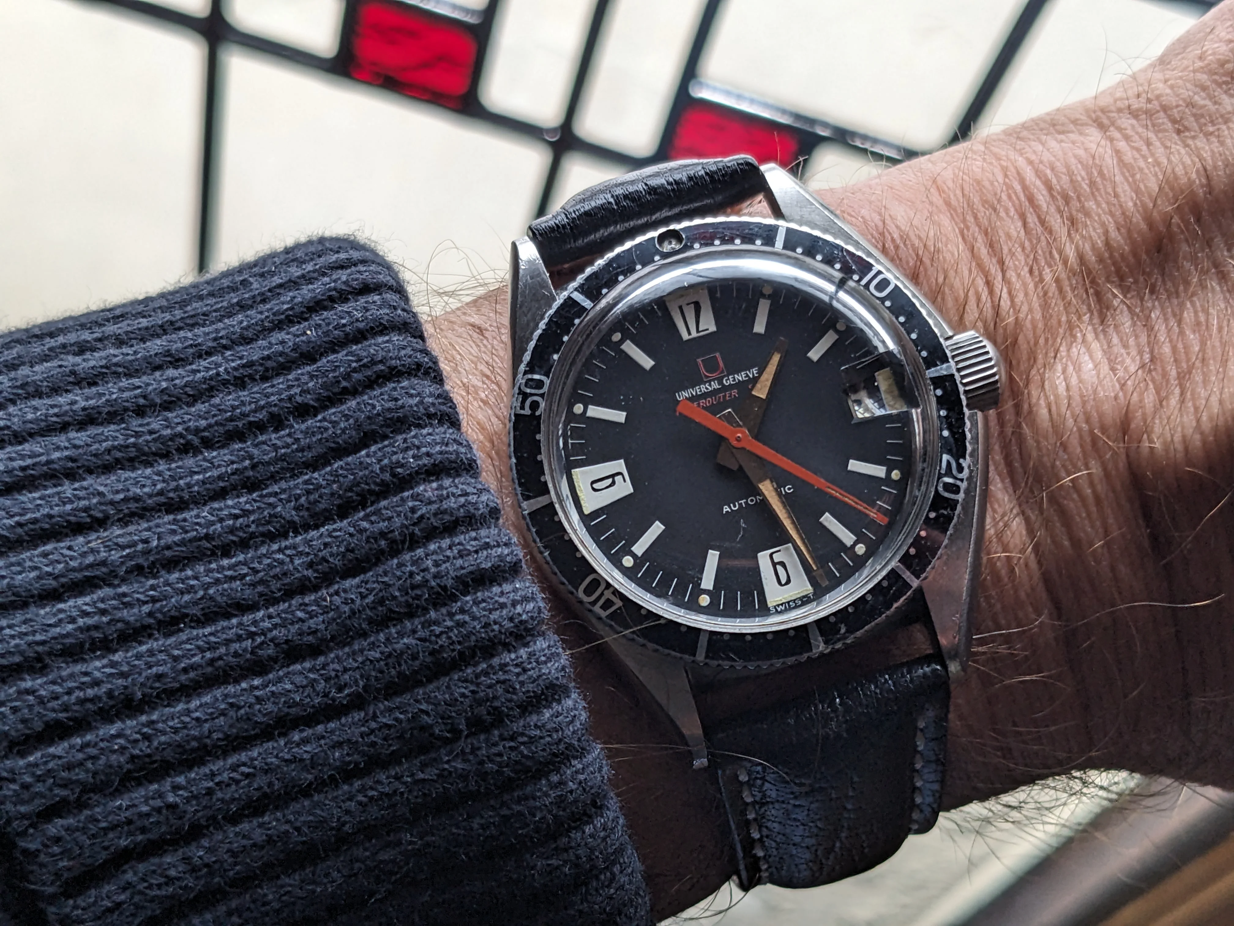 Okay… its a diver with inner bezel. Very cool and rare Vulcain Diver from the 1950s. But I cannot make out what the dial components are for? Decompression charts? Also, does it have an alarm as well?