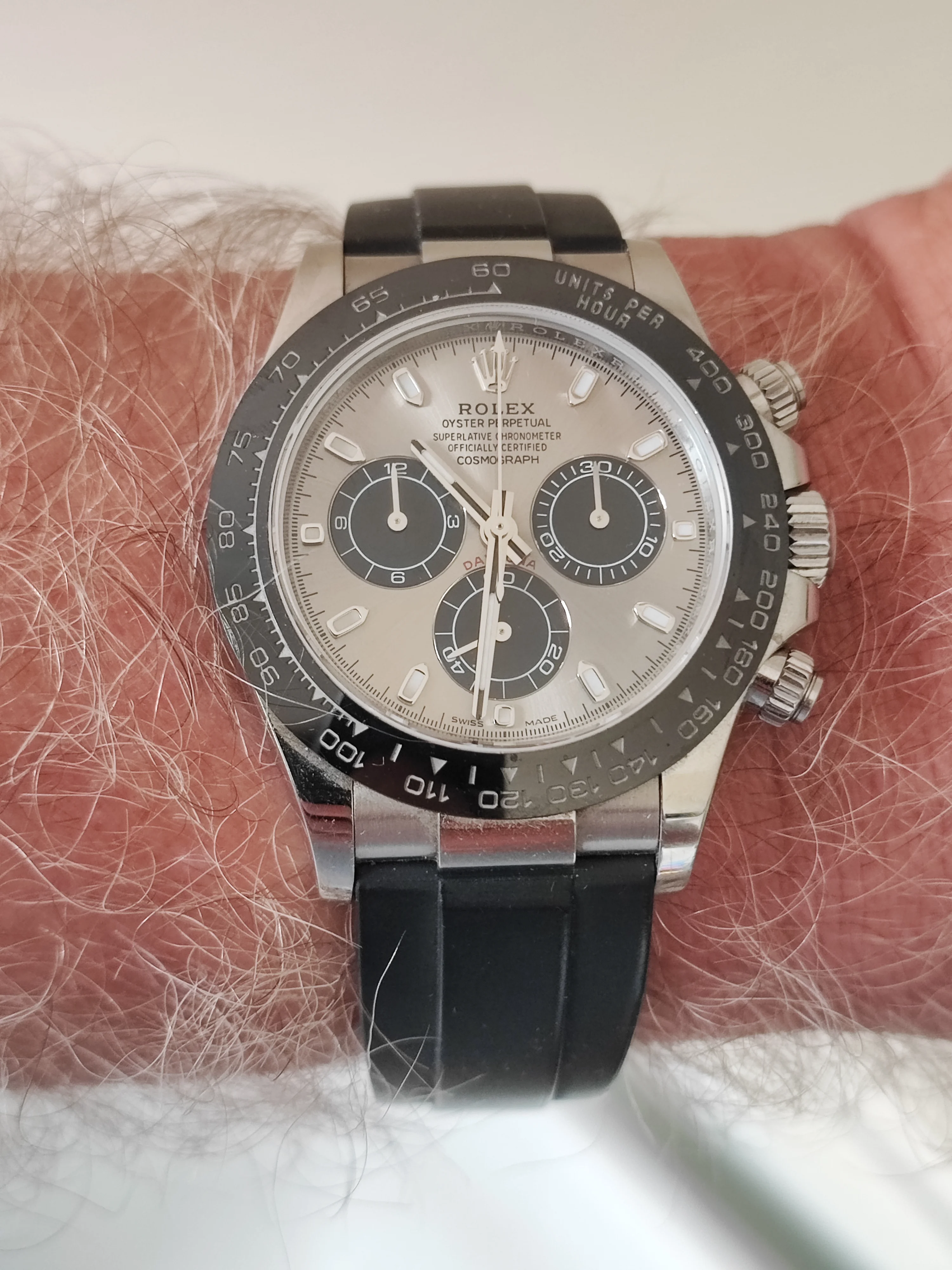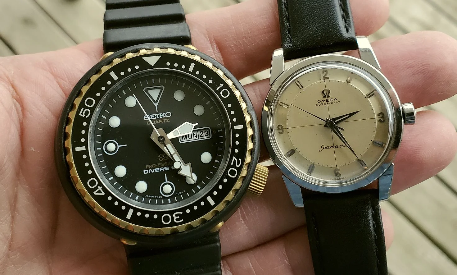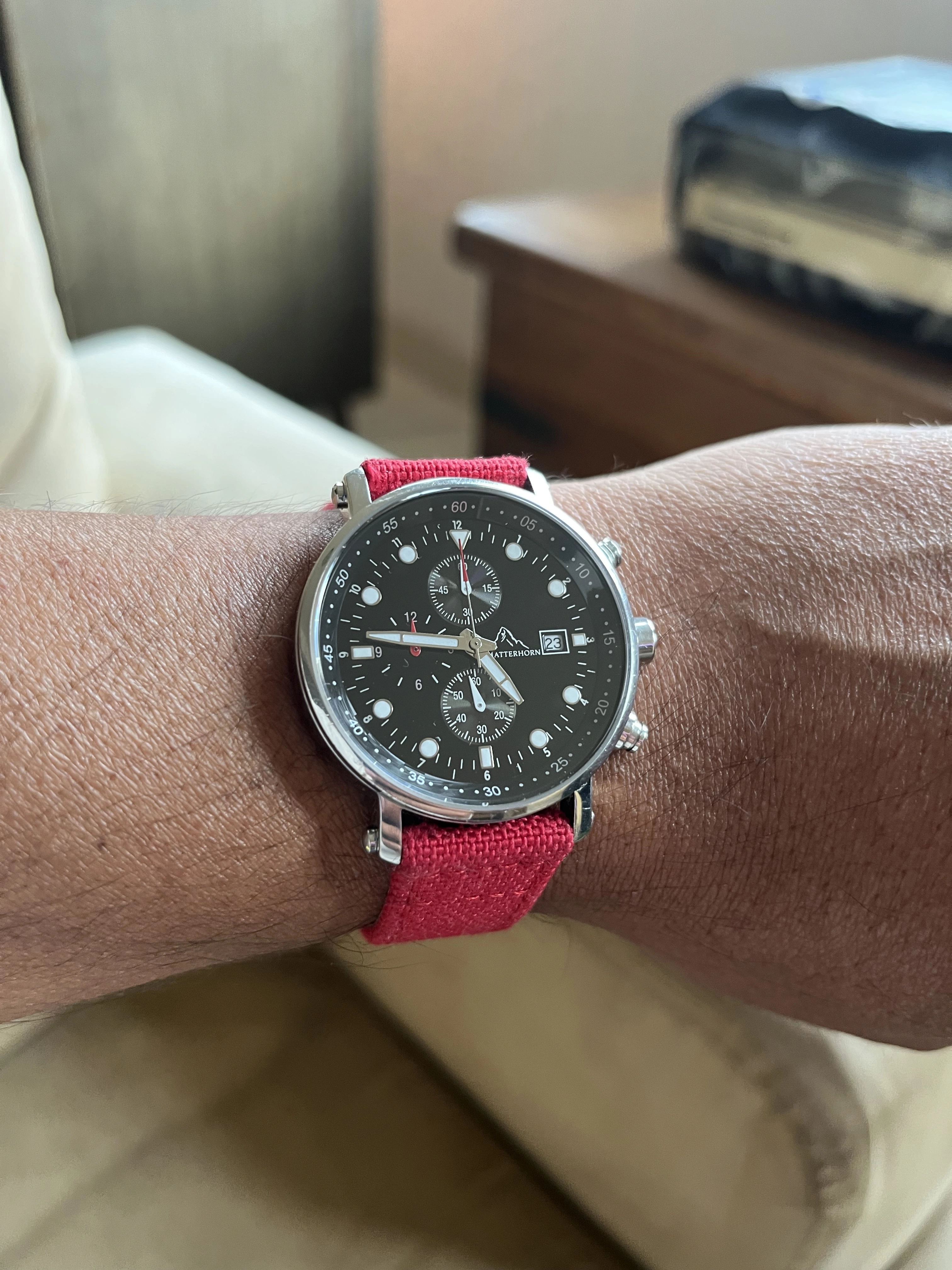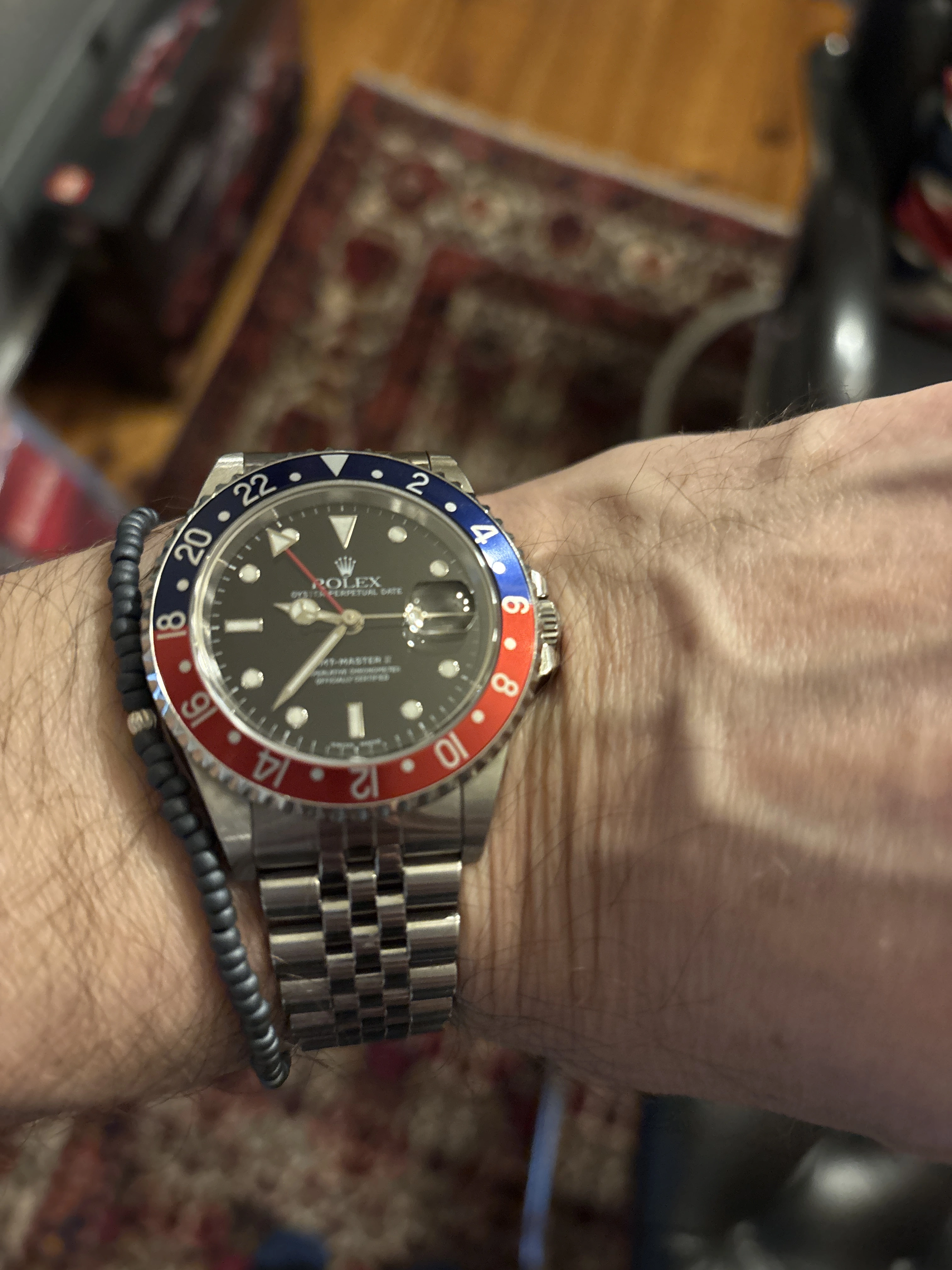 ·Today, and likely until after New Year’s Eve, my 70 year old (approx.) Omega date at 6 bumper automatic with calibre 355 movement. My late father was a watchmaker/jeweller. I inherited the residue from his business which included a lozenge tin with a Dymo label on it, listing the contents as”Omega parts”. He passed away almost 50 years ago. I rarely opened that tin, but about 5 years ago, I was looking for a centre wheel for a bumper automatic, for a friend. I had the one he needed in that tin, but I also discovered this dial! Further delving resulted in my finding the entire calibre 355 movement (but no case), in pieces, in that tin! I serviced it, and put it aside. I later was contacted by a chap in Madrid, Spain, (thanks again @Tritium), who sold me the case the movement is now in. Don’t ask for dibs on this one. @Tritium owns dibs on this treasure!