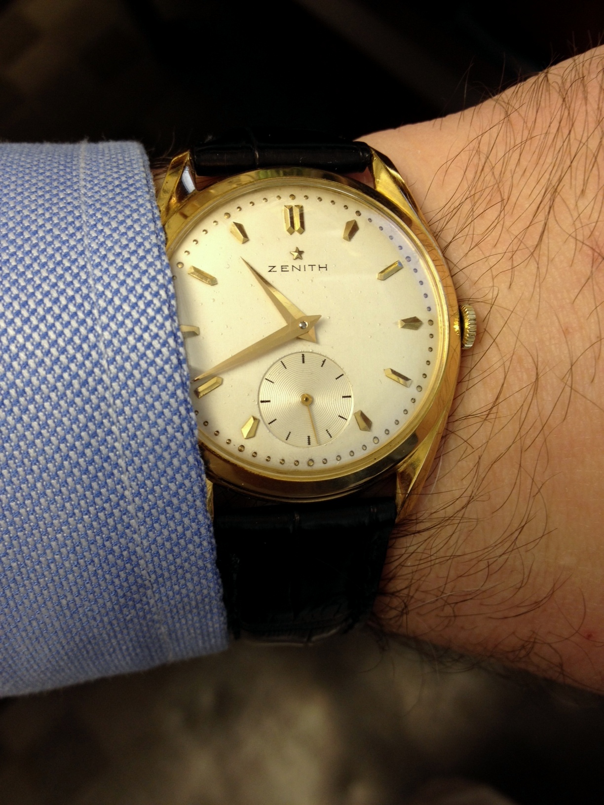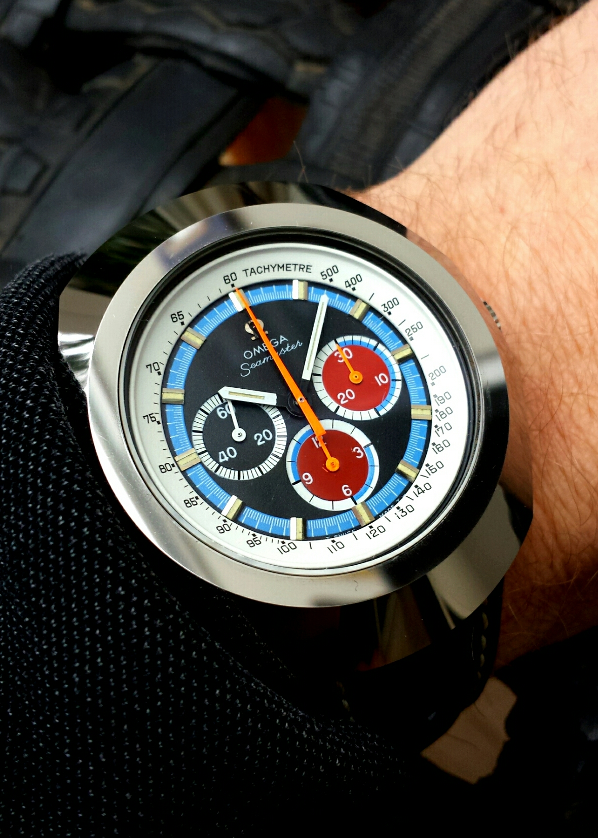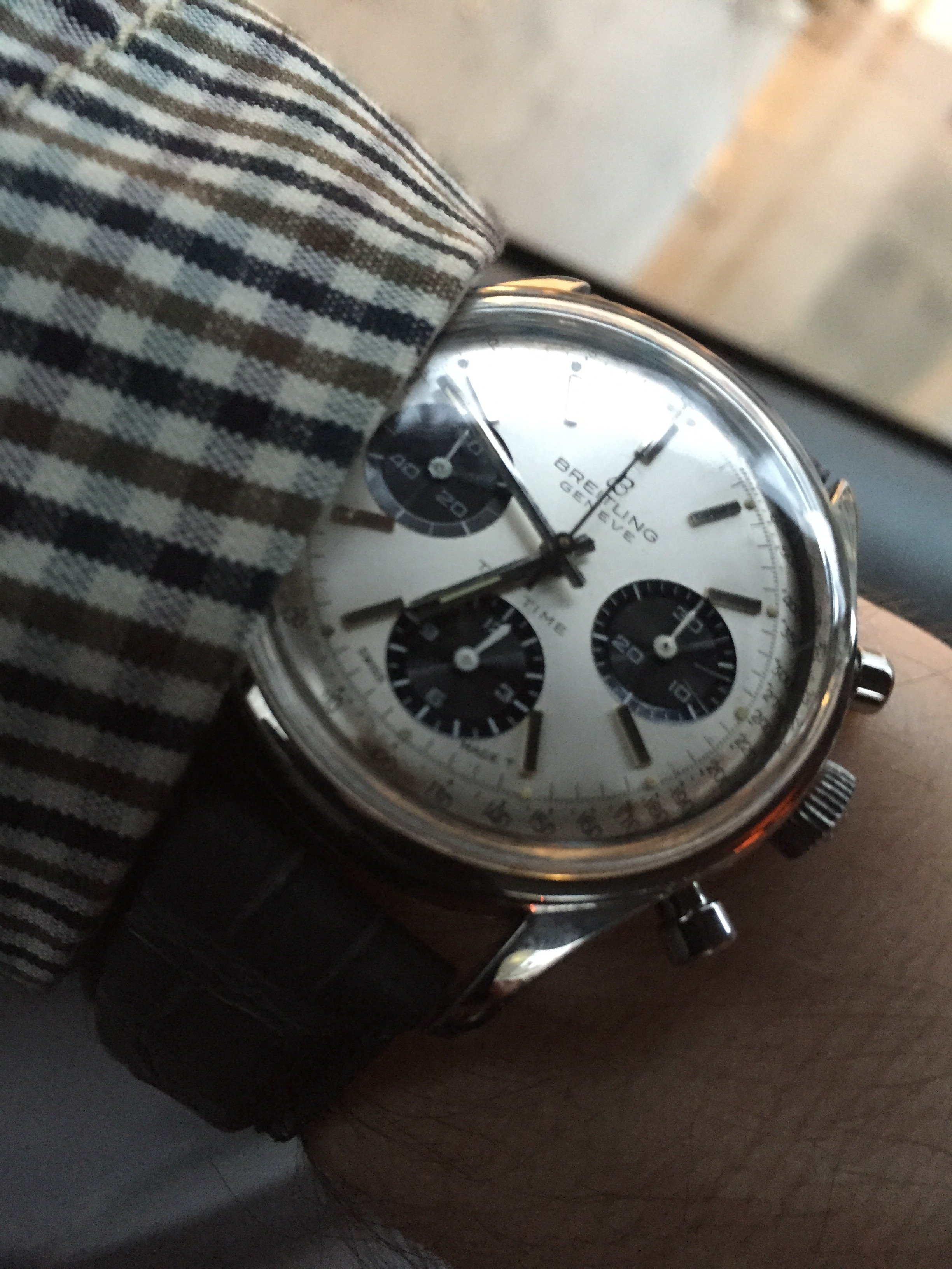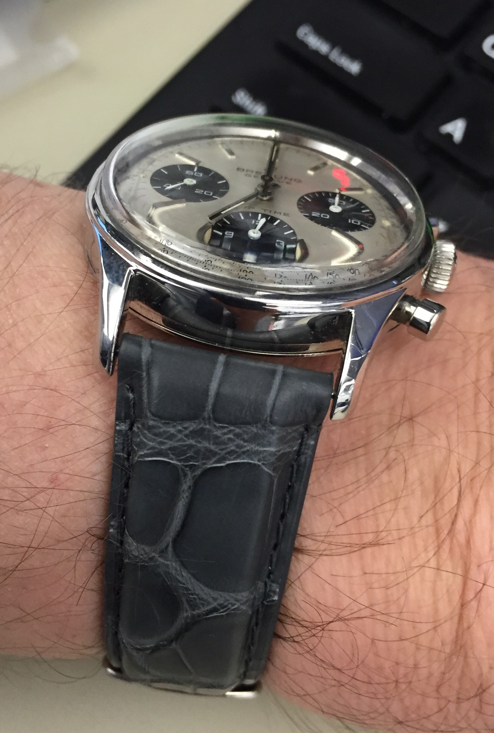 Wore it today again but left it at my watchmaker in the afternoon. Service of the movement and at last that chrono hand will be straightened. It has really bugged me (I know...).