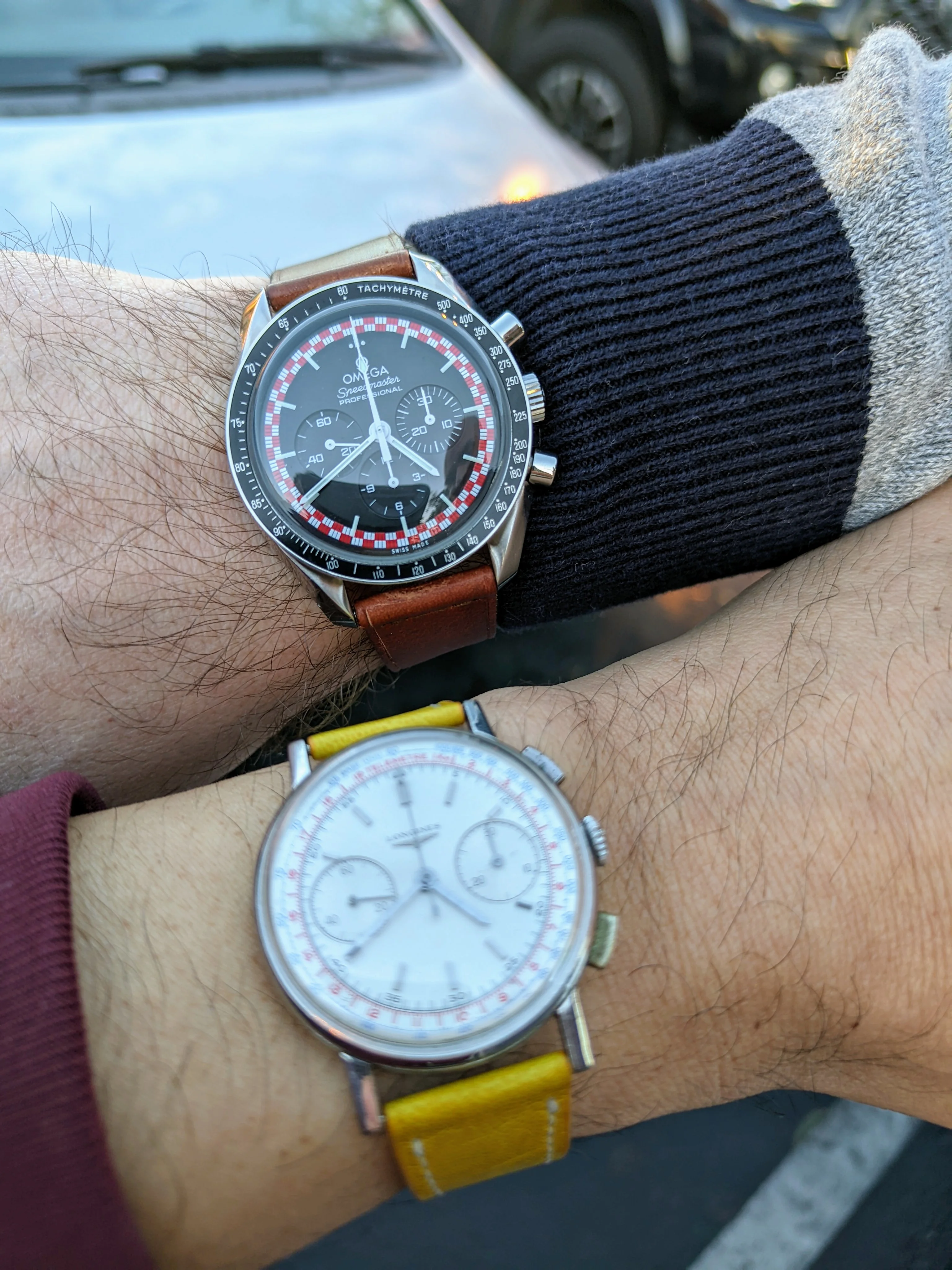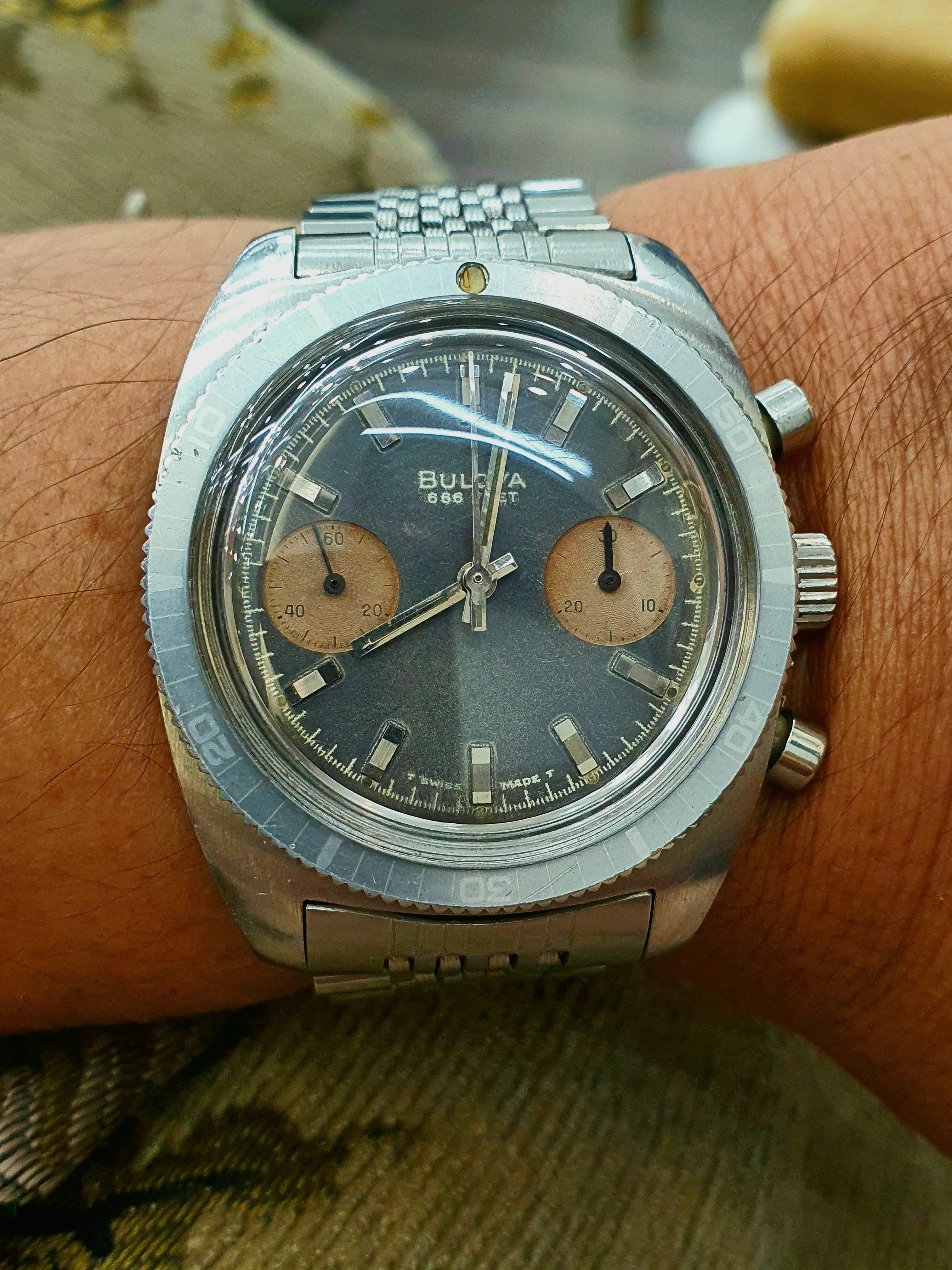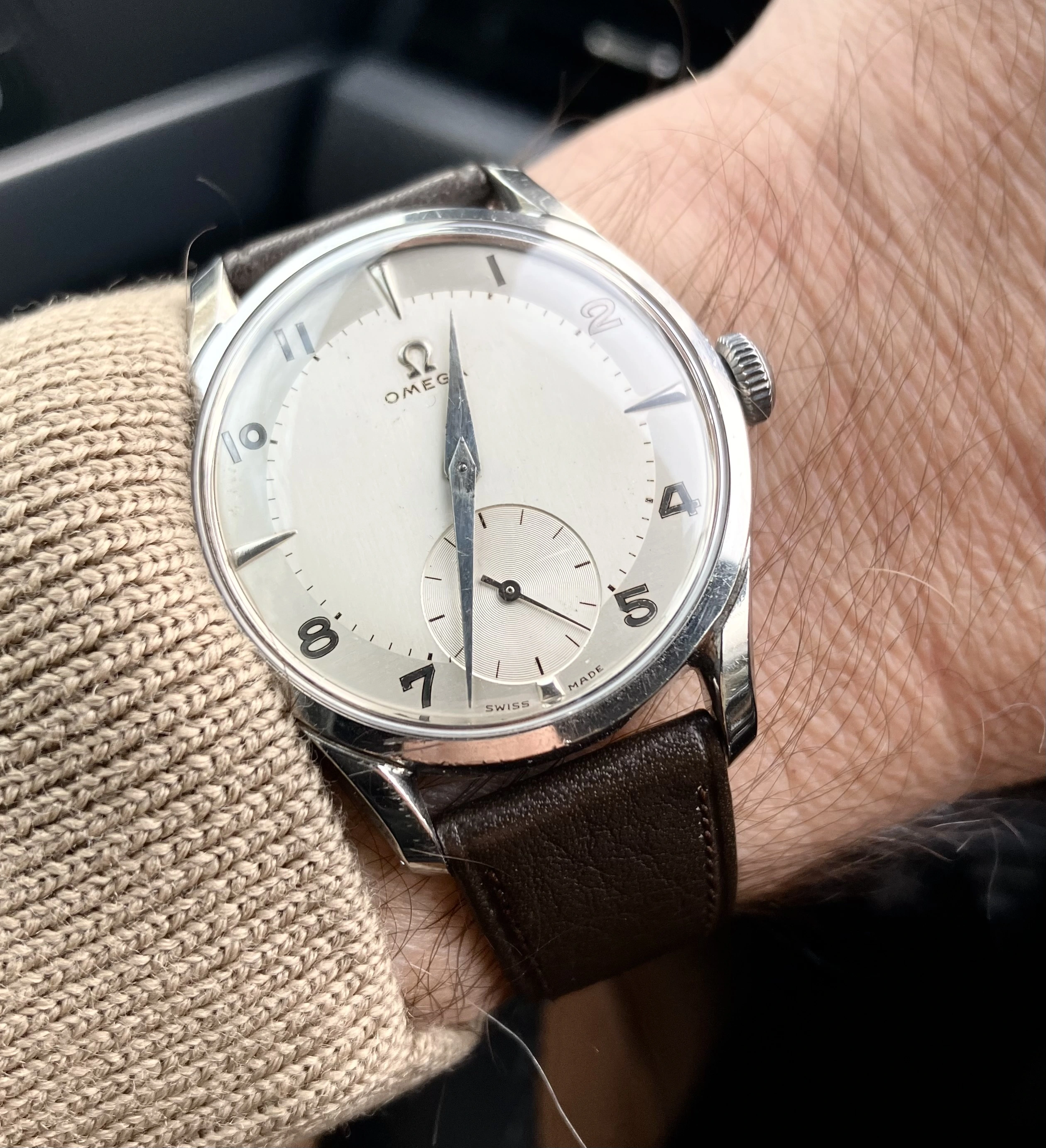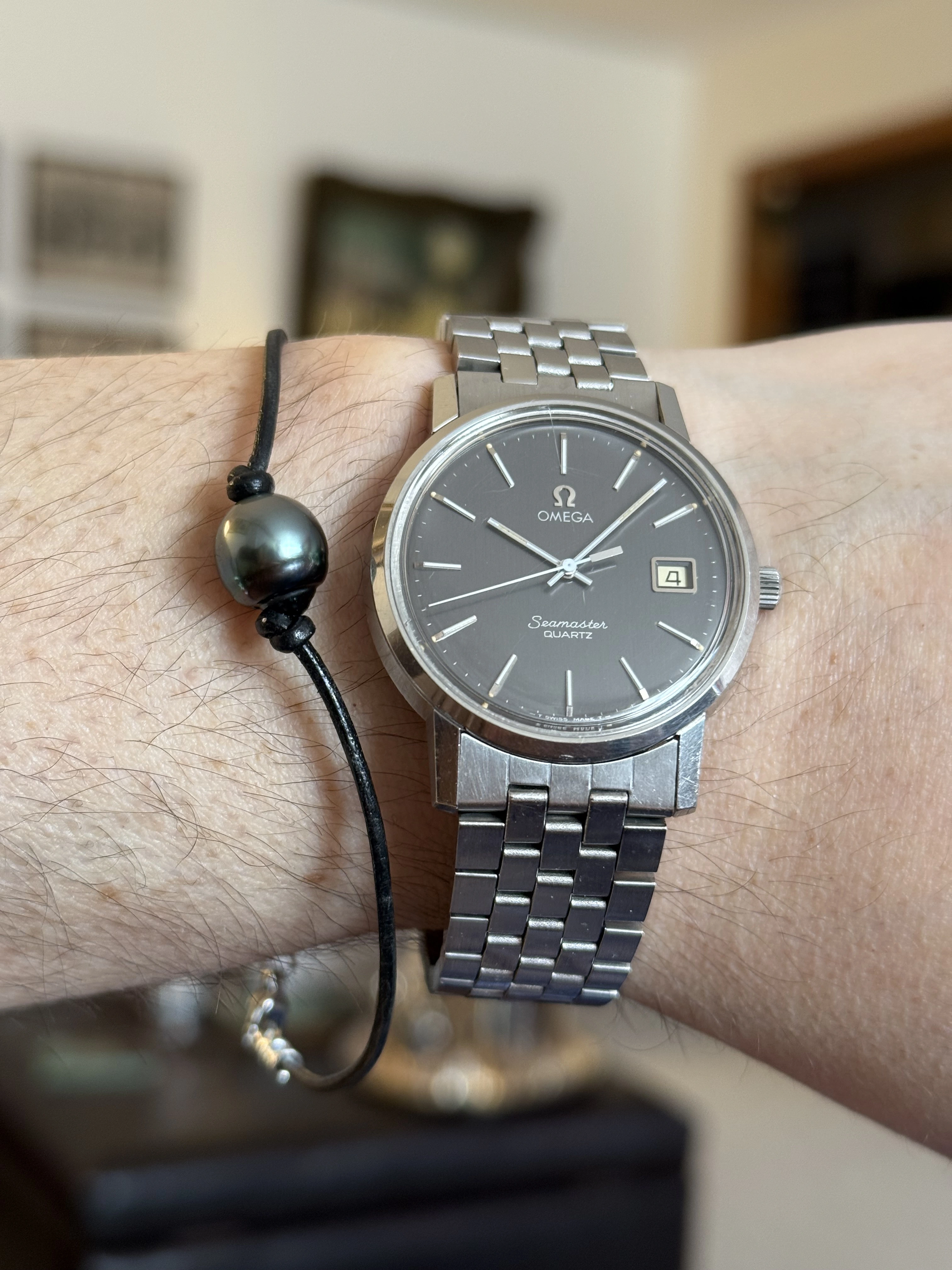 On the wrist since Dec. 16, my 35-year old Rolex Date-Just, one owner (me) with the calibre 3135 movement in it. My all time favourite Roman numbered dial with applied markers. 35 seconds fast in 19 days, so within one minute per month. Still wearing my Seamaster bumper automatic, date at 6 with calibre 355 movement, pristine hobnail dial, about 70 years old, and functioning flawlessly.