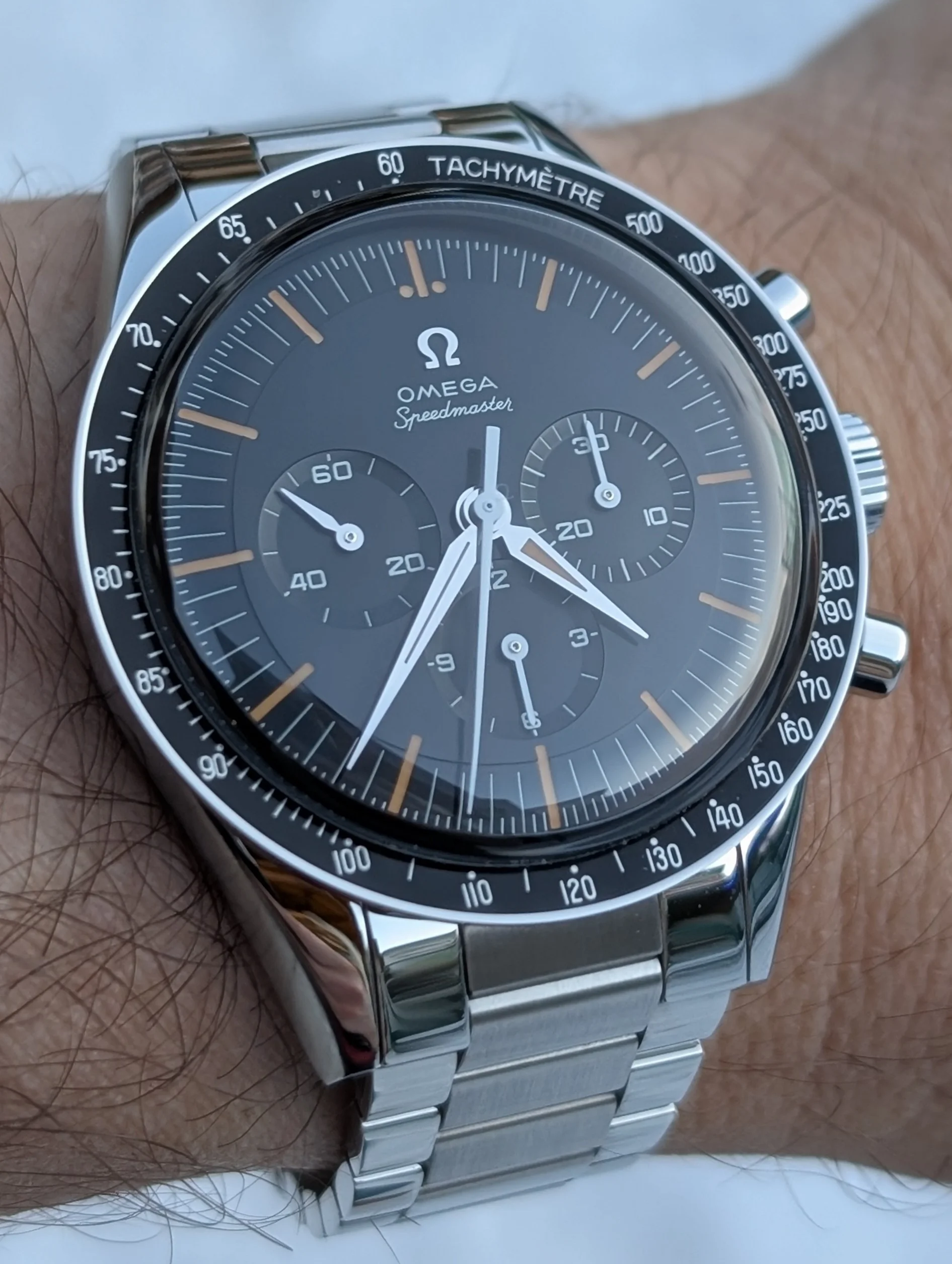 Posts 1,802 Likes 10,156 ras47 路Jan 4, 2025 Big 'ol 44.25mm Coaxial Speedmaster for automatic winding.