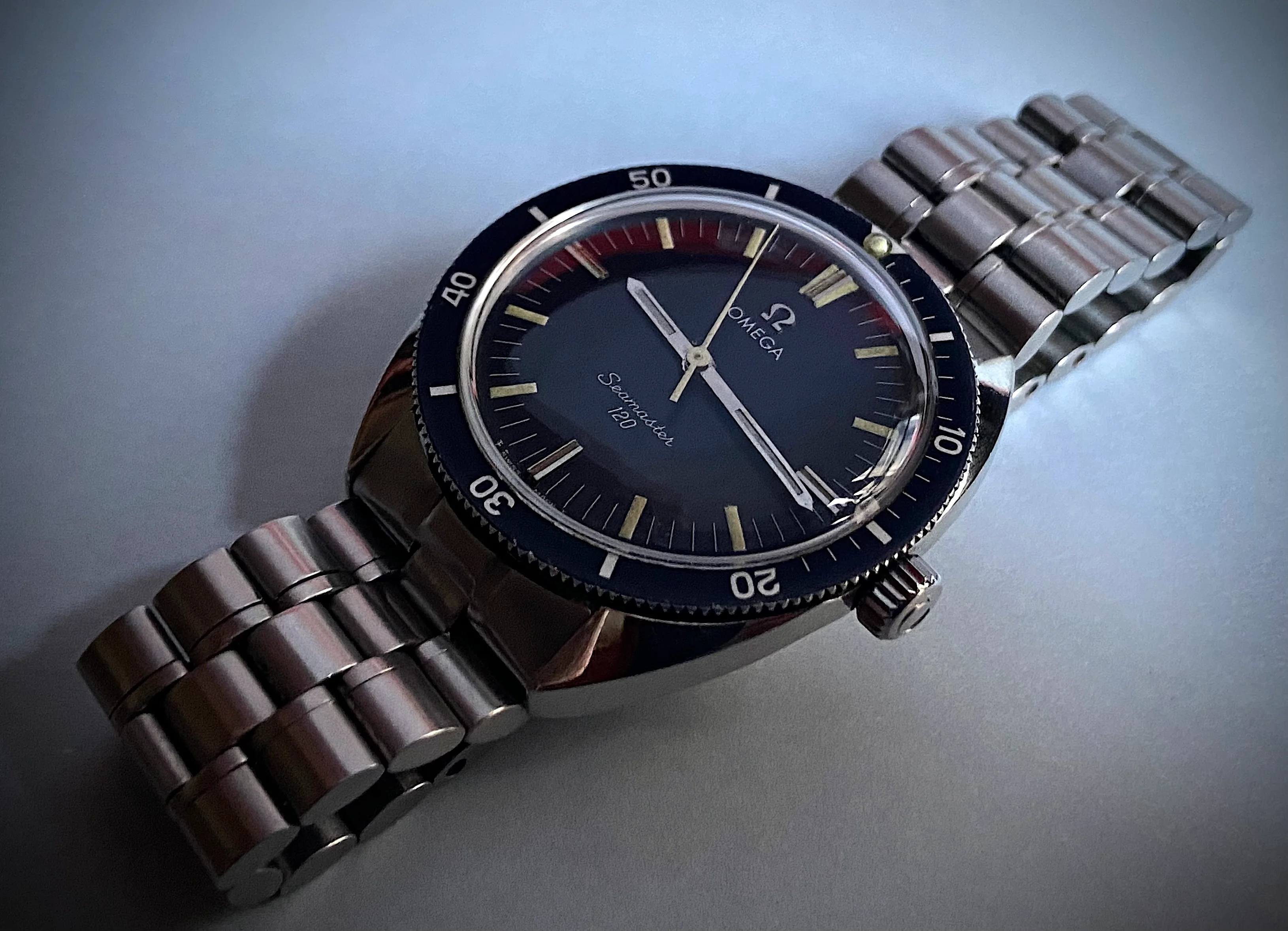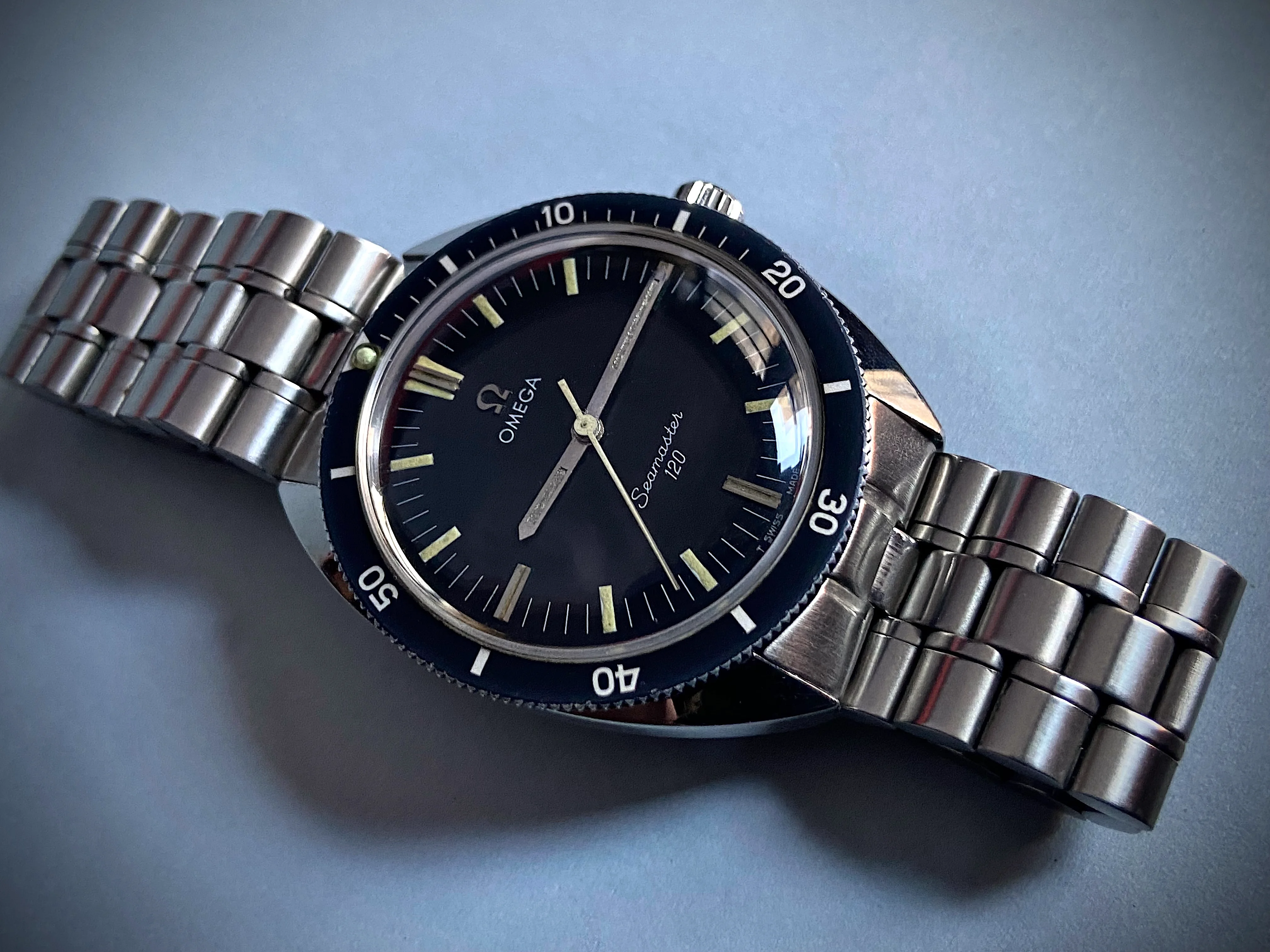 Posts 3,445 Likes 17,524 hmmmcamu 路Jan 12, 2025 1967 OMEGA Seamaster 120 cal. 601 mvmnt., case ref.# 135.027 on ST-1098 SS bracelet with 19MM ref.#547 ends chemically stamped / engraved case back Edited: Jan 13, 2025