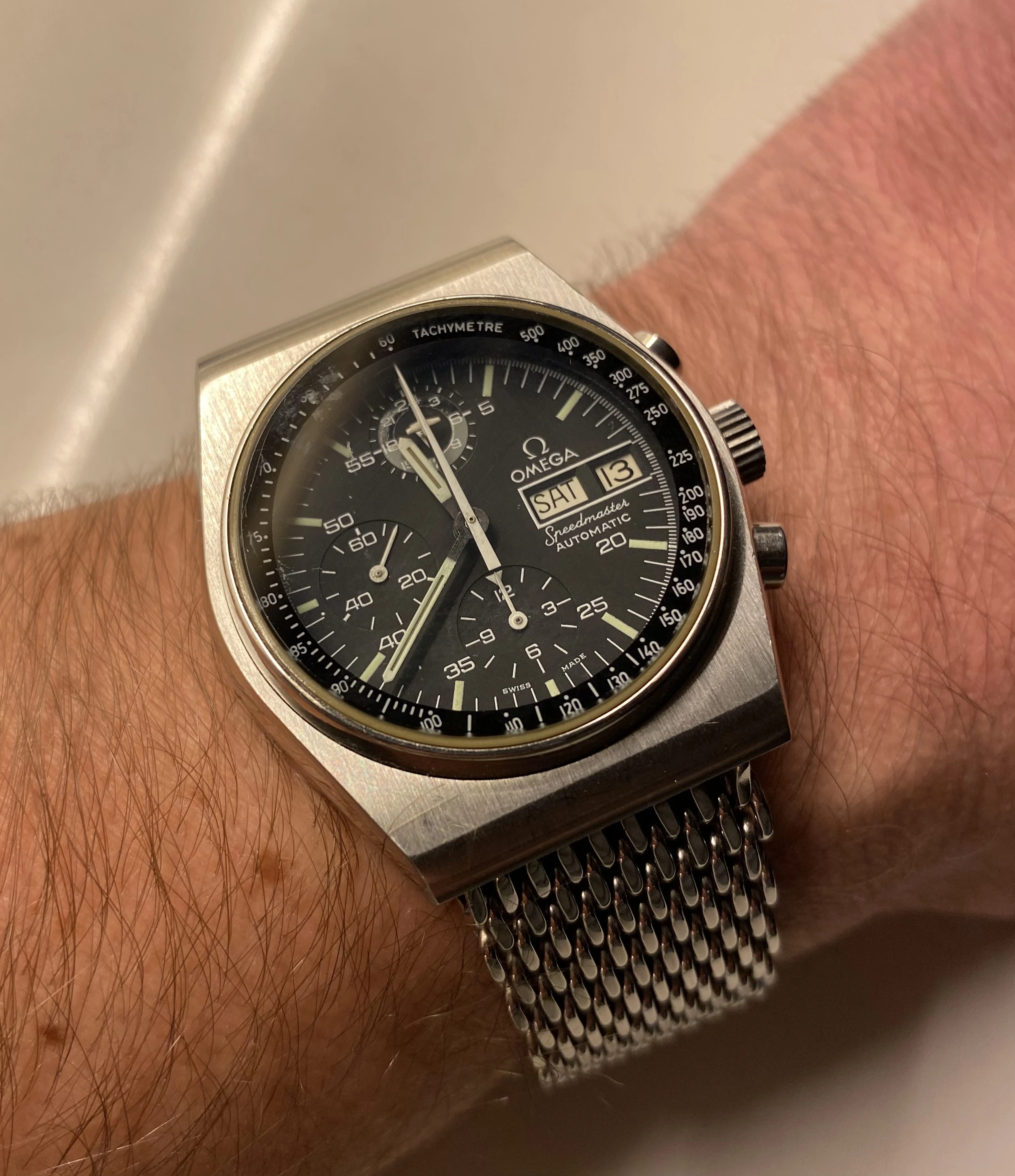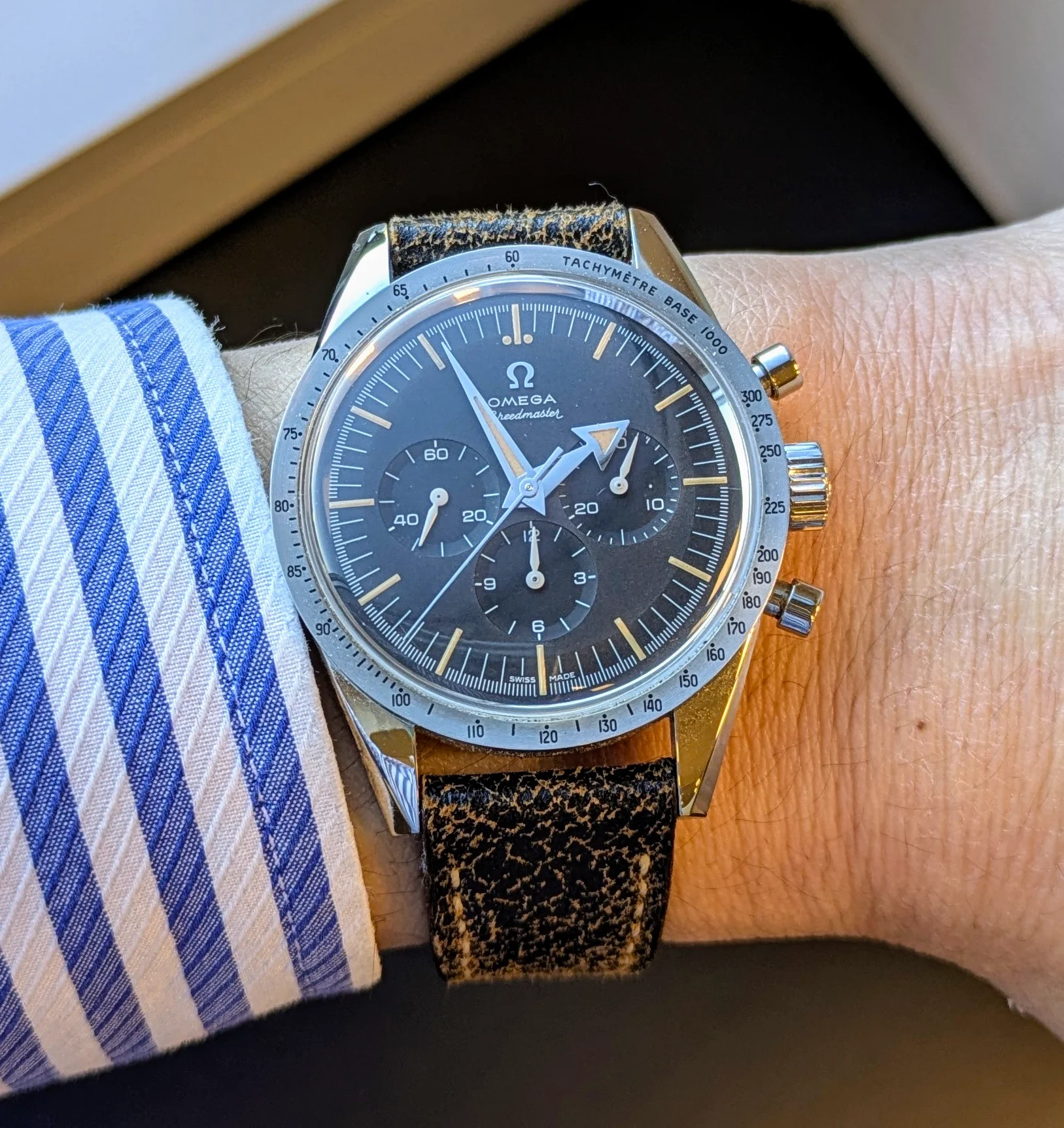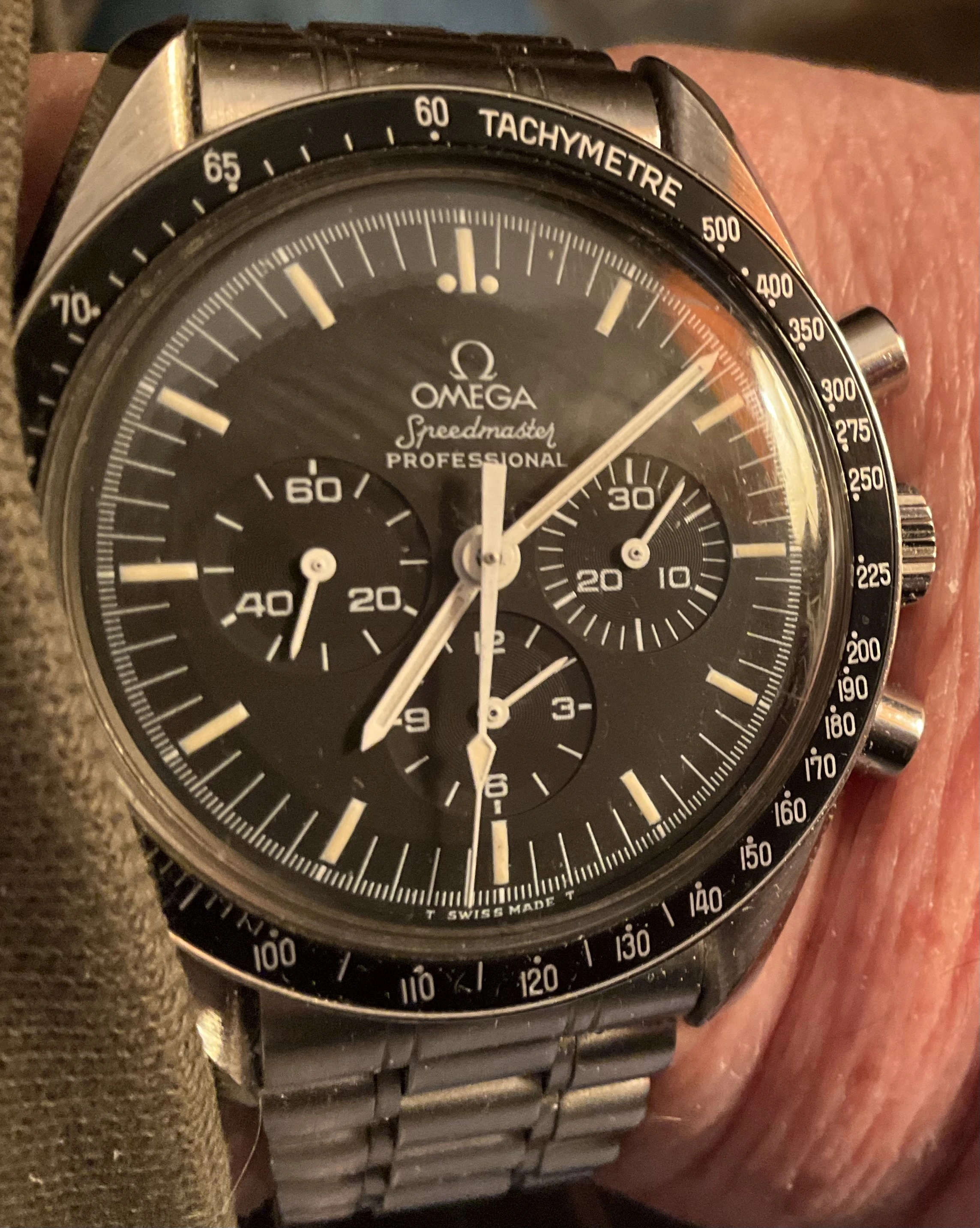 Several threads have popped up recently in which erratic timekeeping of a number of Speedmasters have been discussed. I haven鈥檛 worn my Speedmaster for several months. So I decided I would dig it out and set it, and see how it performs in comparison. It has the gold plated calibre 853 movement in it, and it is 34 years old. I serviced it myself about one year ago. Model 345.0808. I don鈥檛 obsess with timing machine results. I just put it on and wear it. It is usually within about 30 seconds a week.