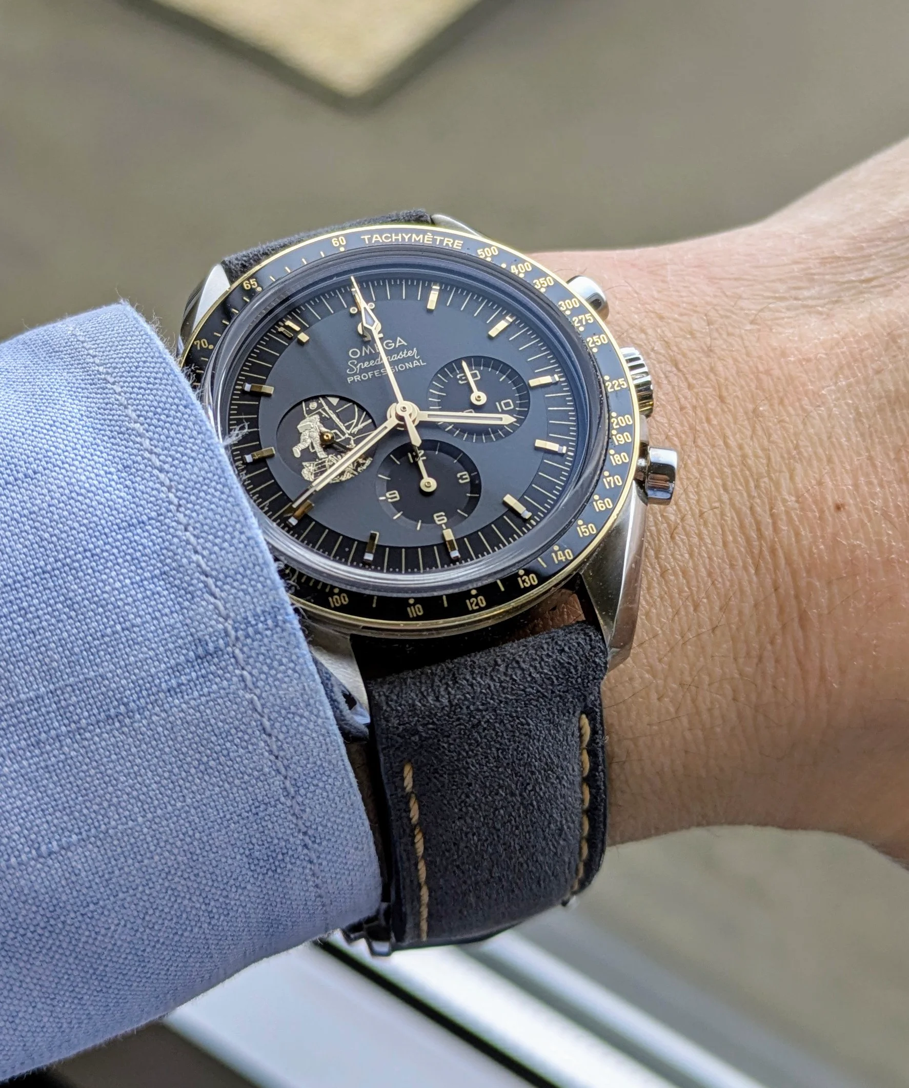 Posts 2,022 Likes 8,846 bsowers34 ·Jan 15, 2025 I figured with all the conversations about speedmaster thickness I would show you the sides of this chunk. Still comfortable and you can see how small my wrist is. Edited: Jan 15, 2025