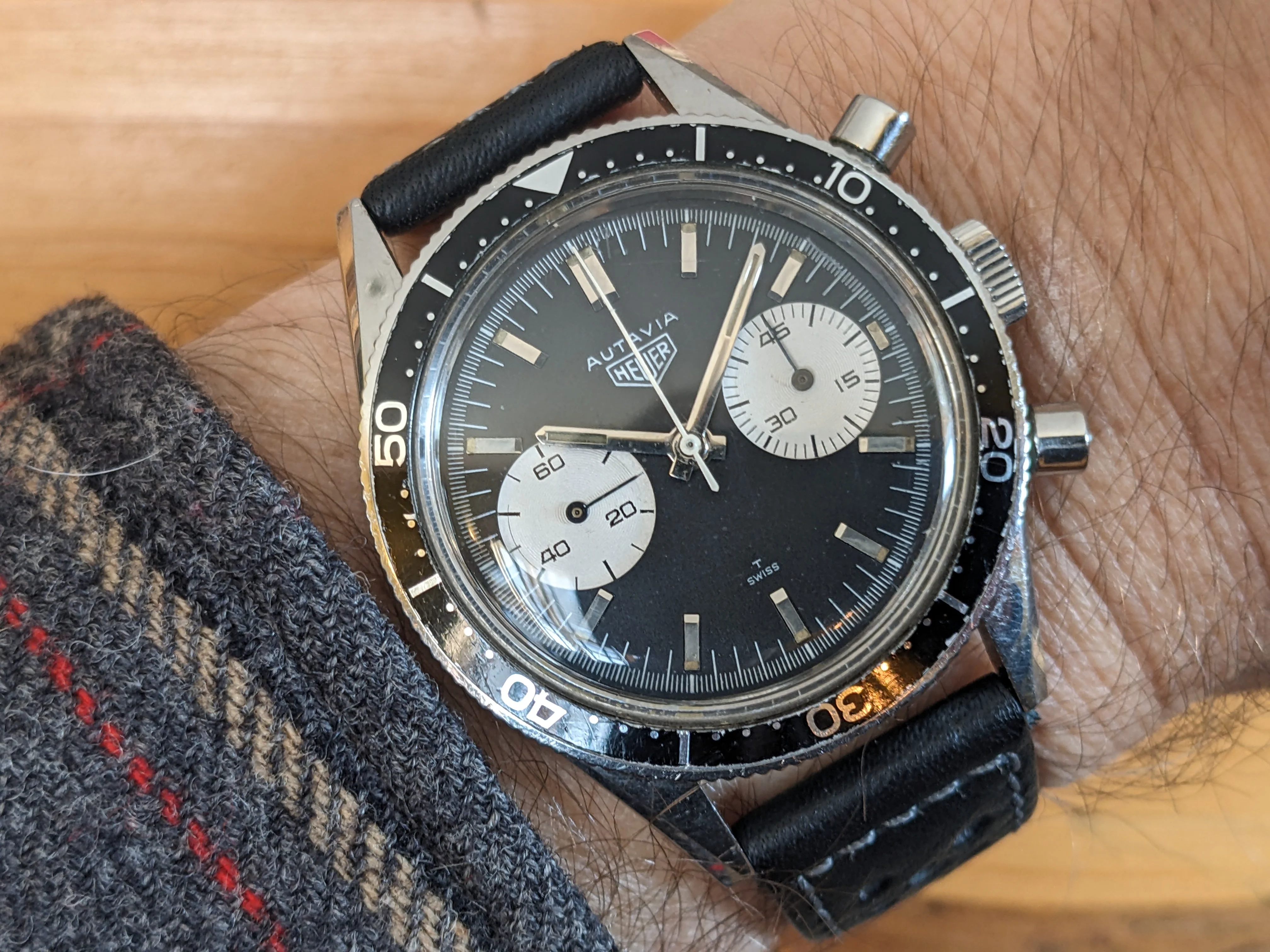 Posts 3,211 Likes 33,403 Duracuir1 ·Jan 20, 2025·Never Used A Kodak Visit from an old friend who was wearing a strap that I made several years ago. I am still wearing the flightmaster. Cold day… Edited: Jan 20, 2025