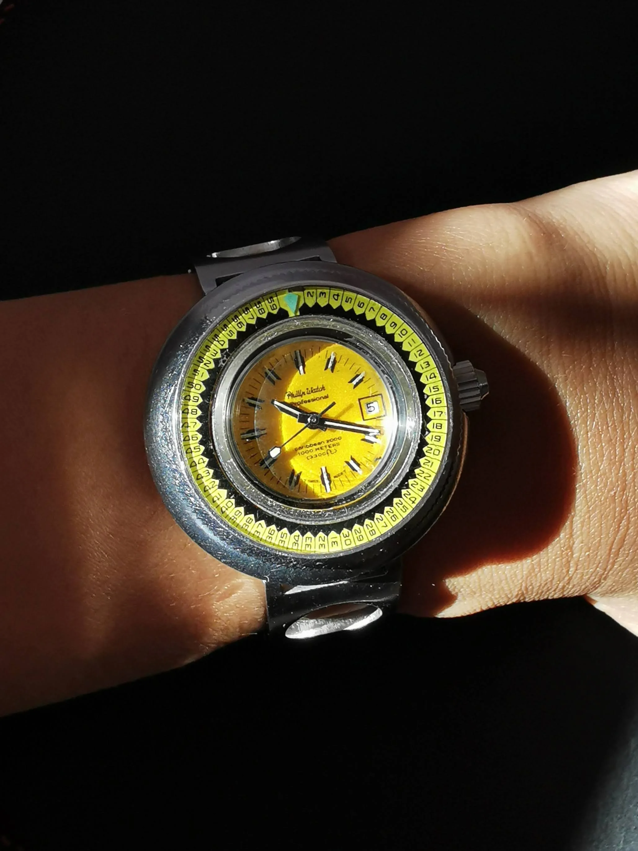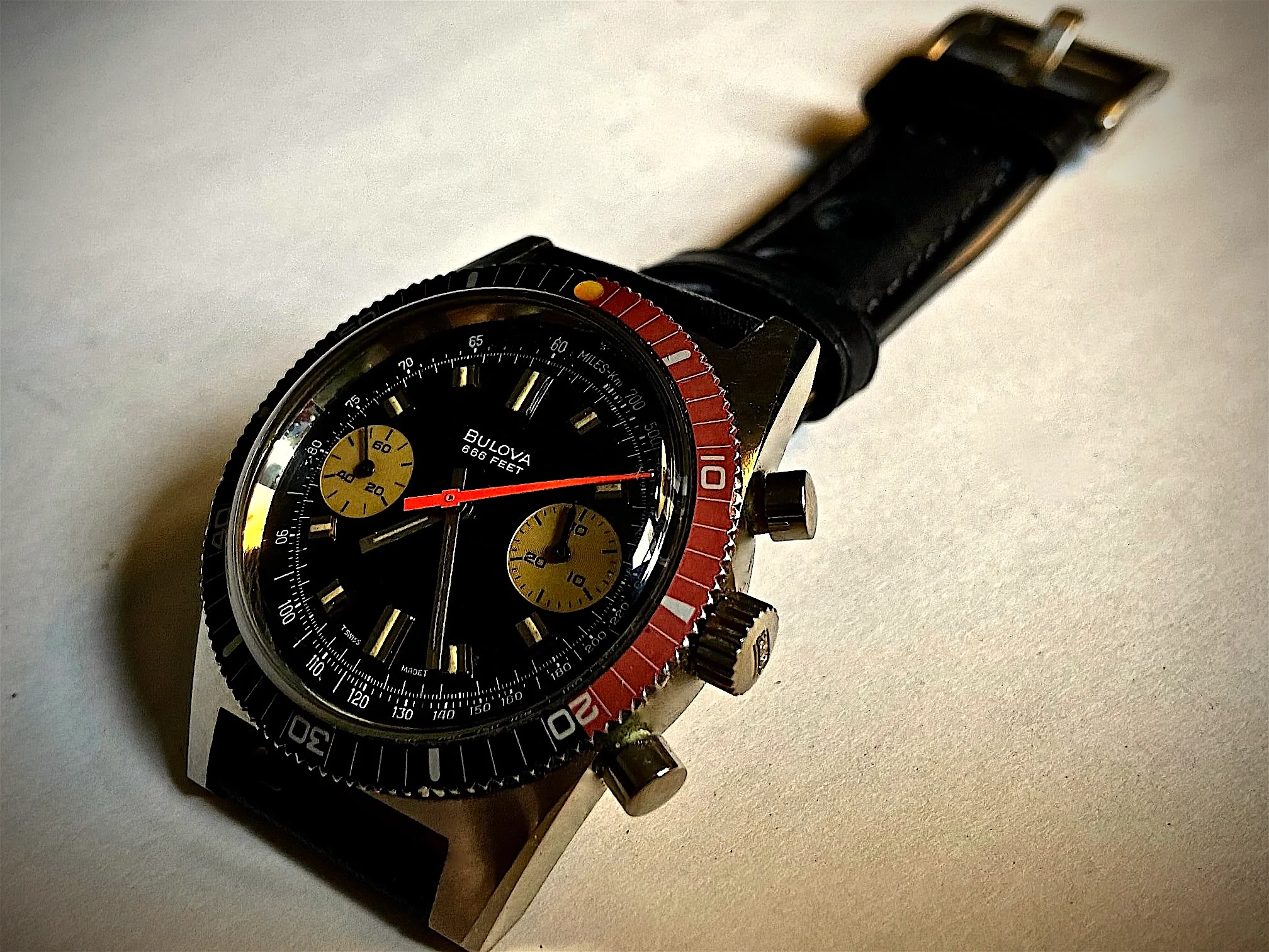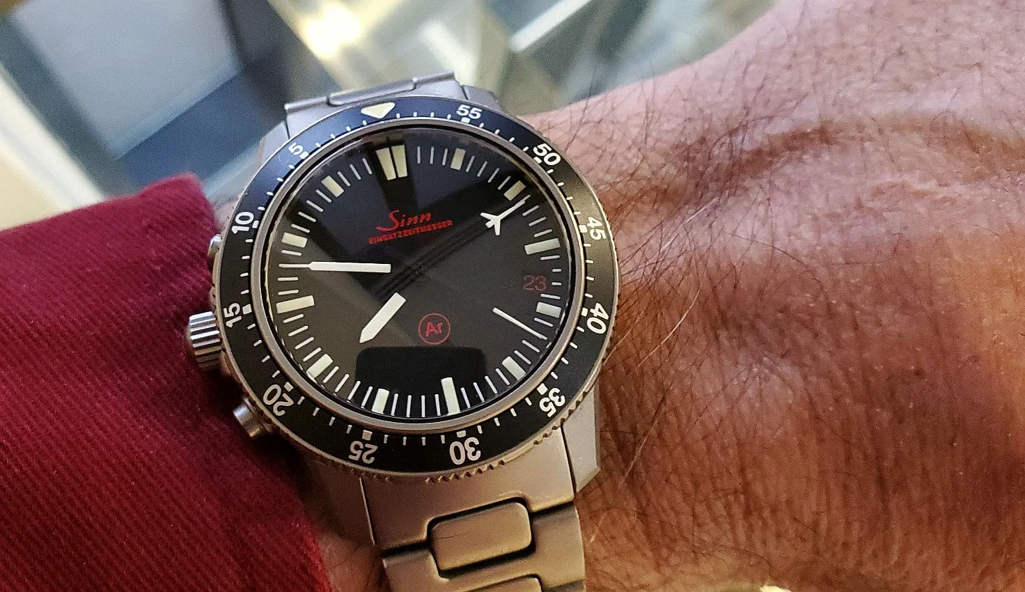 Anticipating a Texas "Norther" forecast for the region (otherwise hyped as a "Polar Vortex" by media), I replaced a cover over a hydrant after preparing a heated water bowl for backyard birdies. During the effort, the watch had oriented itself on the outside of my left wrist because I was wearing it loosely. The crystal snagged cruelly against the brickwork while adjusting the hydrant cover, resulting in a dreadful scuff with a deep scratch.