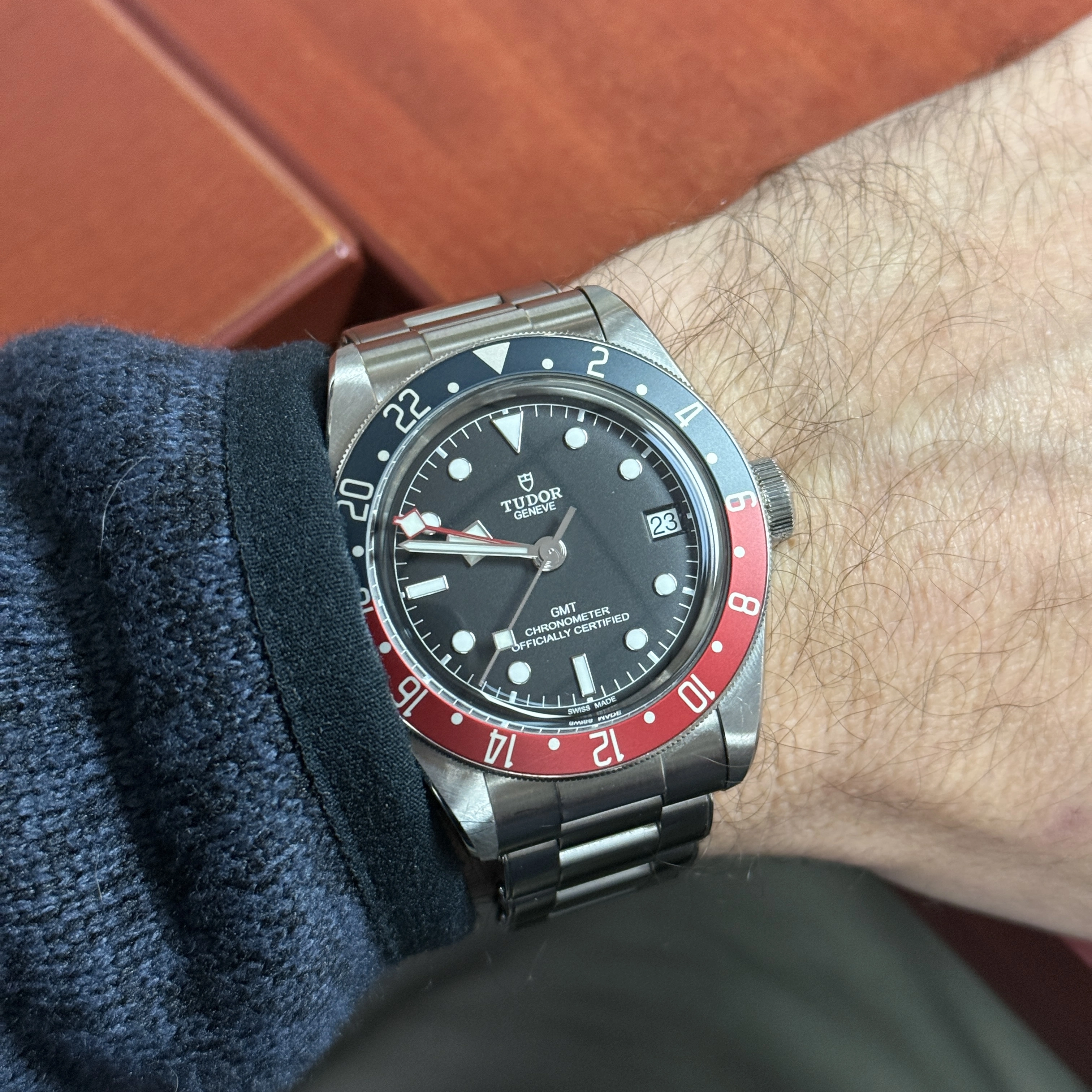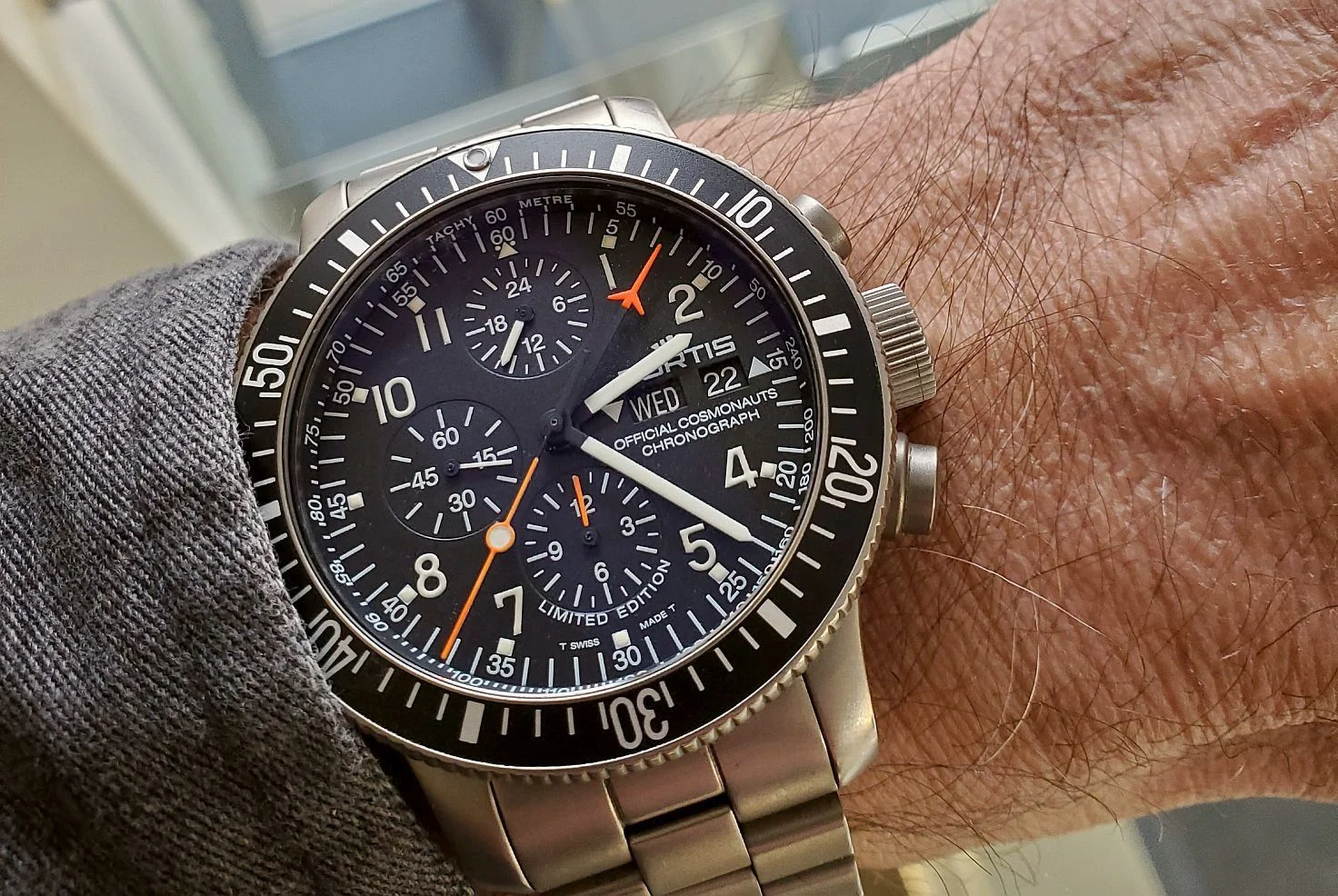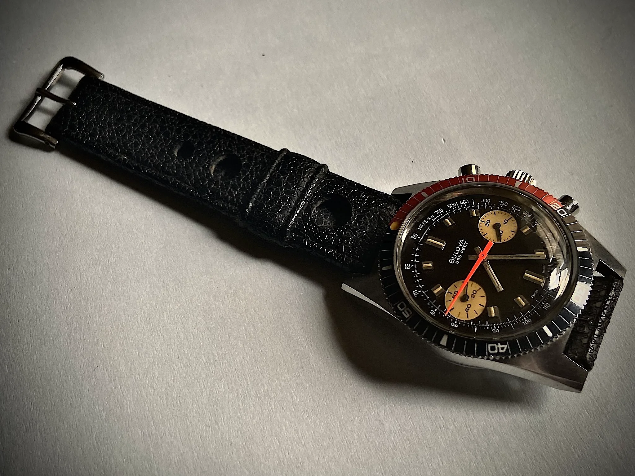 Anticipating a Texas "Norther" forecast for the region (otherwise hyped as a "Polar Vortex" by media), I replaced a cover over a hydrant after preparing a heated water bowl for backyard birdies. During the effort, the watch had oriented itself on the outside of my left wrist because I was wearing it loosely. The crystal snagged cruelly against the brickwork while adjusting the hydrant cover, resulting in a dreadful scuff with a deep scratch.