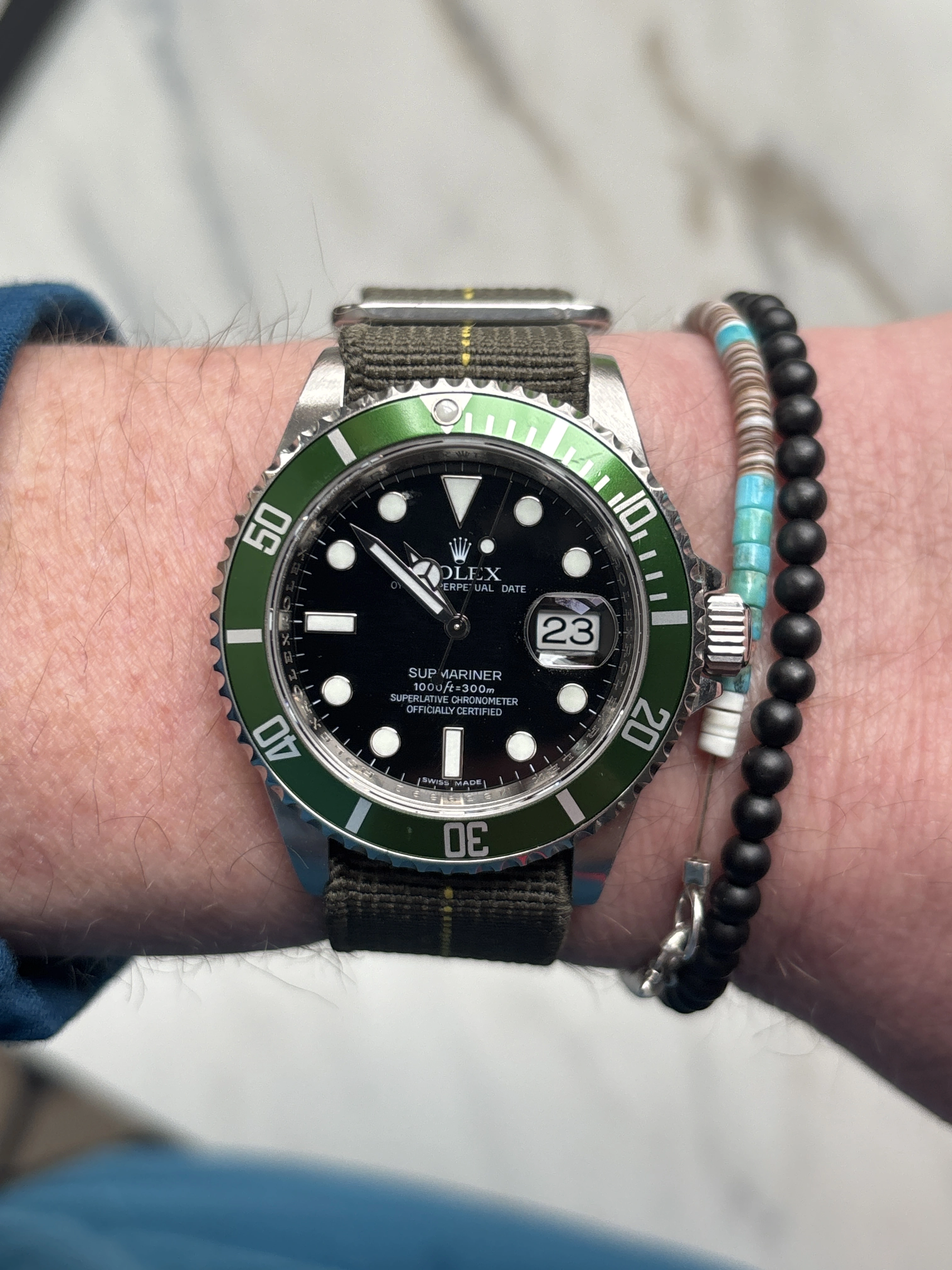Thought I would wear this. Was watching antique road show some lady found one but a nondate version one on the road like someone throwed it out of a car window it looked beat up and still had a crazy price even in that shape without bracelet. Dam wish I could find one just lying in the street.