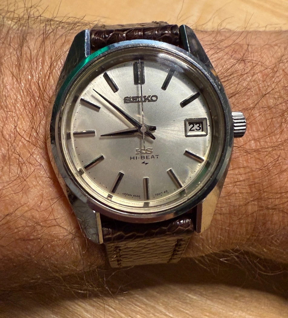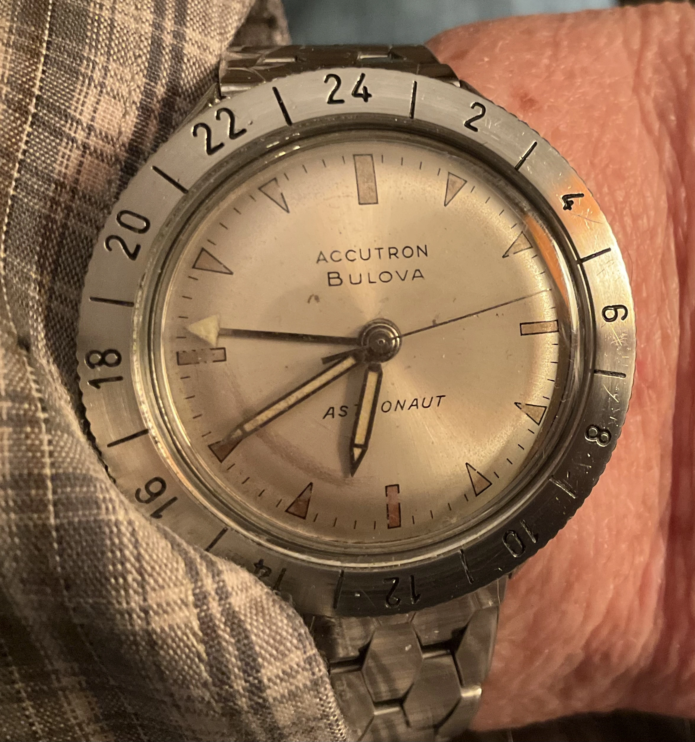 I took the notion to park the Date-Just today, and put on my 58 year old survivor Accutron 214 Astronaut. One of these days I’ll try to track down a better dial than the one on the watch. I’ve had this watch parked in the future projects drawer until a few months ago I was motivated to replace the movement. Finally, after all these years, I can enjoy it.