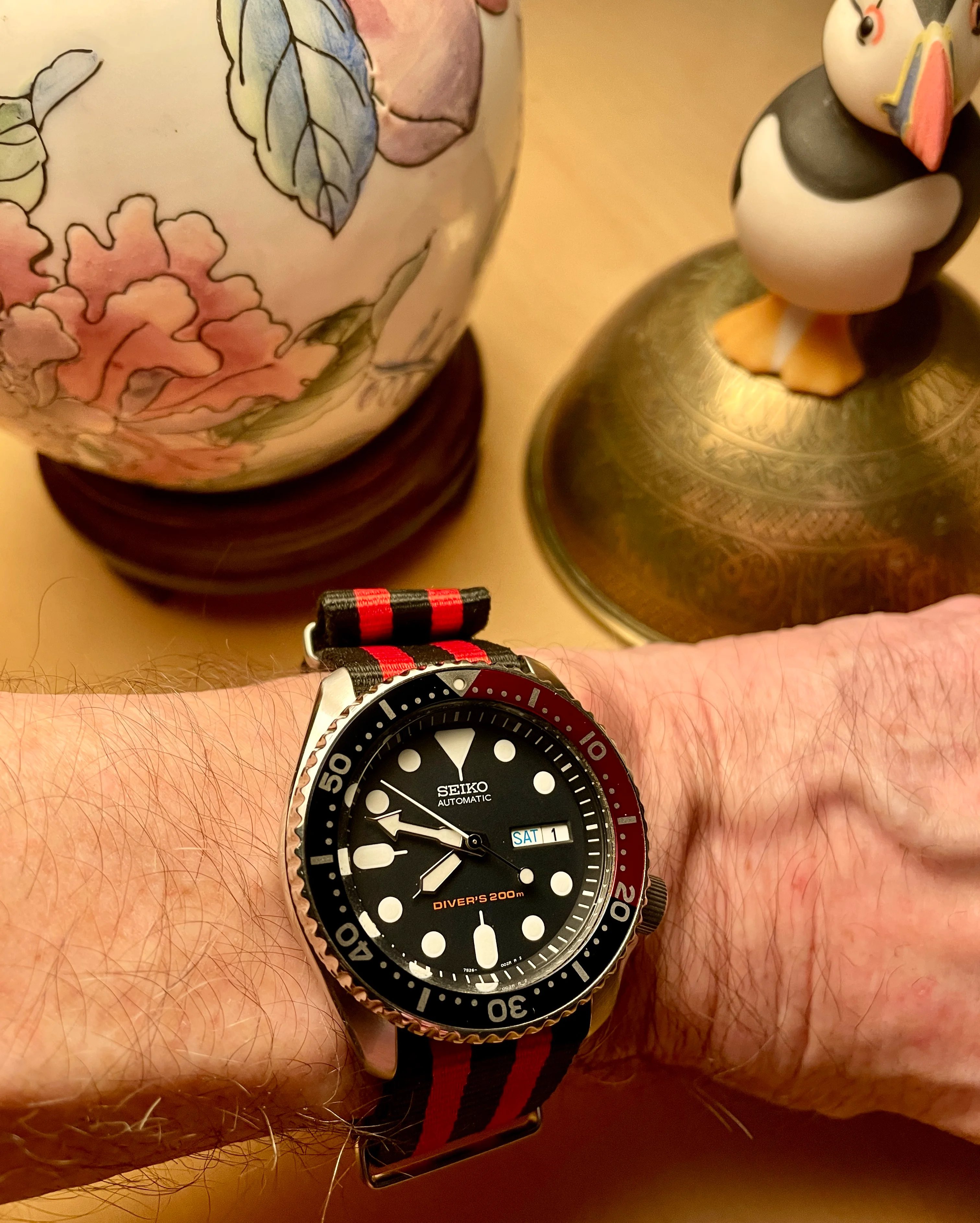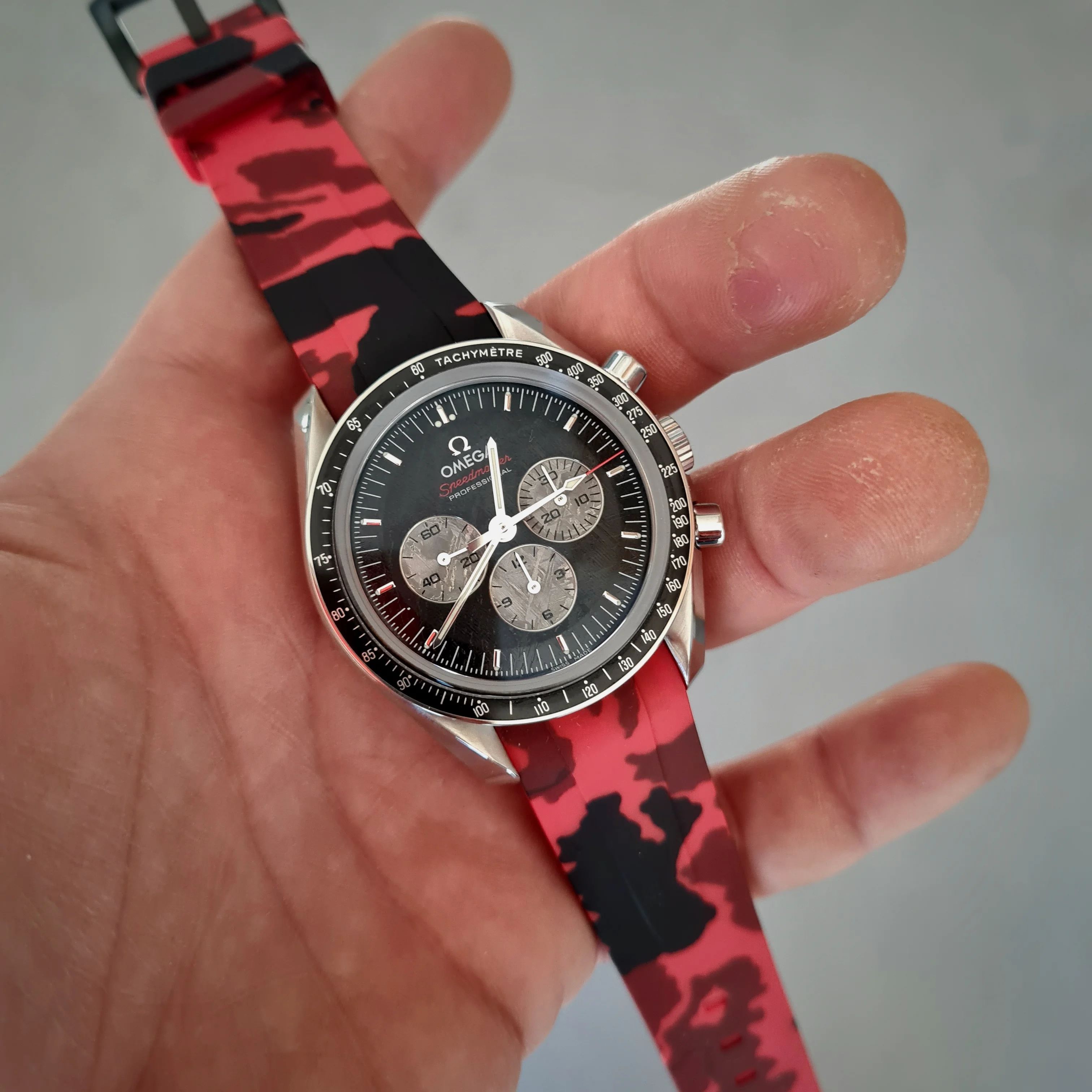 Posts 781 Likes 14,789 MDubs ·Feb 1, 2025 befobe This is the day I test all my strap combination... I love those days; have fun!! The red camo plays nicely with the pops of red on the A-S meteorite dial!!