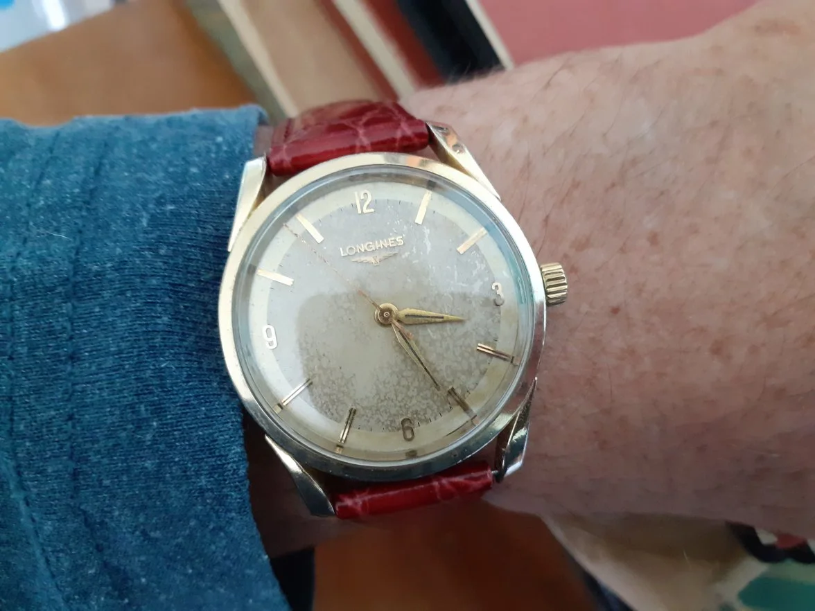 Posts 1,839 Likes 3,737 TimeODanaos ·Feb 1, 2025 This battered but magnificent trooper is about to go for a long R&R, after coming out of retirement for what turned out to be the whole of January, owing to a regular going AWOL after Christmas festivities (thankfully now found). Ref.6853 with manual-wind cal.23ZS from c.1958.