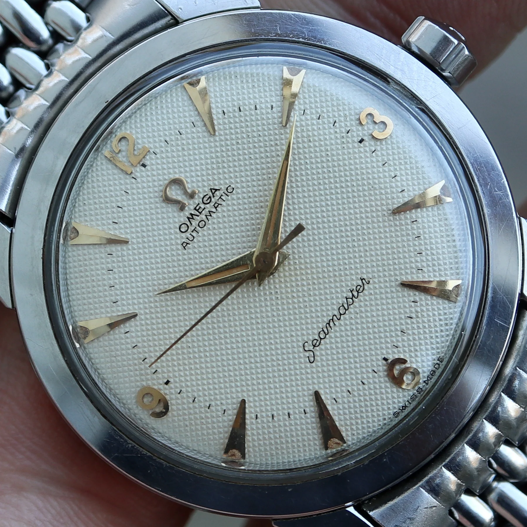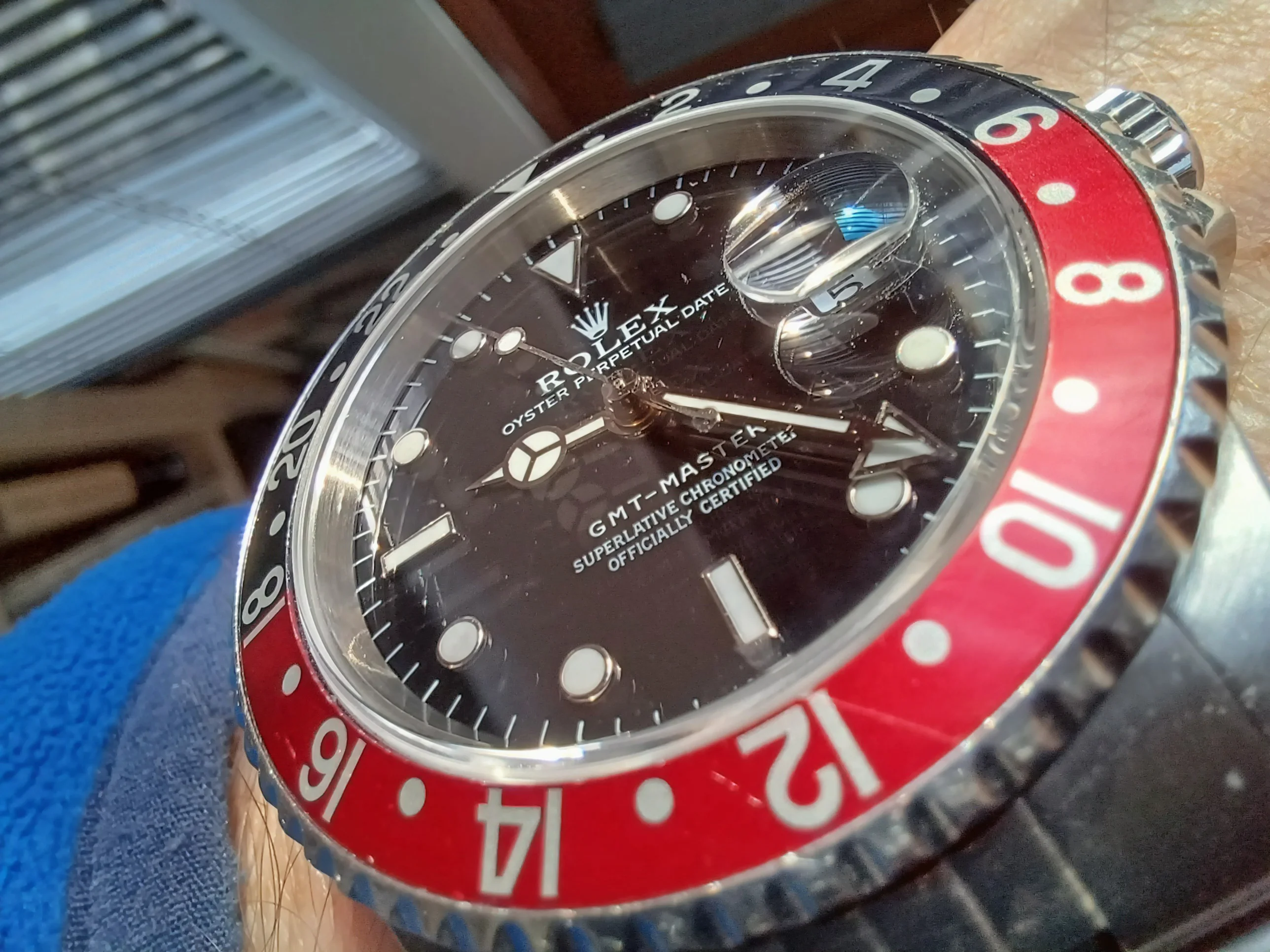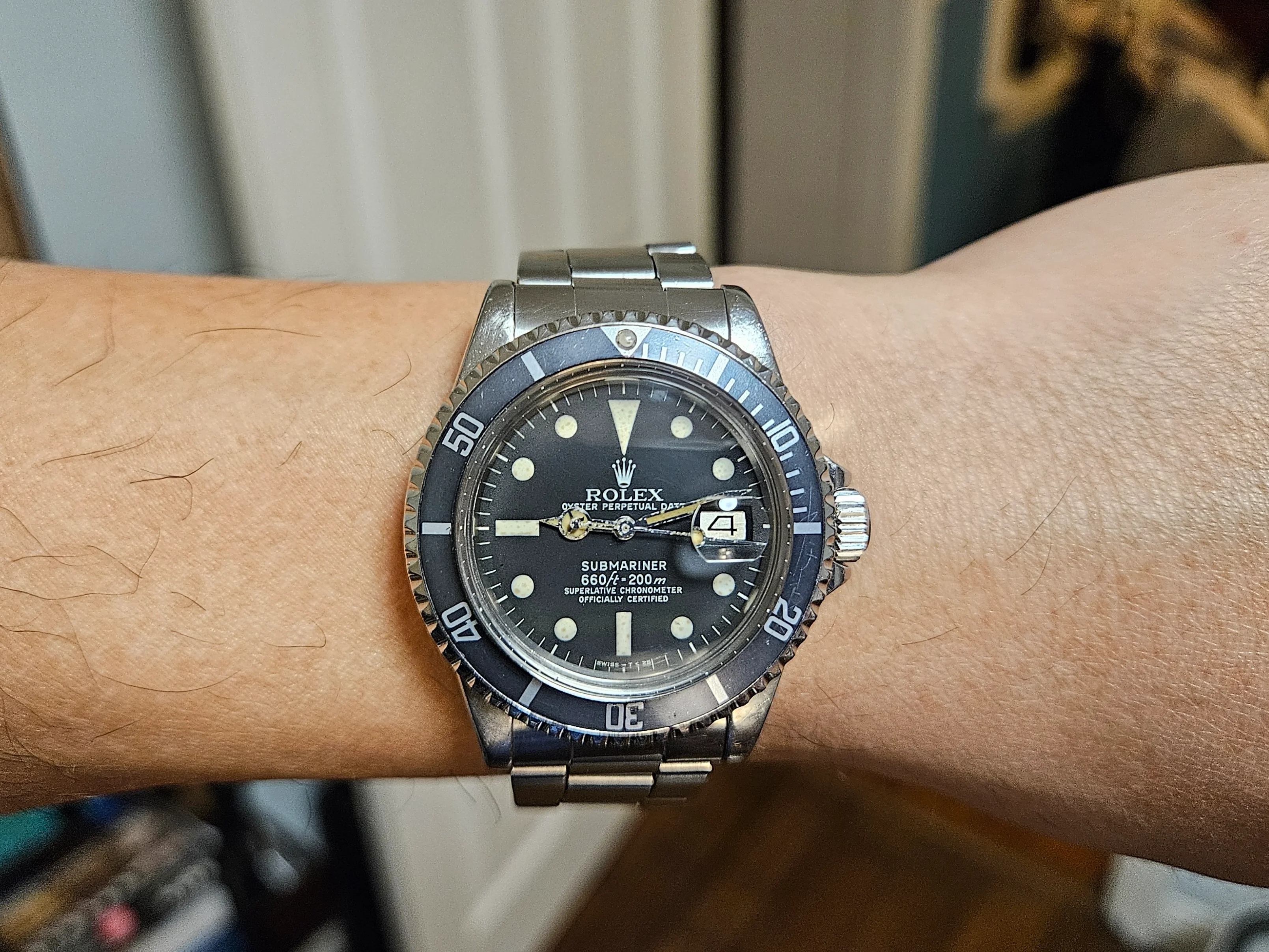 Wasn't too sure with the uneven "ghost" bezel fade on my "Galaxy Sub", so I sourced another bezel from the same old watchmaker. Took me forever to get the right lighting, but really loving this "Gunmetal" fade on my 1680. Made a small mistake trying to fit this bezel insert, but I guess I put my mark on it.