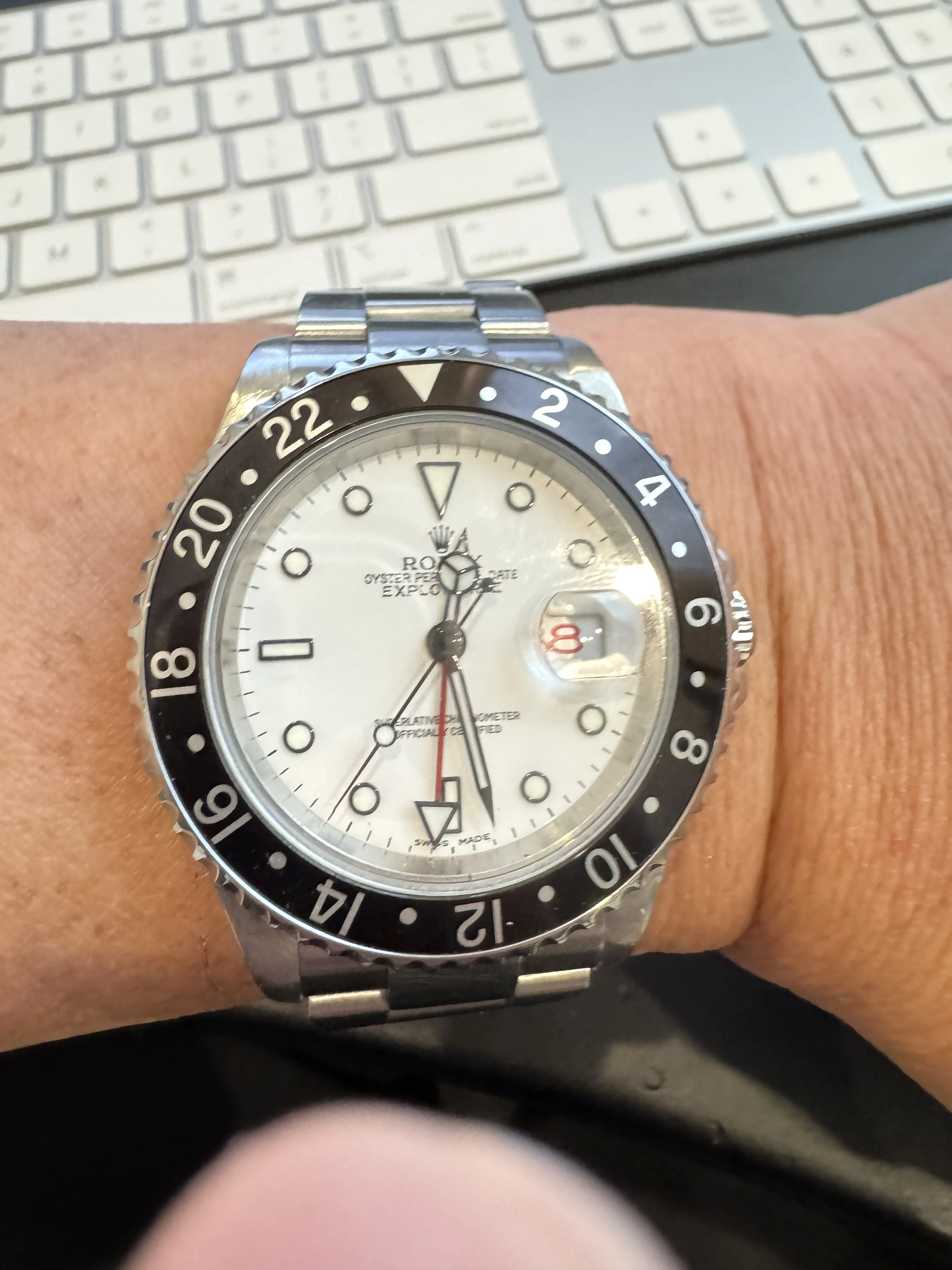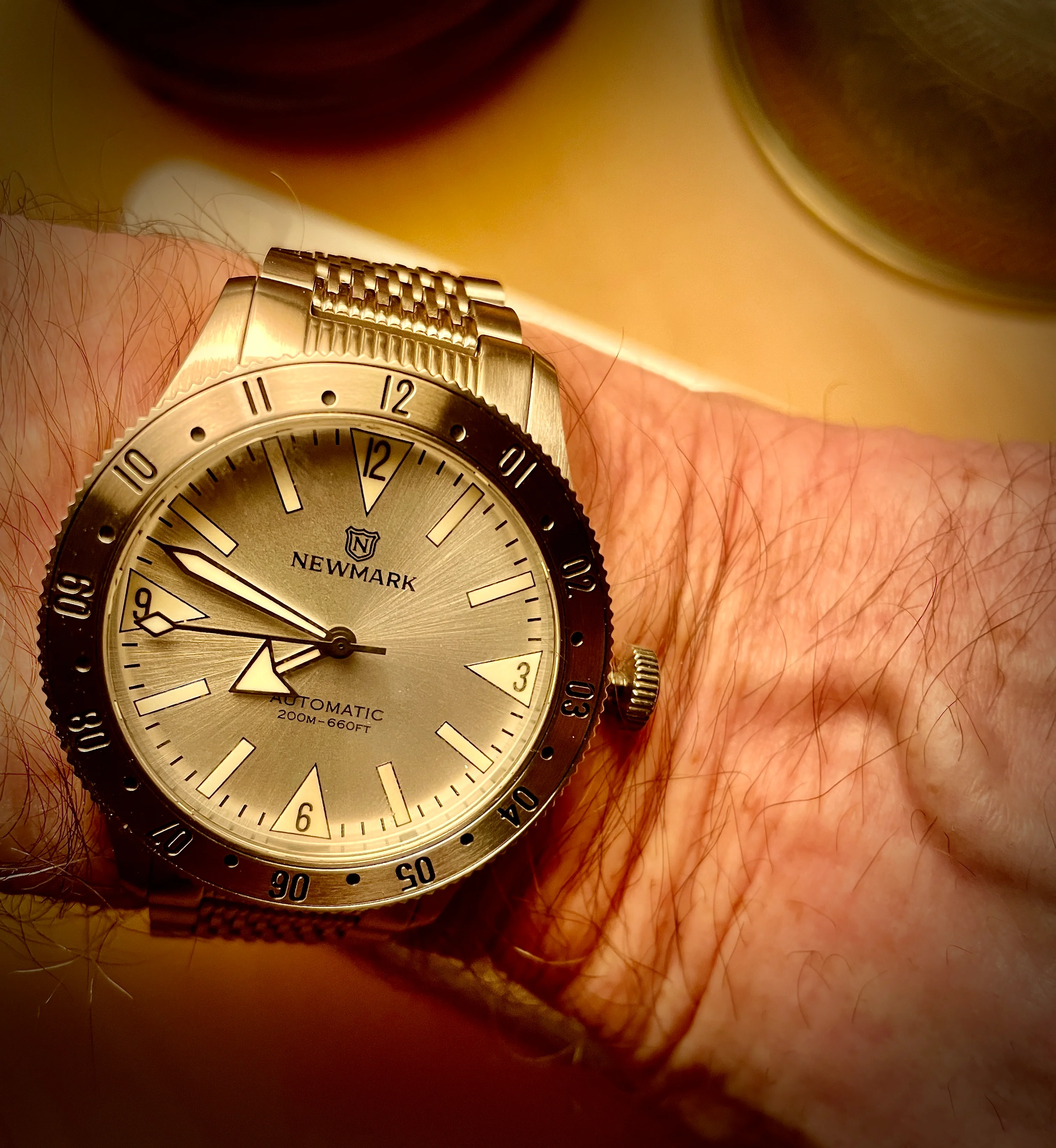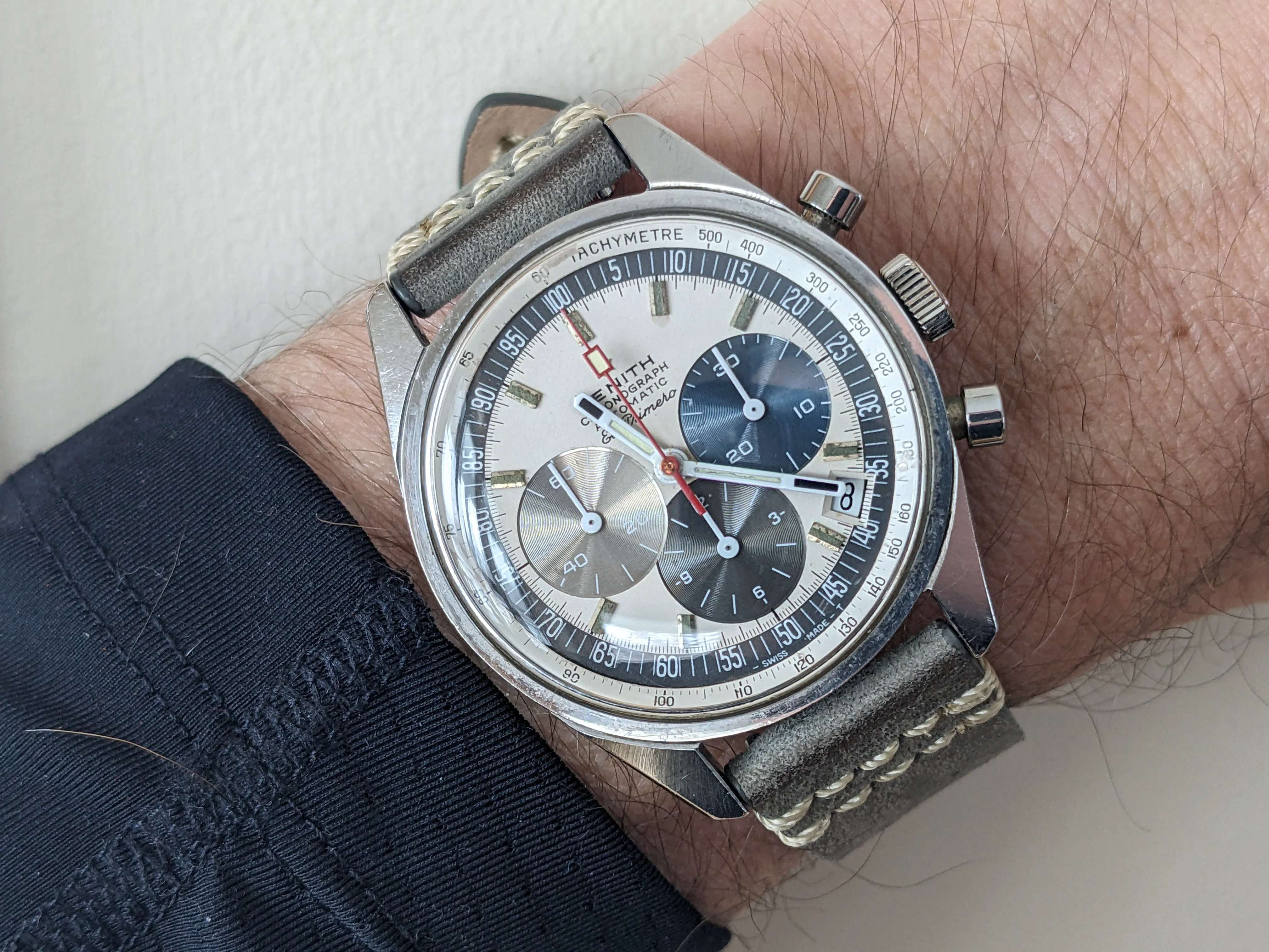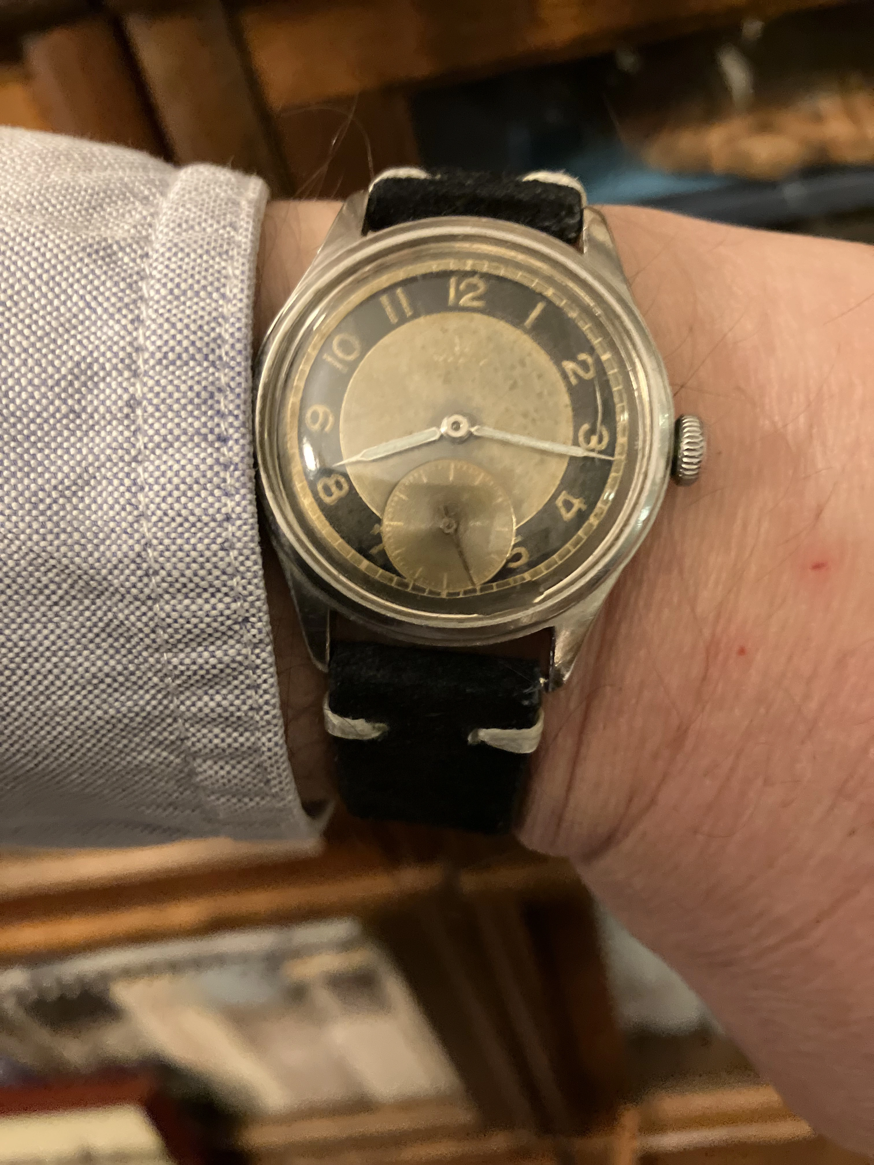 Another day, another Accutron. This time, my 58 year old Astronaut. Bought as a fixer-upper about 40 years ago. Languished among my project watches until late in 2024 when I grabbed the bull by the _ _ _ _ _ and serviced another Accutron movement, and resuscitated the Astronaut. Not perfect as you doubtless can see, but at least I now can wear it. Original “coffin” link Kreisler bracelet.