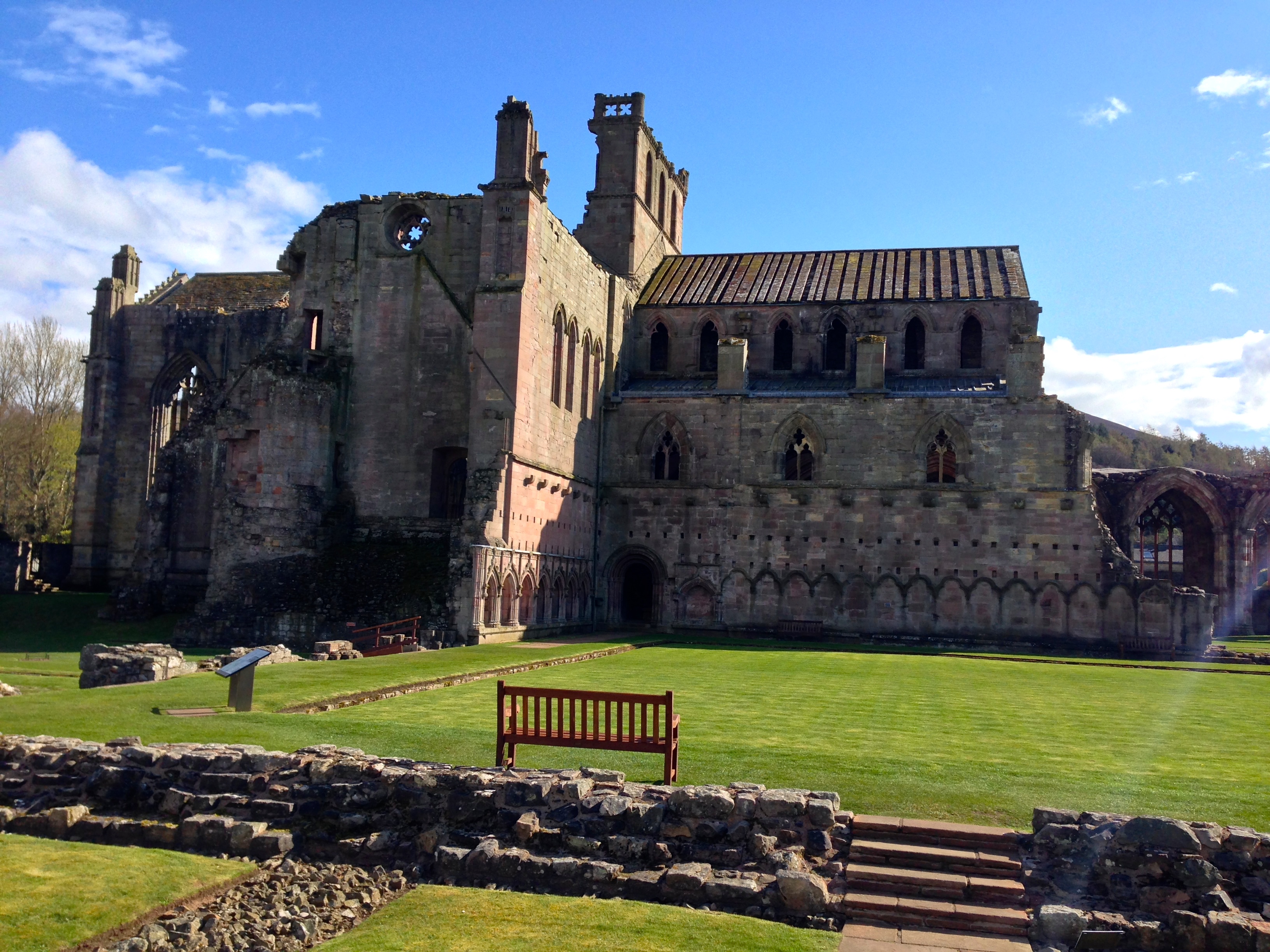 Melrose Abbey. Been there. The day we were there, there was a group of pipers all dressed in their finery, warming up in the parking lot. Stirred my Scottish blood.