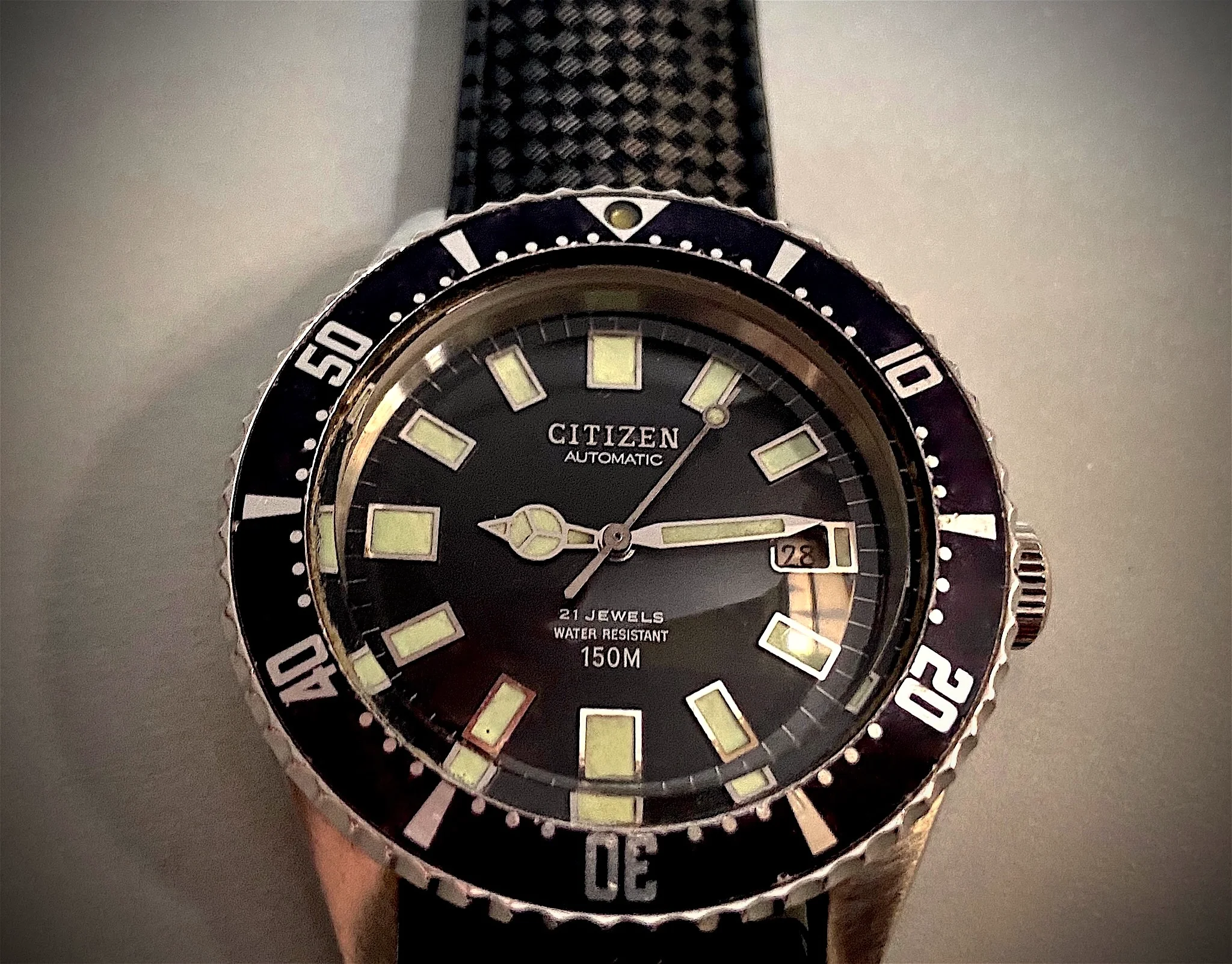 Posts 3,352 Likes 17,052 hmmmcamu ·Feb 15, 2025 1977 CITIZEN 52-0110 CHALLENGE 150M DIVER dial type-1 same year and model as the Barnacle diver that was found on a beach in Australia The 52-0110 dial type 1 has a unibody dial, where the logo and hour markers are stamped or pressed on to the blank metal disc used for the dial. Edited: Feb 15, 2025