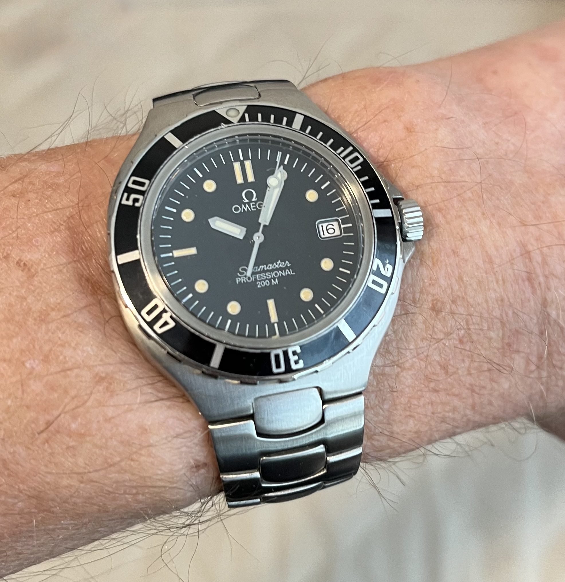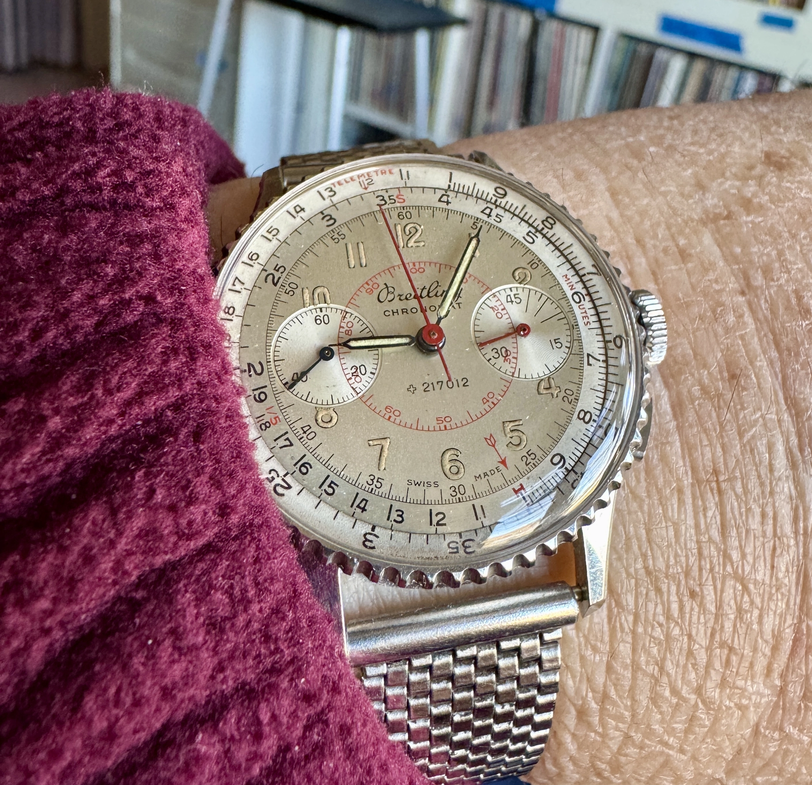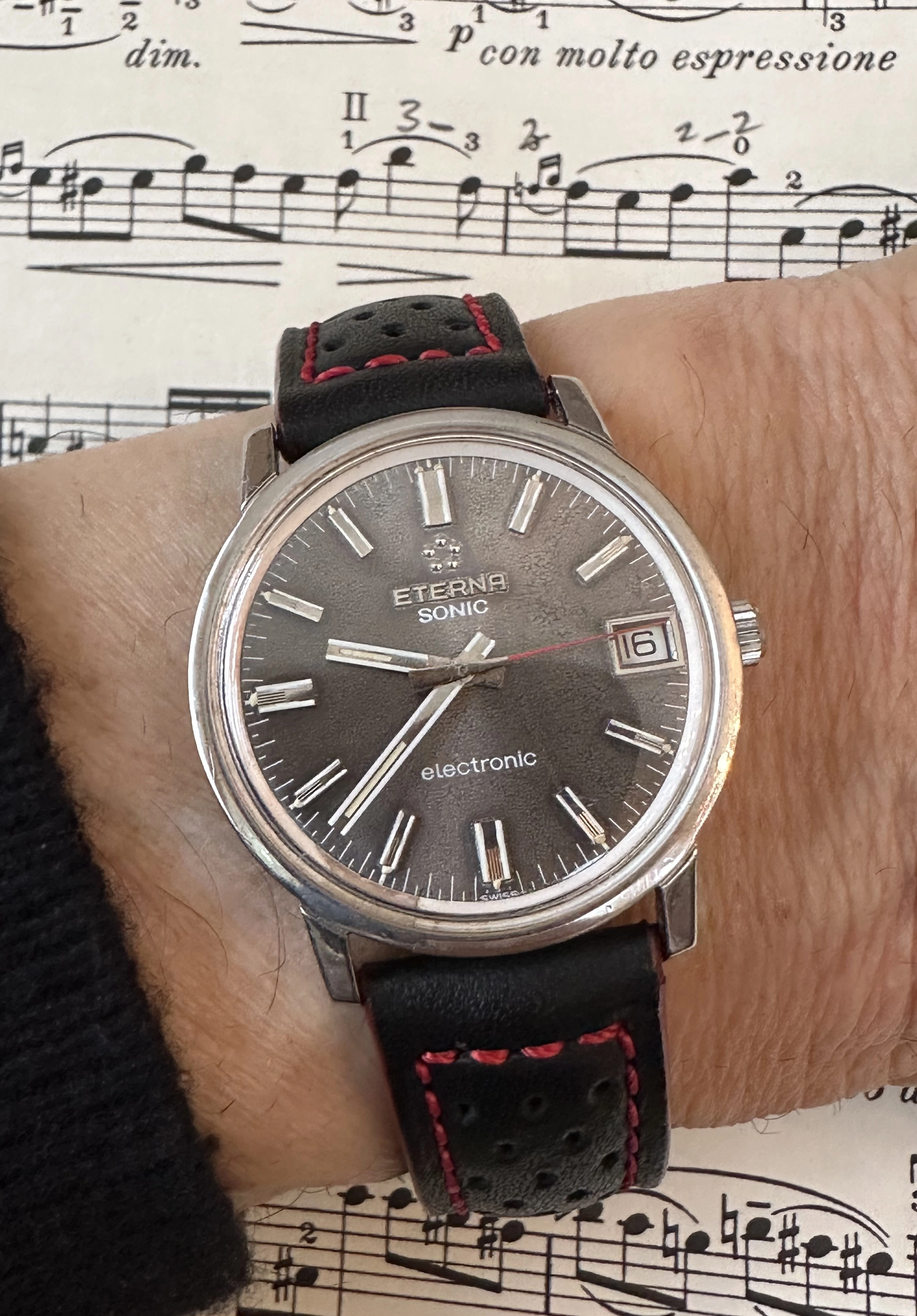 I’ve enjoyed wearing Accutron 214s for the last few weeks. Problem? No calendar! So today, to Hades with feng shui! Proportion, balance, call it what you will. Time for a watch with a calendar. In 1969, I worked for a Bulova dealer. I sold this watch to the original owner that year. That’s 56 years ago! Circa 2010, he’d lost his wife, and was in ill health, and had vision problems. He could no longer read his beloved Accutron, and nobody in his family wanted it. So he phoned me, and asked me to pay a visit. It was then that he gave me this watch. He wanted it to go to a good home. This was a popular model of Accutron in those days. Bulova closely associated this model with Apollo 11, the landing on the moon. In their point of sale signage and in their advertising, this model was often featured.