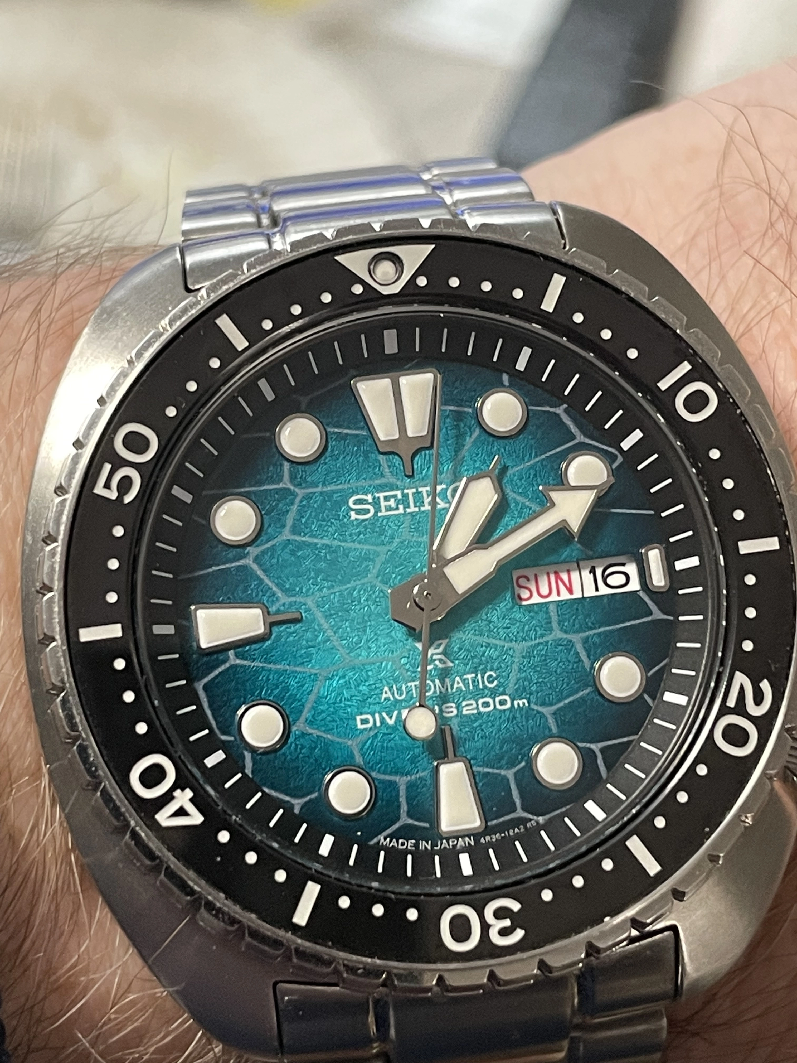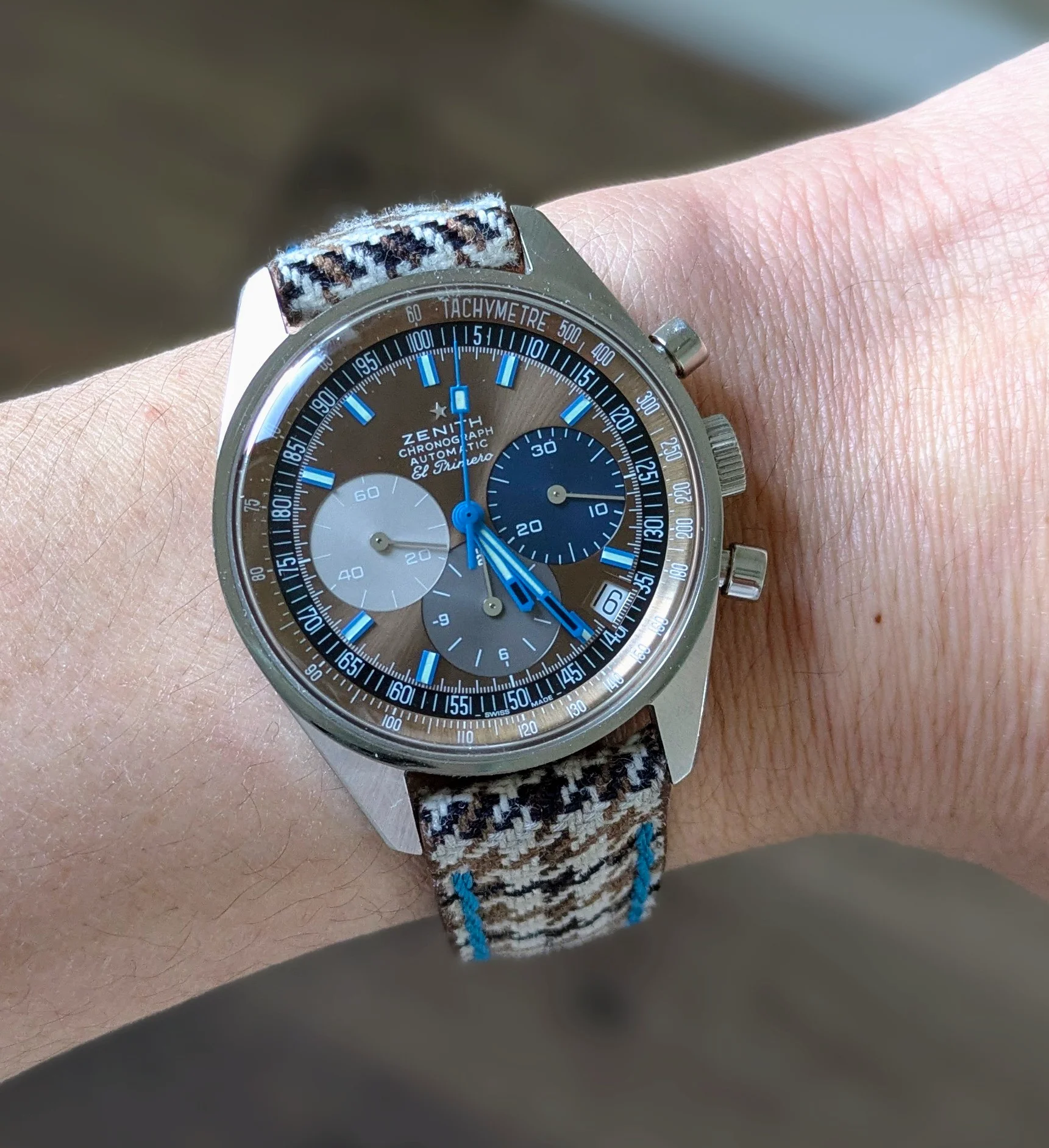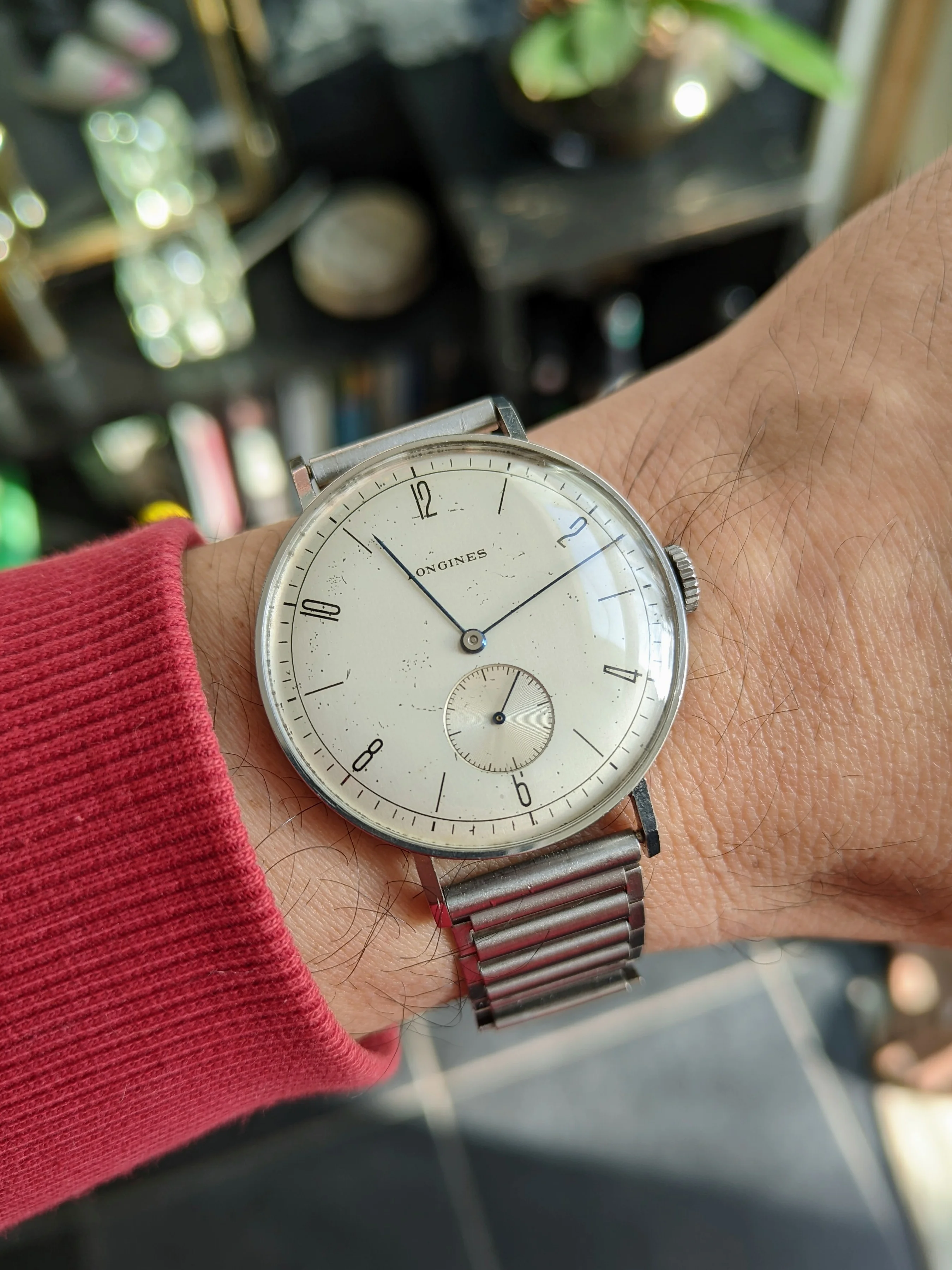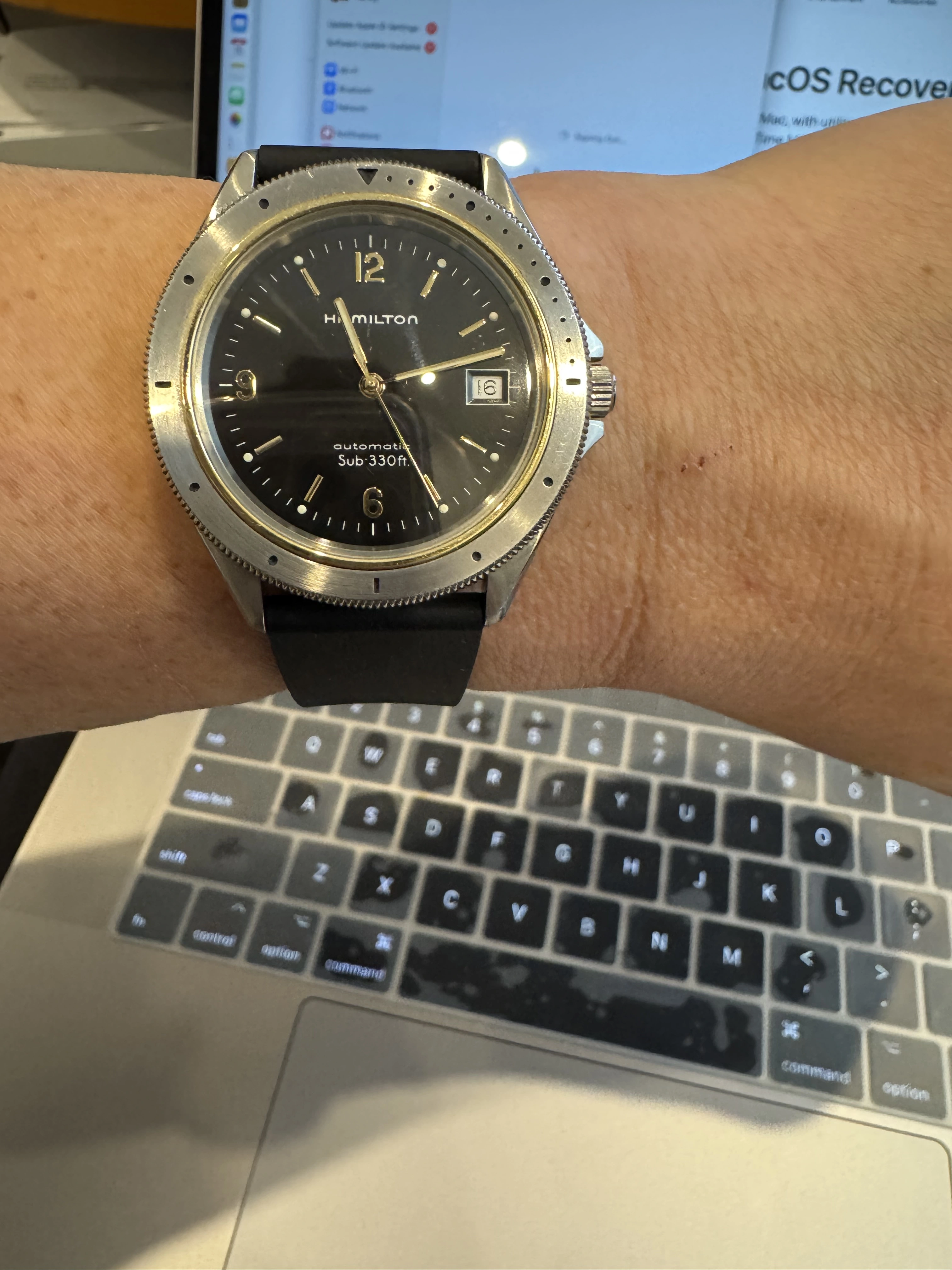 I’ve enjoyed wearing Accutron 214s for the last few weeks. Problem? No calendar! So today, to Hades with feng shui! Proportion, balance, call it what you will. Time for a watch with a calendar. In 1969, I worked for a Bulova dealer. I sold this watch to the original owner that year. That’s 56 years ago! Circa 2010, he’d lost his wife, and was in ill health, and had vision problems. He could no longer read his beloved Accutron, and nobody in his family wanted it. So he phoned me, and asked me to pay a visit. It was then that he gave me this watch. He wanted it to go to a good home. This was a popular model of Accutron in those days. Bulova closely associated this model with Apollo 11, the landing on the moon. In their point of sale signage and in their advertising, this model was often featured.