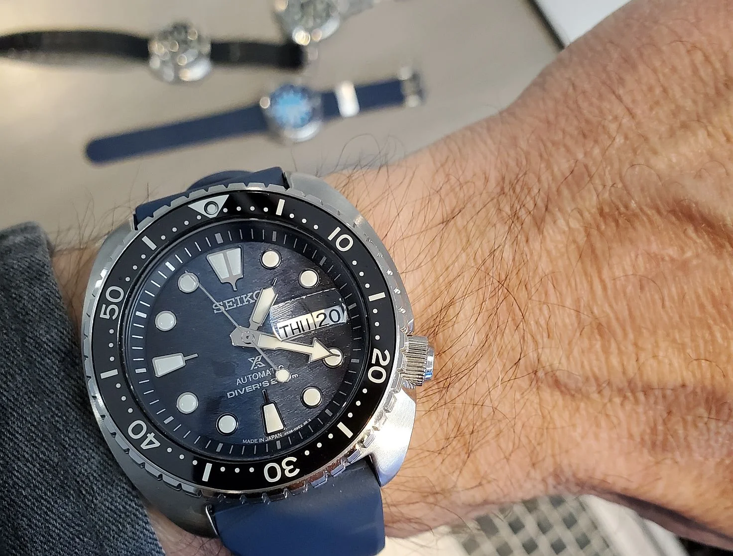Believe it or not these are actually different: SPRA21 vs the updated SRPE99, but a transitional one that hadn't gotten the lume at 3 yet. The backs are different...Air Divers 200 vs Divers 200...but I forgot to photograph...