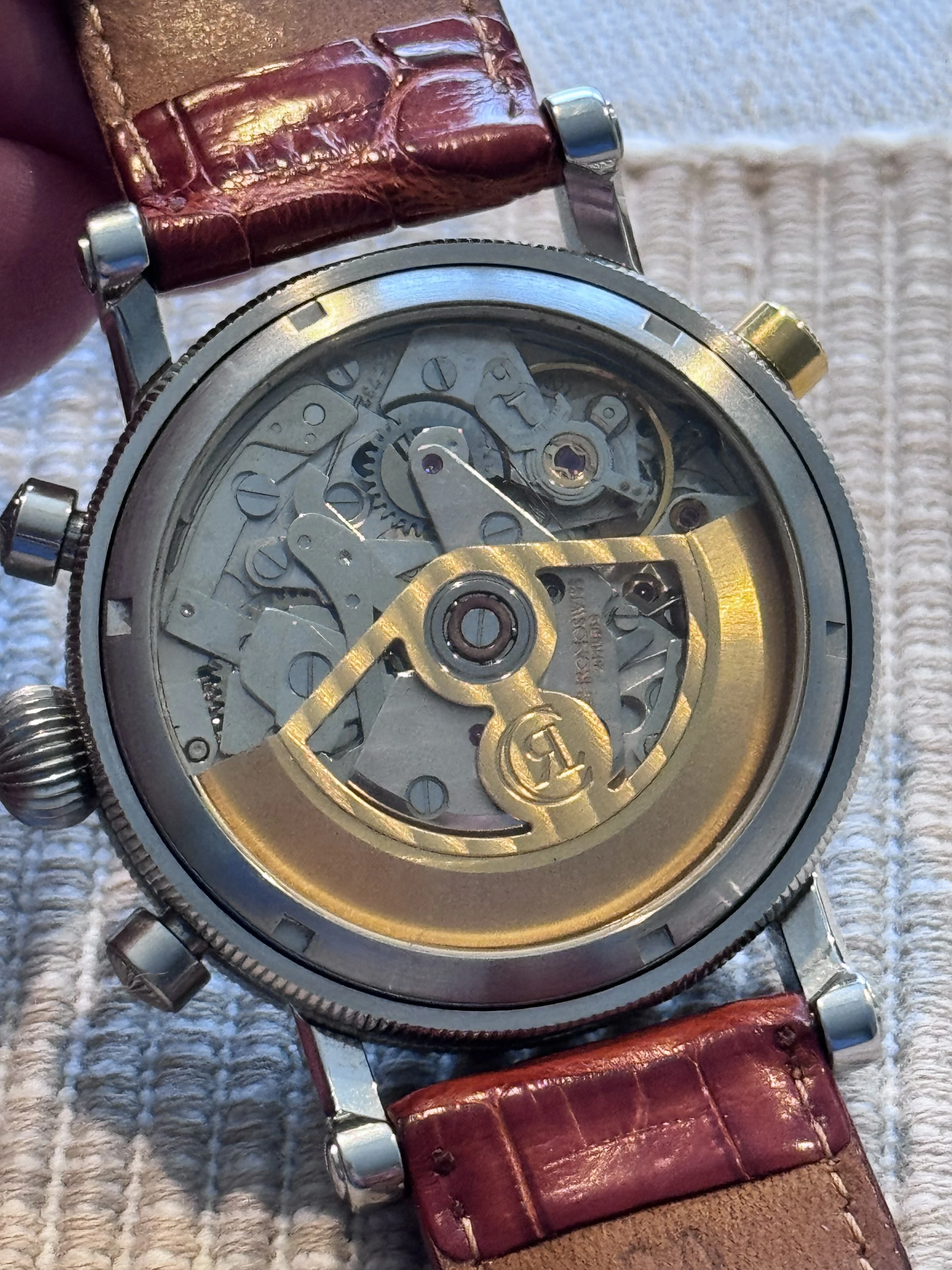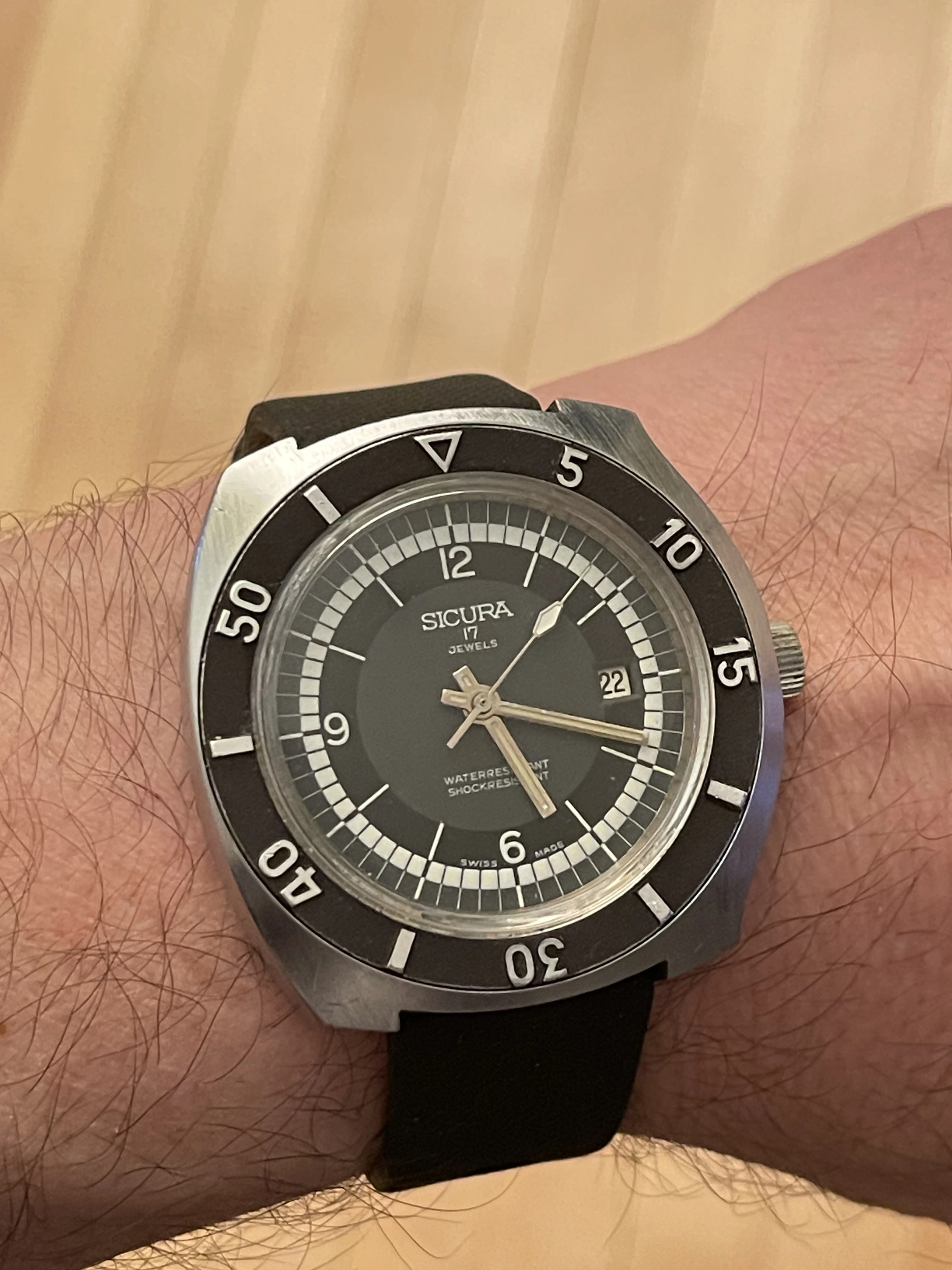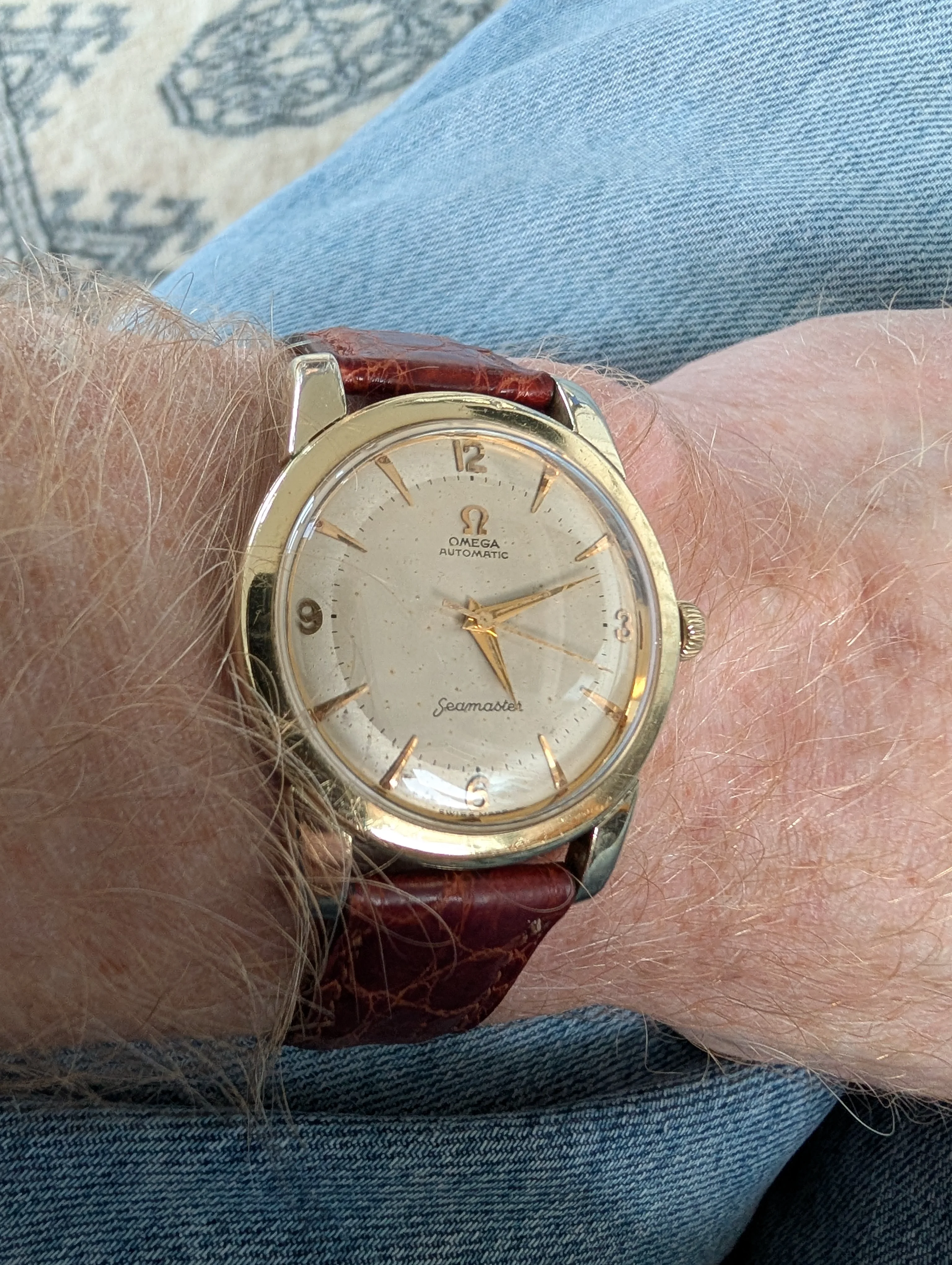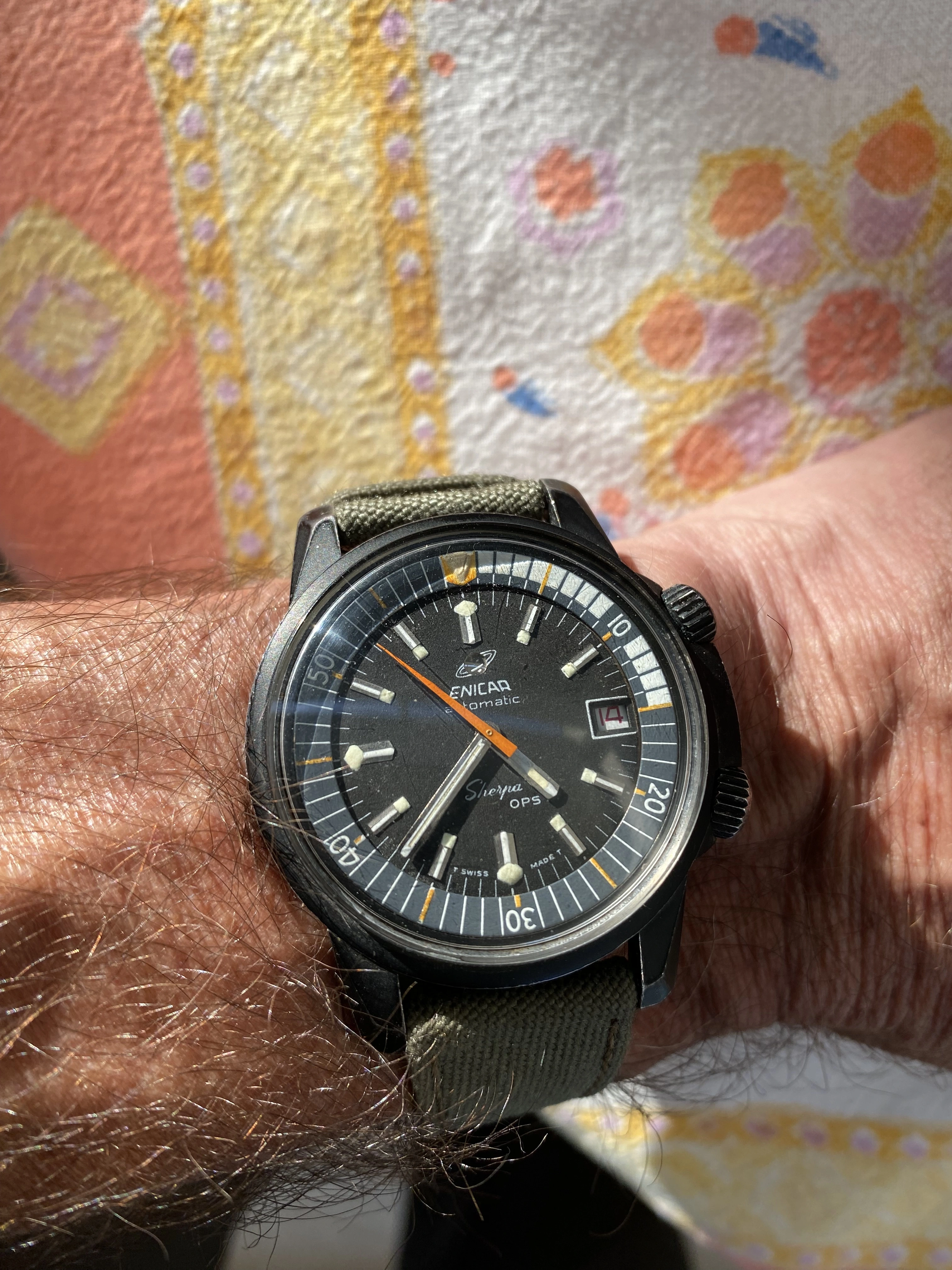 Electric blue in its "new" home. Case from a 2561.80 with what I think was significant water damage. Whatever happened destroyed the dial, hands, and movement. The 2263.80 was also a "for parts or repair" pickup as its HEV and crown were both rusted out, though surprisingly the dial and hands seem pristine. Still needs some work though. The crystal in the good case has a smudge on the inside near the date window that will bug the heck out of me, and the movement from the 2263.80 is flaky. I don't expect to find a 1538, so I'll probably put in an ETA 255.462.