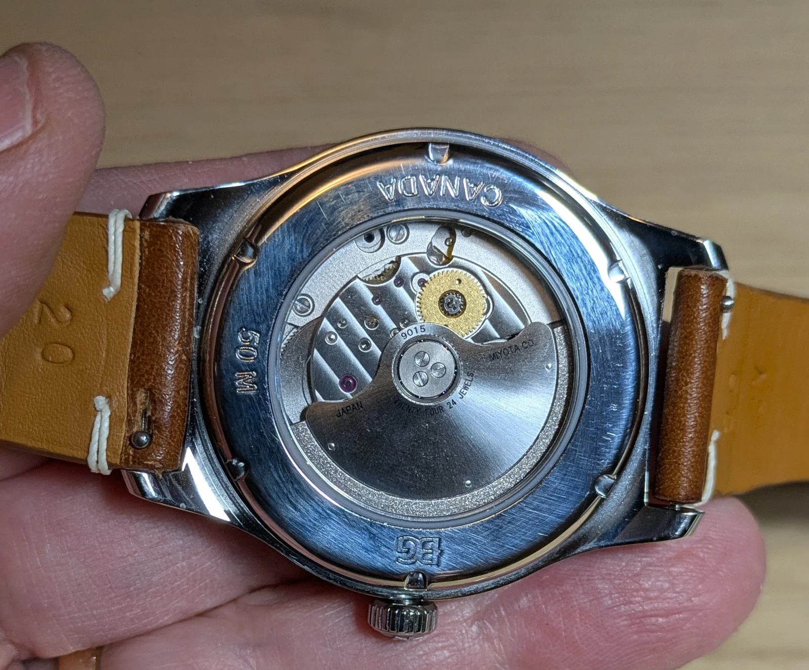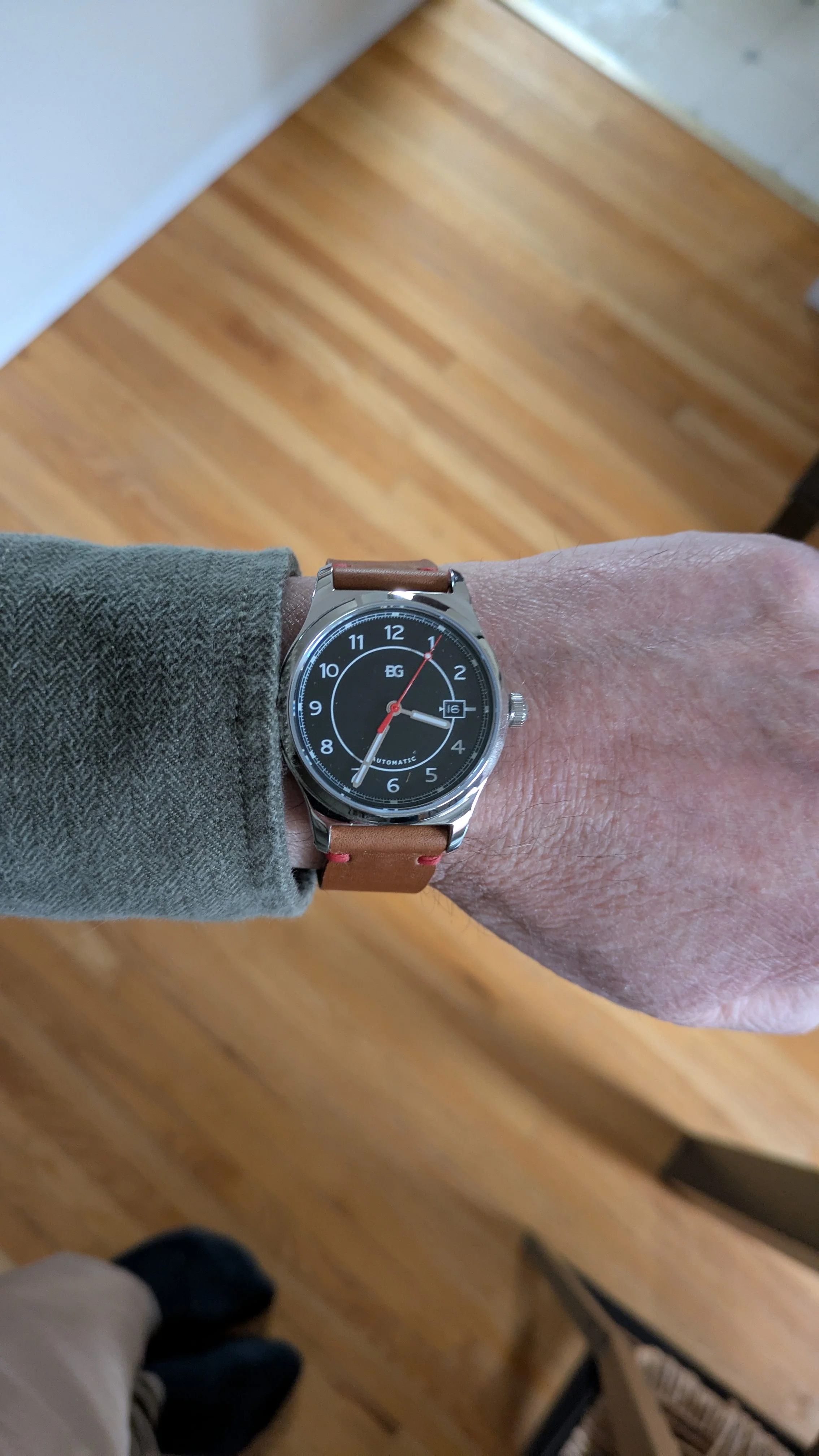 I just bought this Sandon, a model of watch Barrington Griffiths Watch. Made in Canada. In fact, made in my city, Calgary, Alberta.39mm case, 48mm lug to lug, 10.5 height, Miyota 9015 movement, AR coated sapphire crystal front and back, screwed on Horween Chrome Excel leather straps.