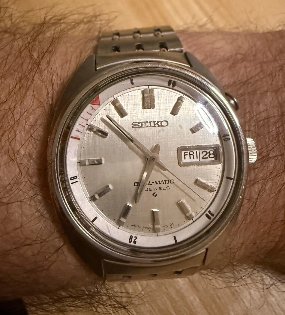 I decided to wear the Bell-matic today, and had set the alarm for just after 1030 to remind me of a 1045 meeting. It's a little hard to be precise with these. I was toiling away in my office and my assistant came in and as they reached for something on my desk, the alarm went off. It startled both of us! "I didn't realize it could have an alarm!" I remain amused.