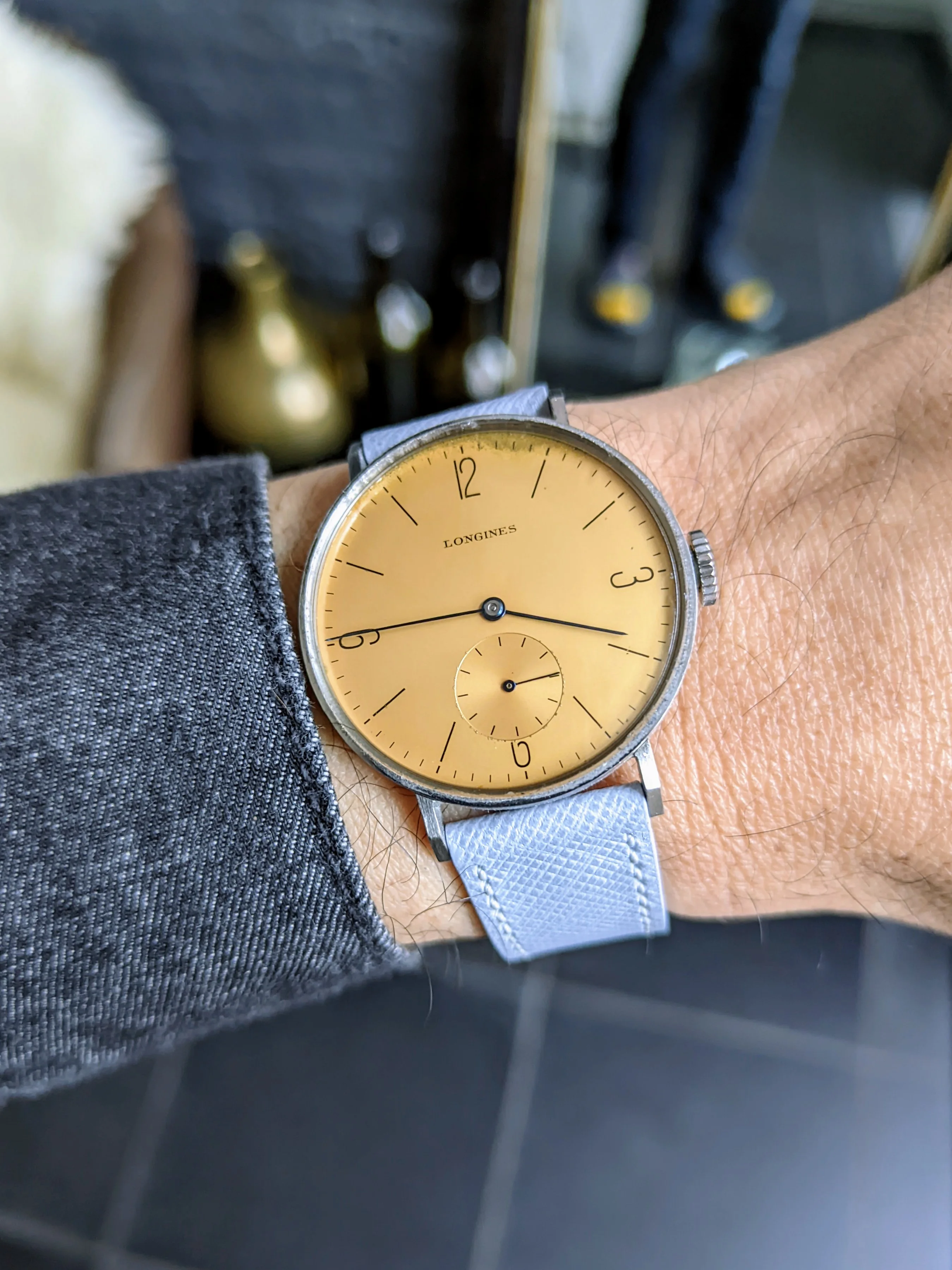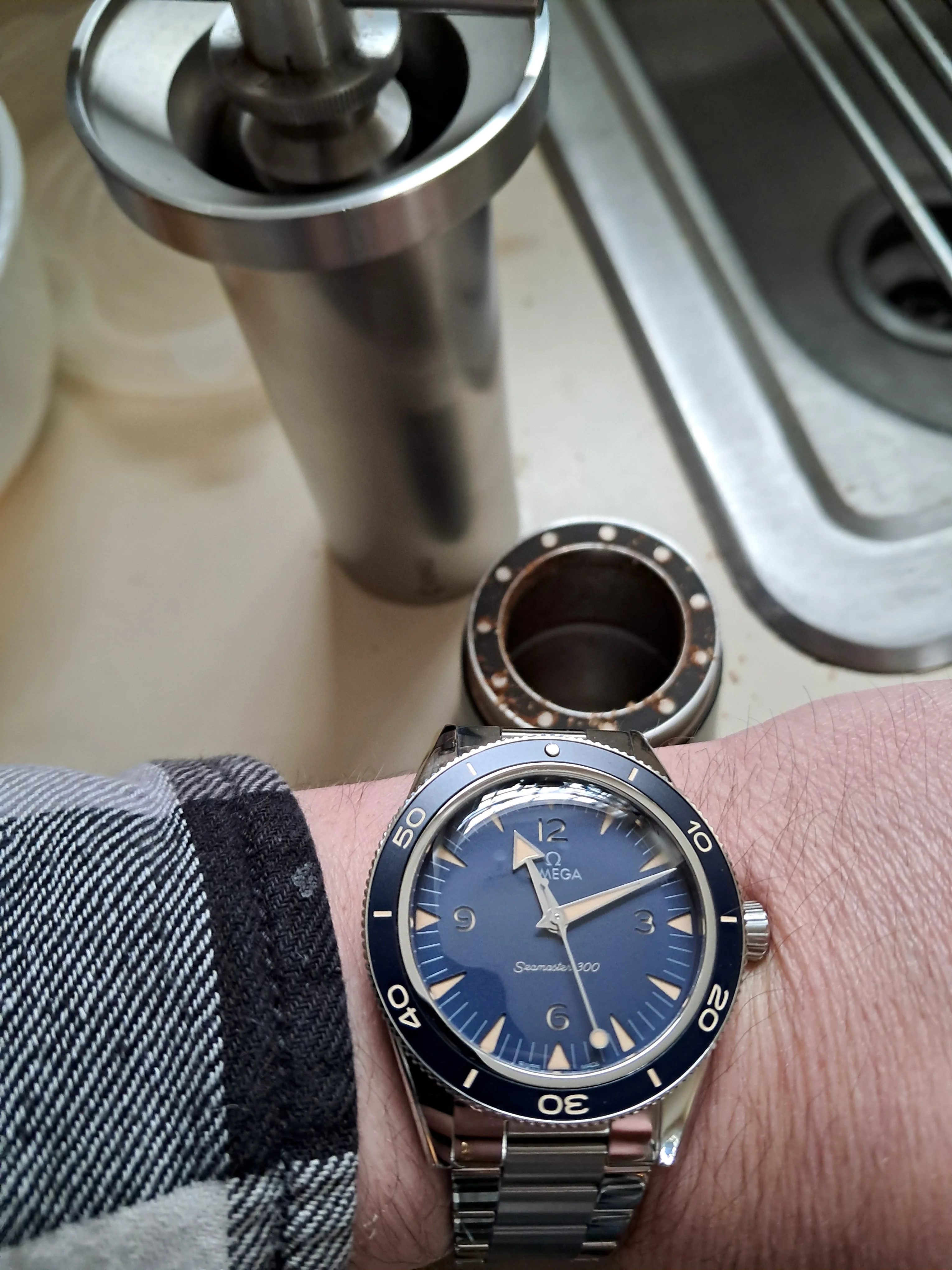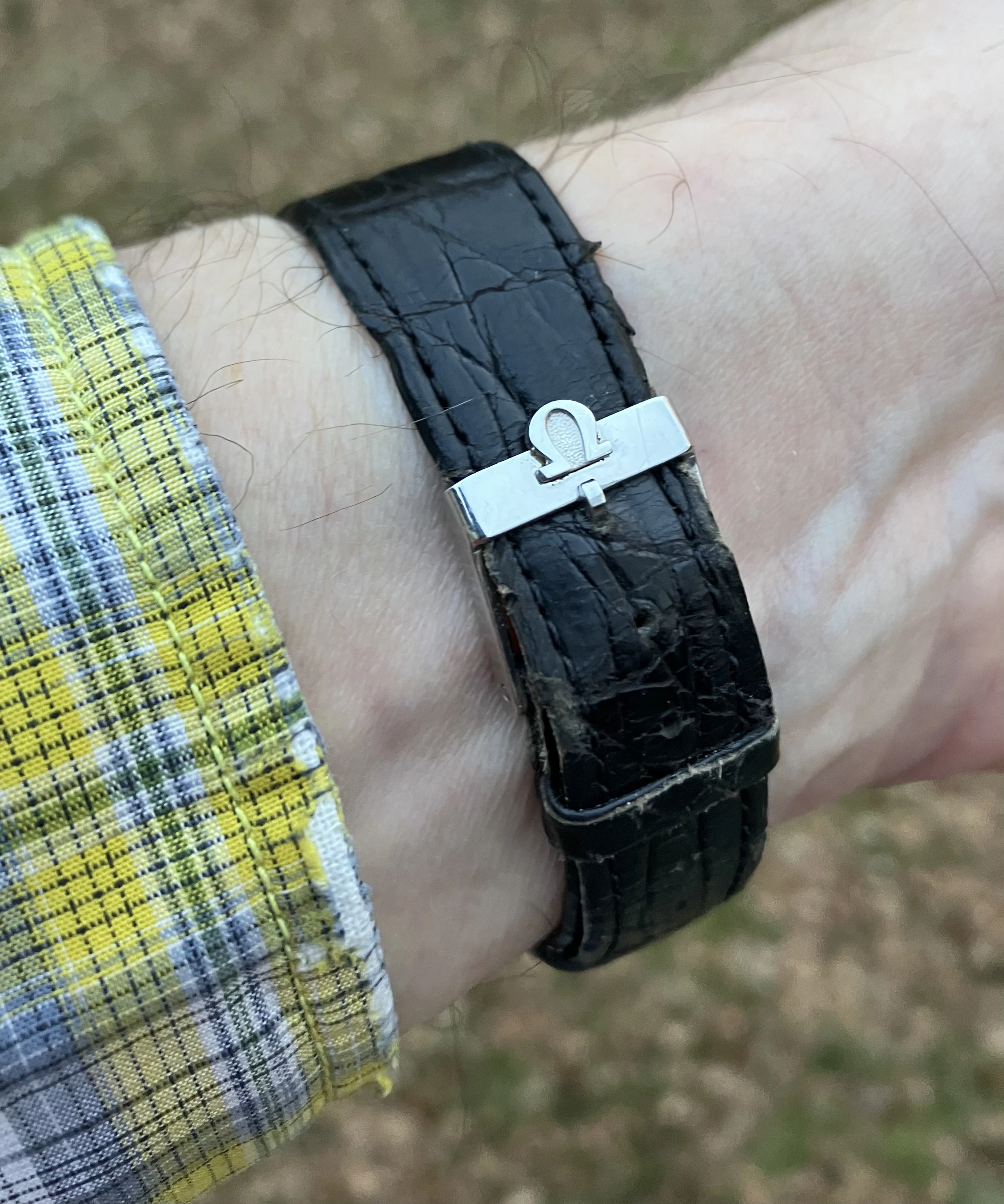 Worn dial, cleaned, but my favorite dial layout. Worn strap, although original Omega. Worn shirt. Buckle is a gift from an old friend, belonged to his dead Seamaster Quartz from 1974.