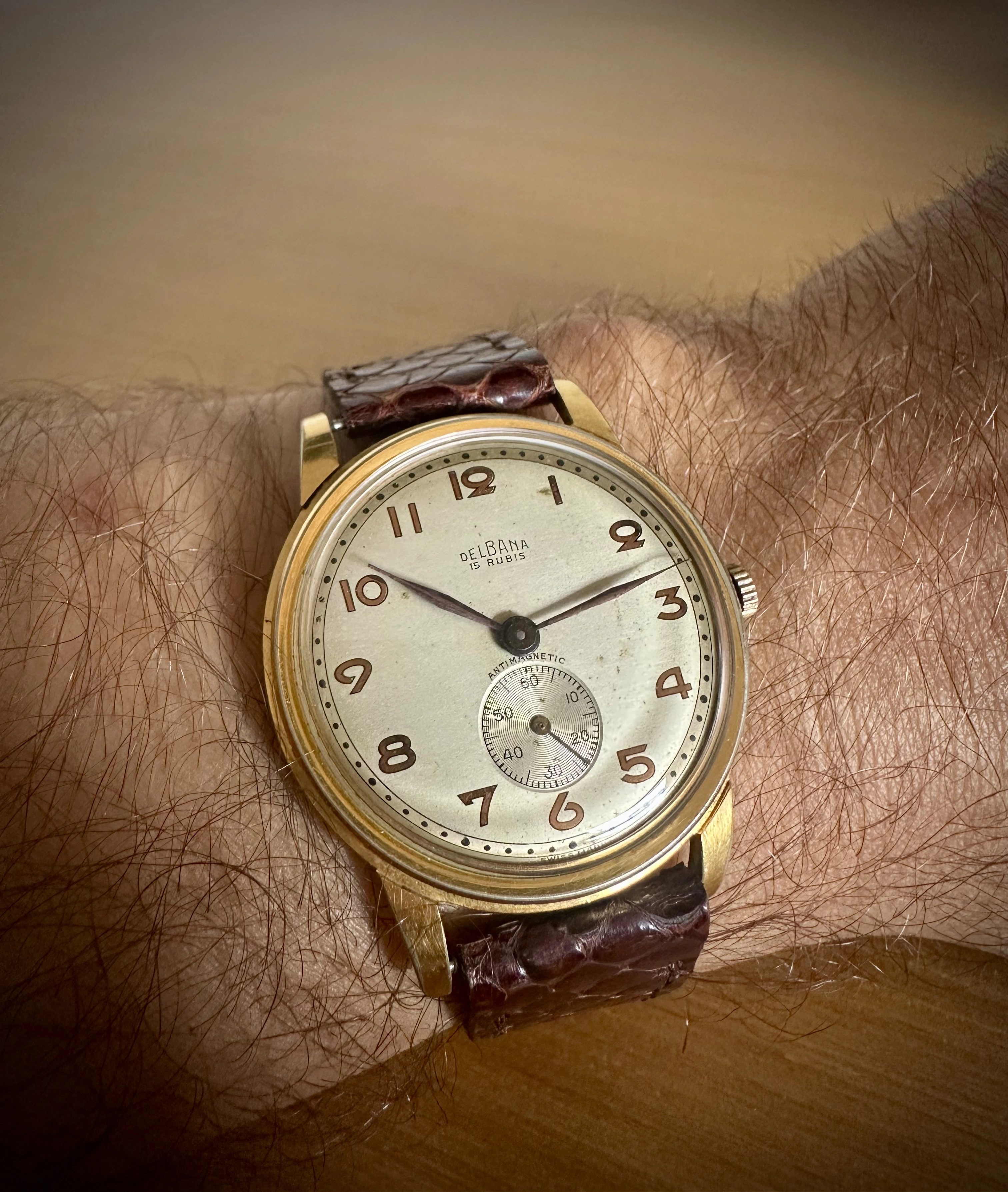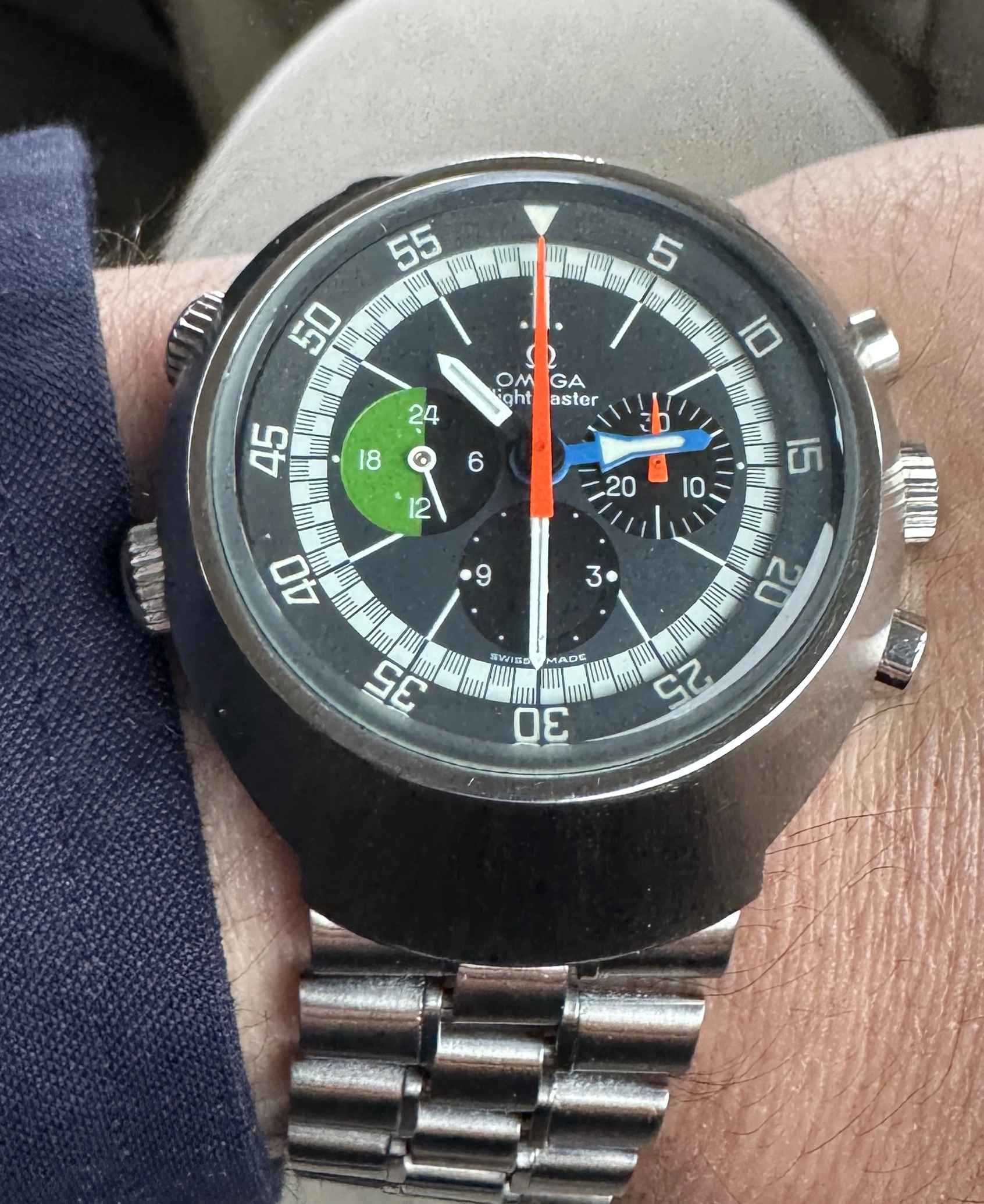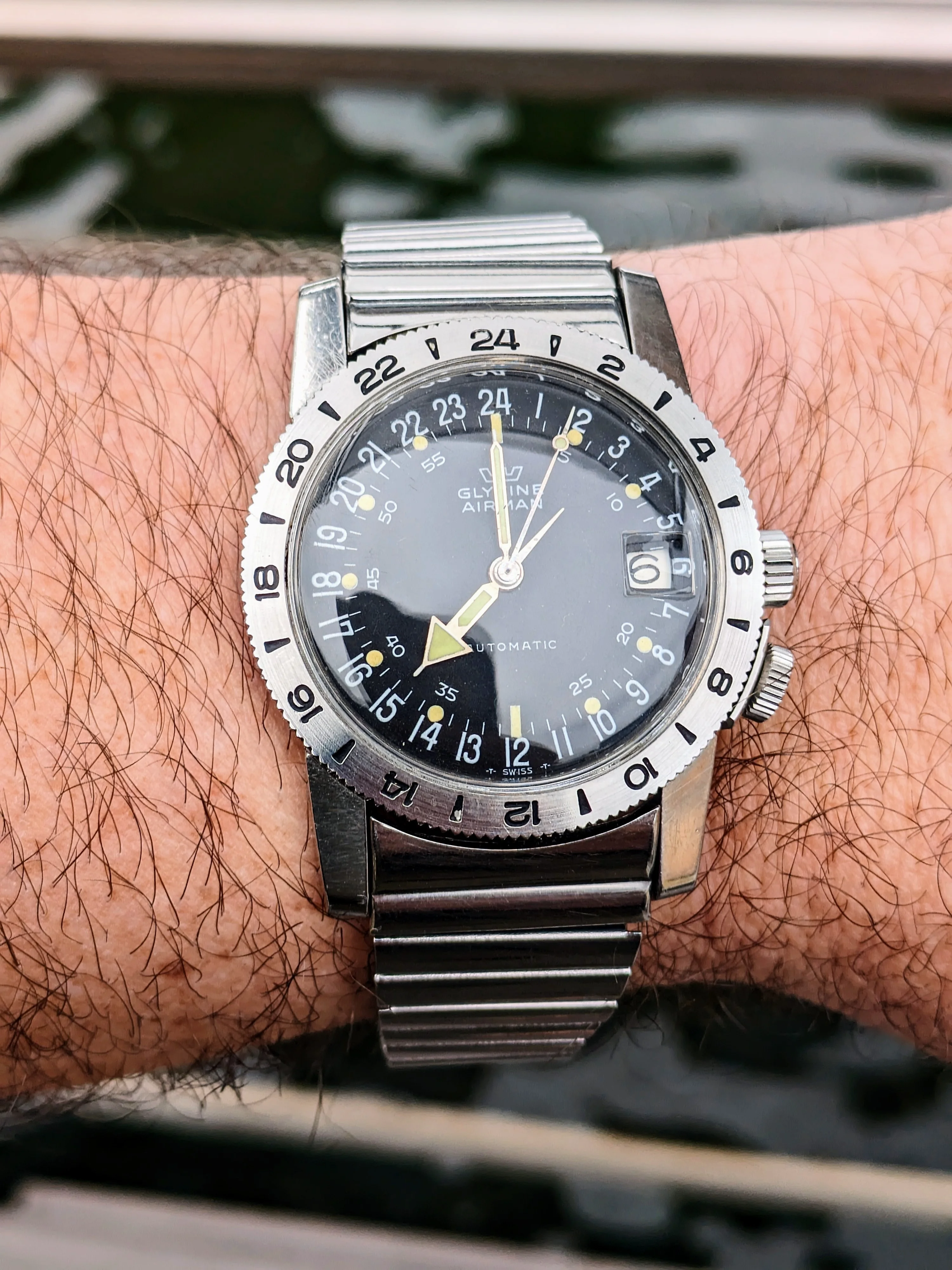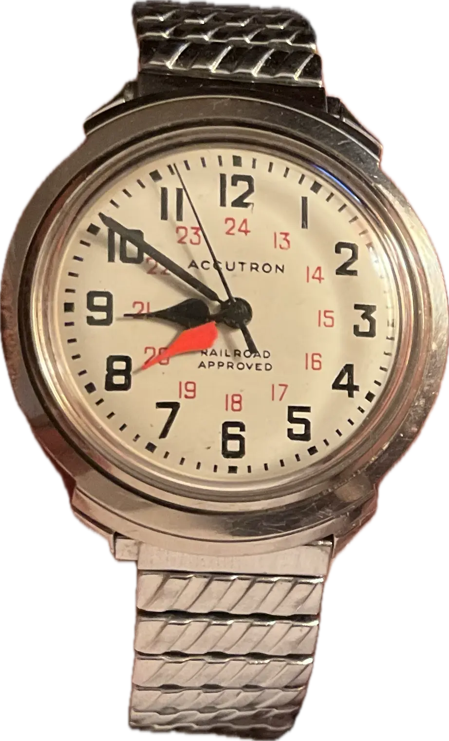Who hasn’t had to endure the moans and groans of others who despise Daylight Saving Time? I have to! My wife grumbles every year, especially in April when we set our watches ahead. I have a solution! This Accutron 214 Railroader from 1967 has the dual hour hand that was popular with railroaders. Use the black hour hand for Daylight Saving time, and the red hand for Standard Time. In the fall, the reverse! We’re getting ready for our annual Supertrain event in Calgary. Early April, two days of overdosing on everything model railroad. We do an exhibit of about 100 plus railroad standard watches and clocks. So I’ll wear this one until show time.