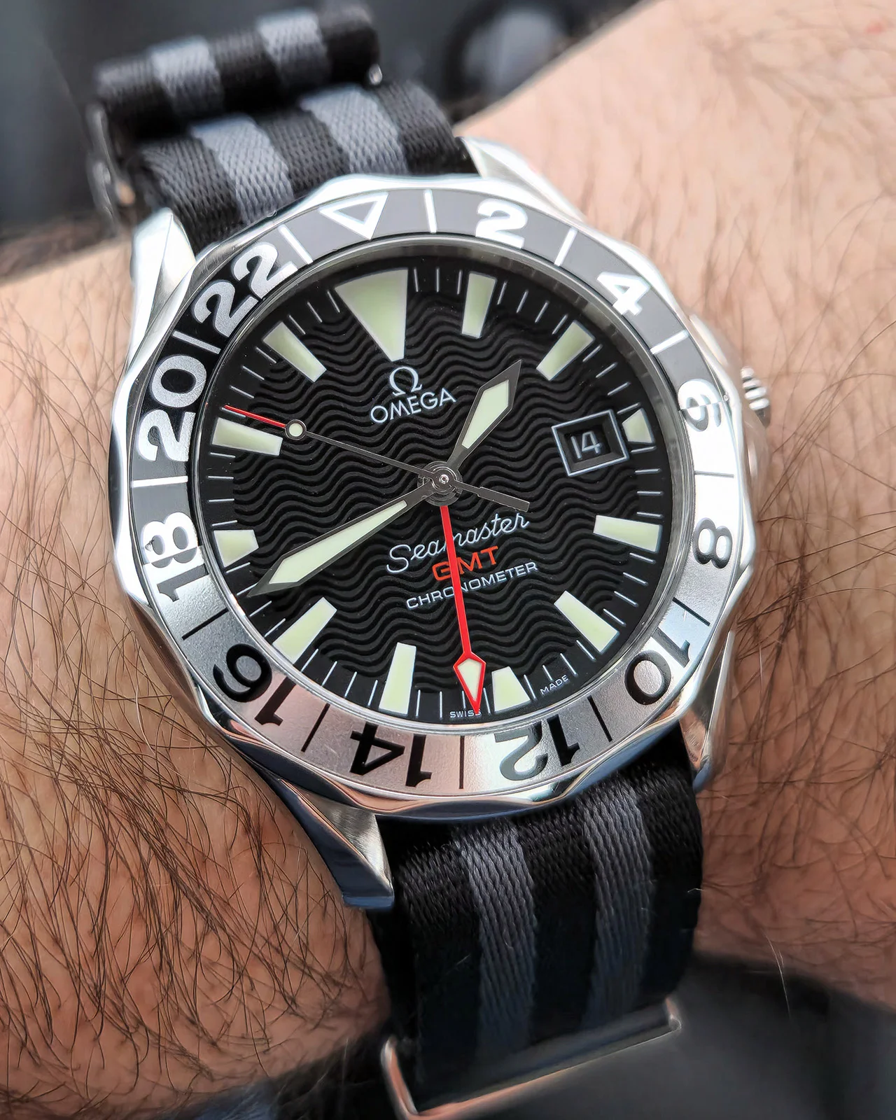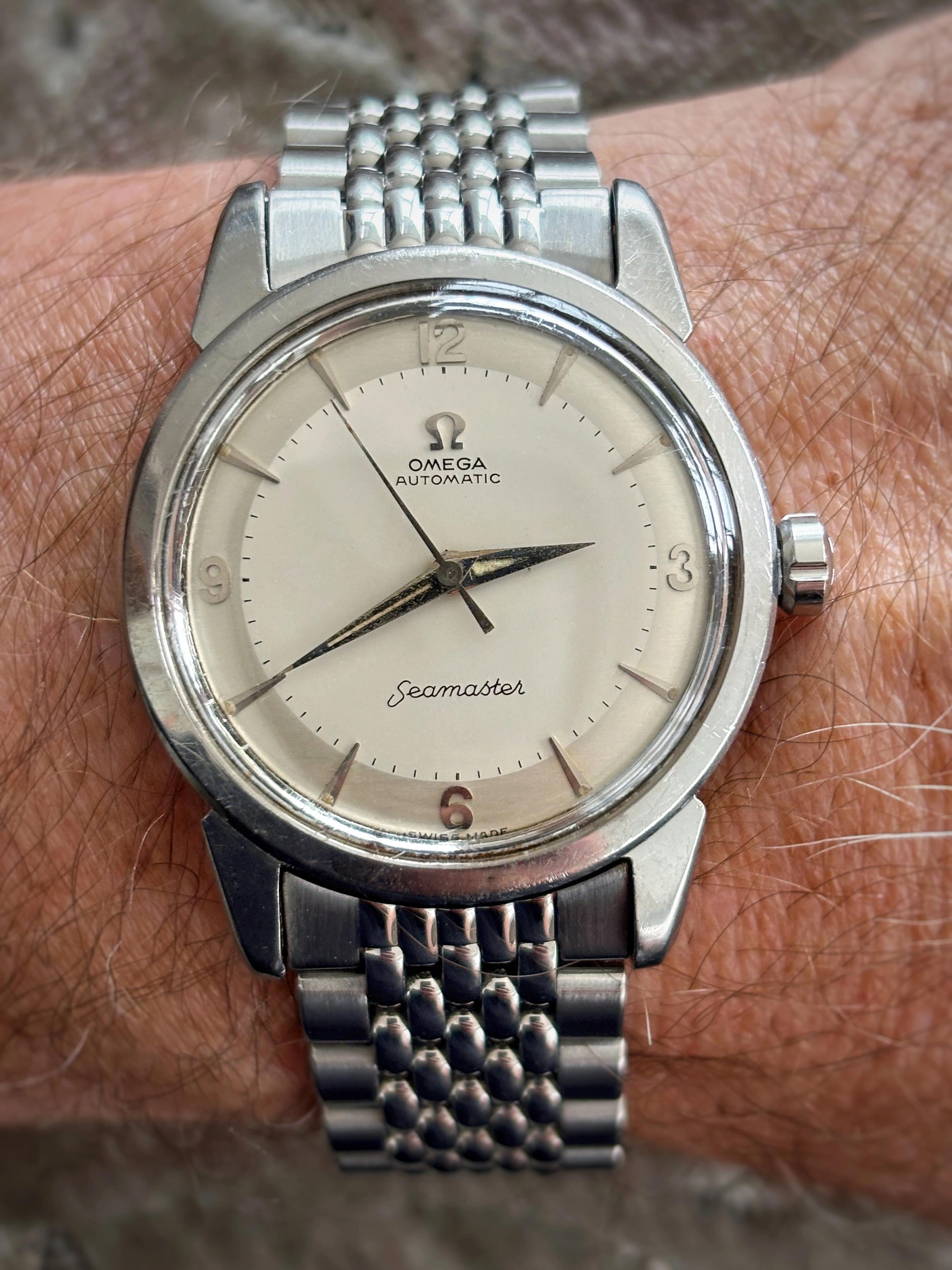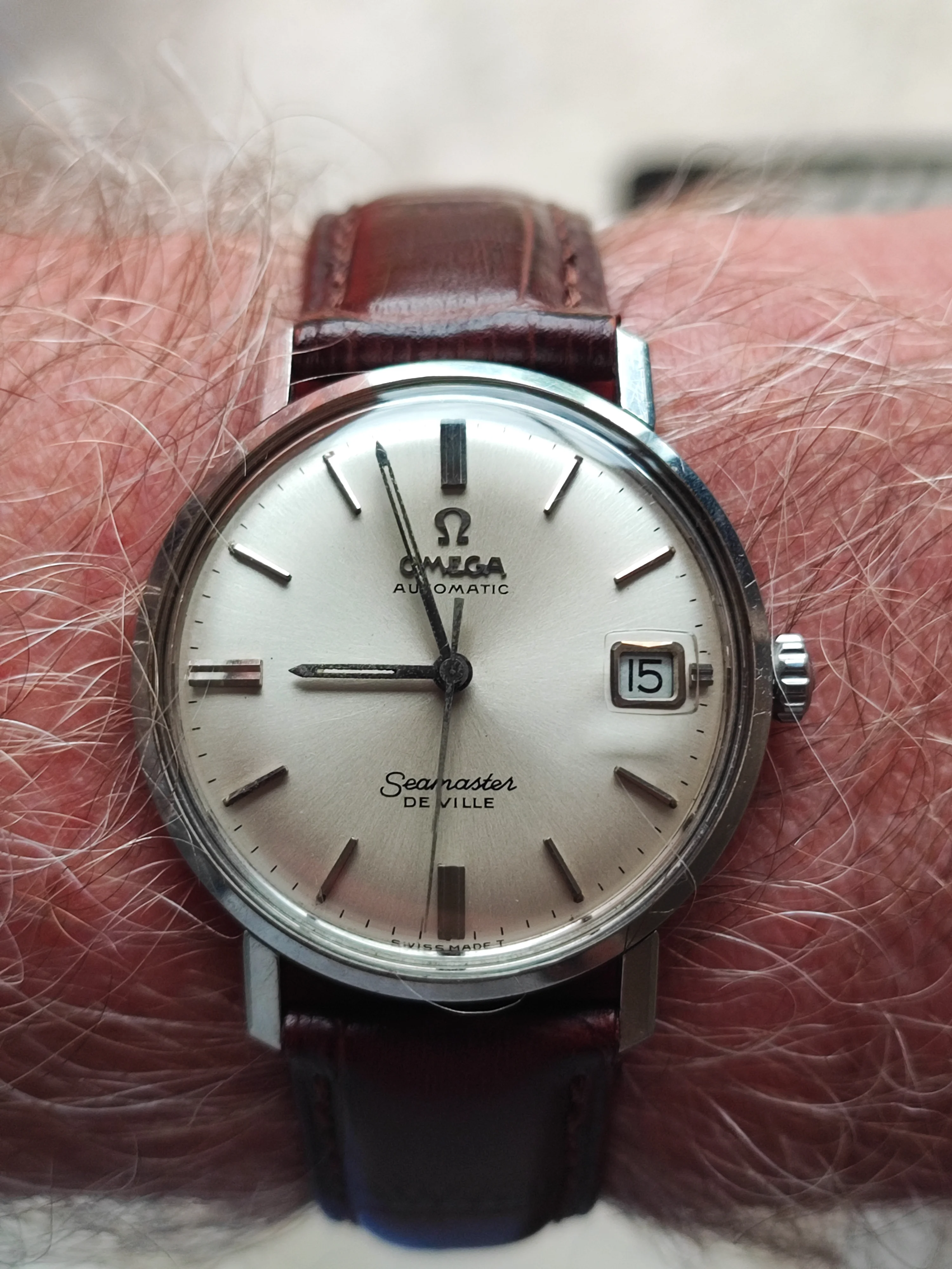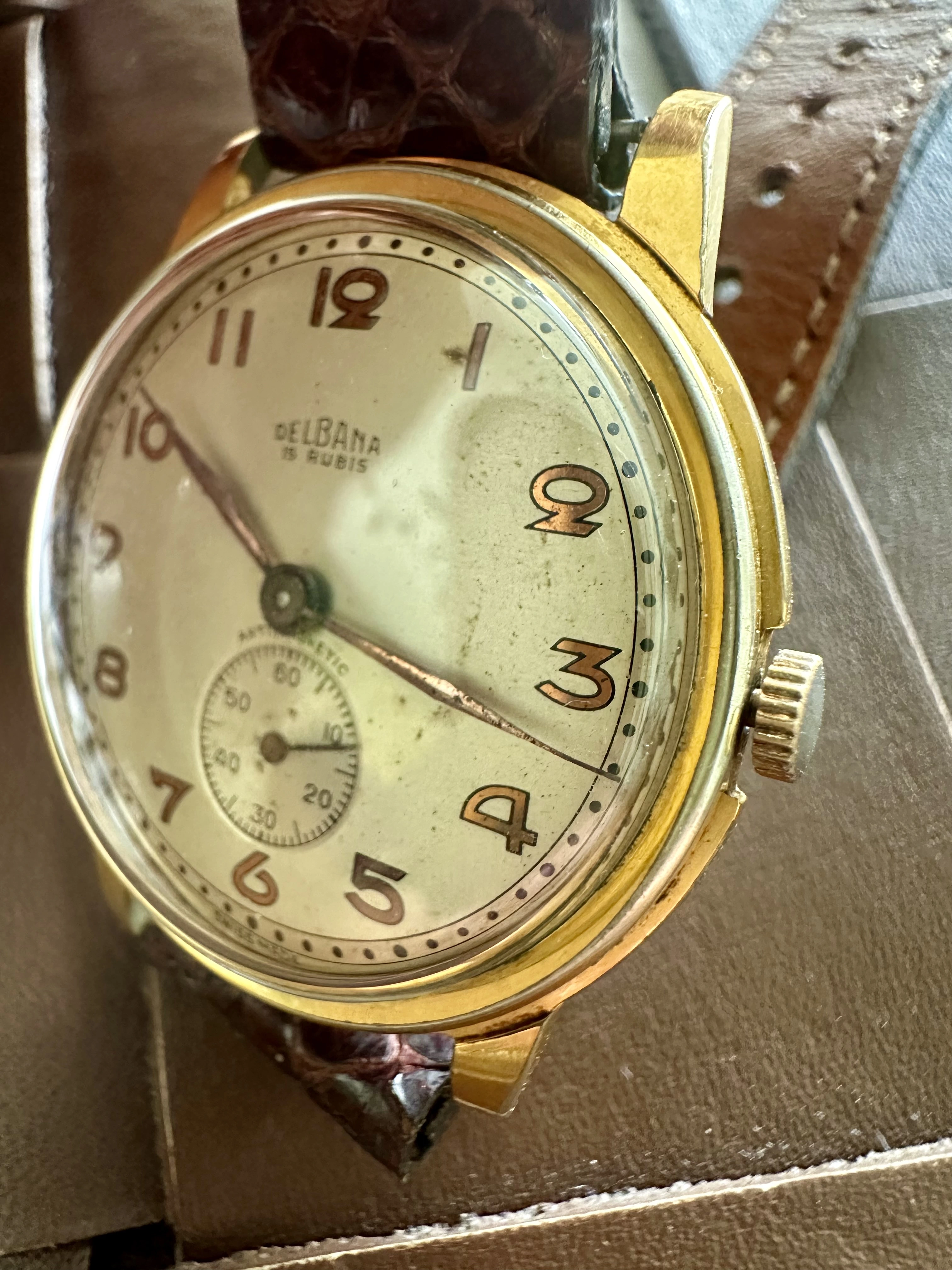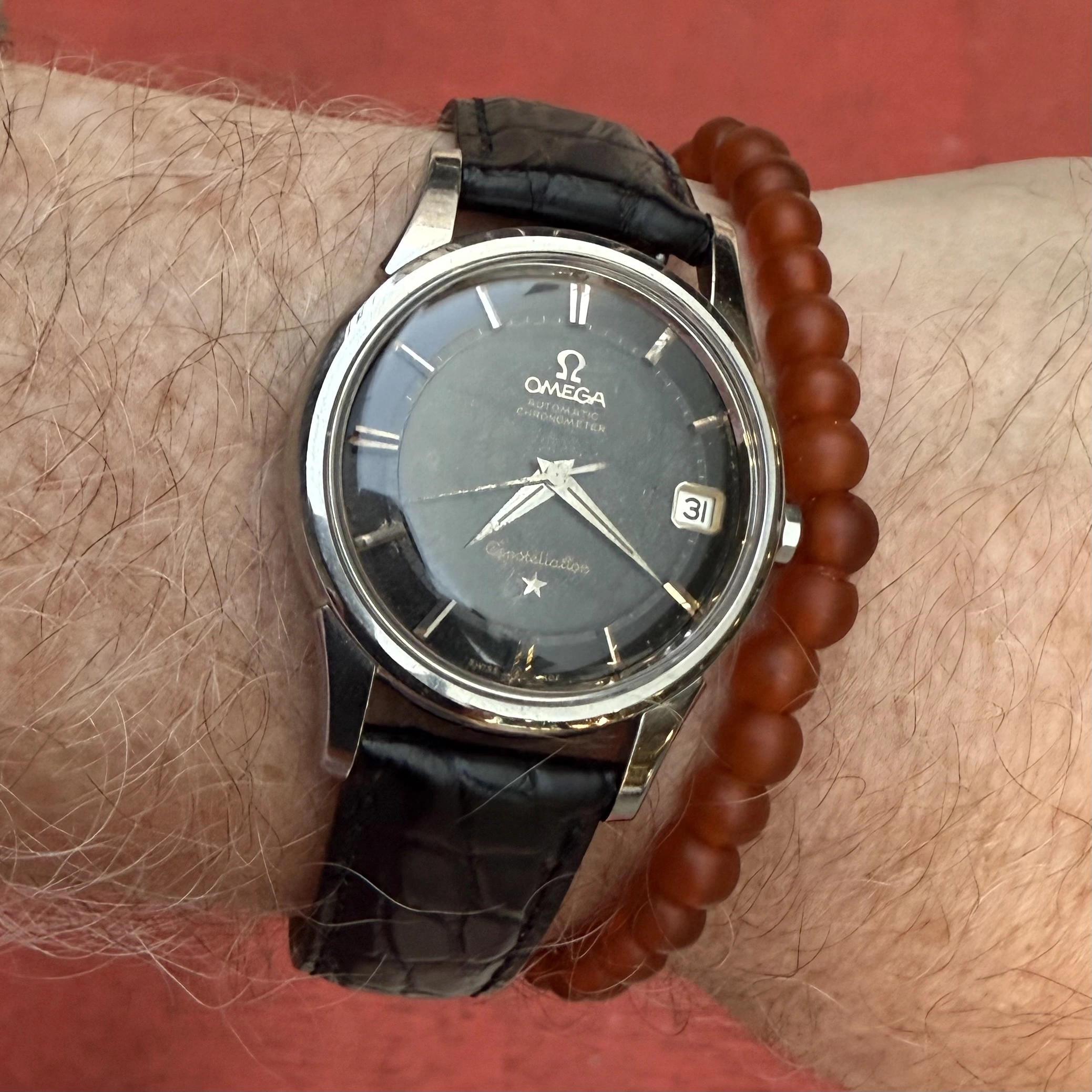 Who hasn’t had to endure the moans and groans of others who despise Daylight Saving Time? I have to! My wife grumbles every year, especially in April when we set our watches ahead. I have a solution! This Accutron 214 Railroader from 1967 has the dual hour hand that was popular with railroaders. Use the black hour hand for Daylight Saving time, and the red hand for Standard Time. In the fall, the reverse! We’re getting ready for our annual Supertrain event in Calgary. Early April, two days of overdosing on everything model railroad. We do an exhibit of about 100 plus railroad standard watches and clocks. So I’ll wear this one until show time.